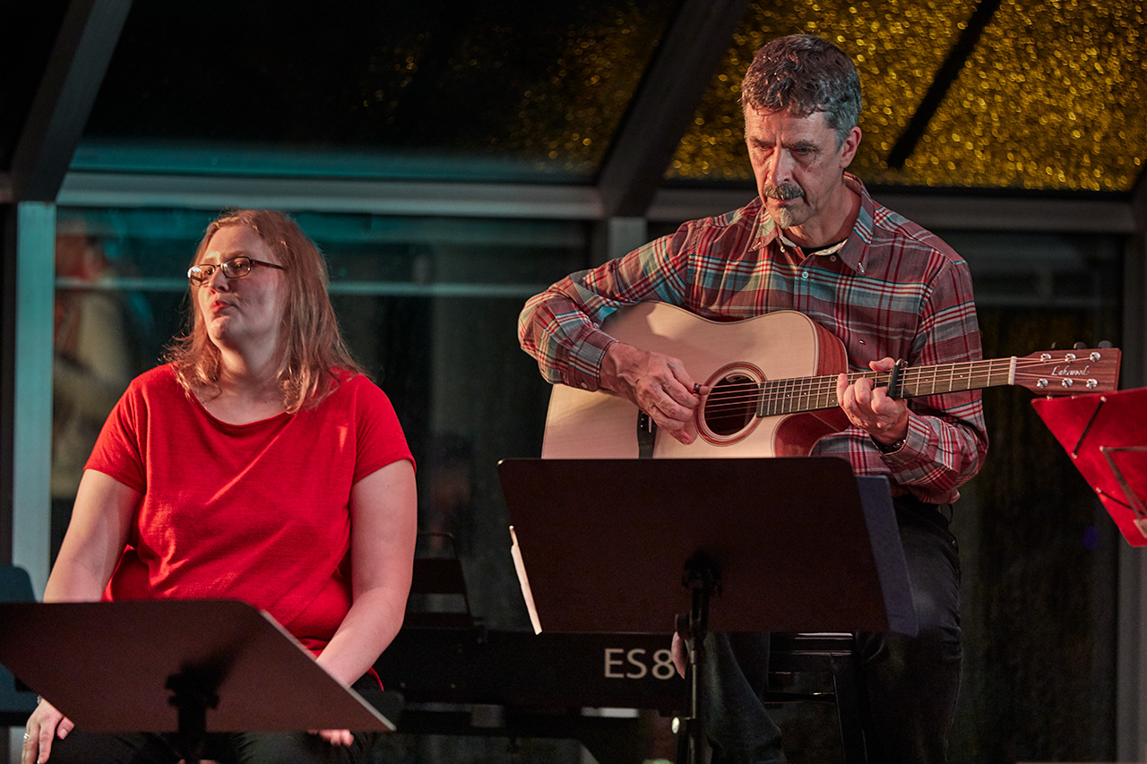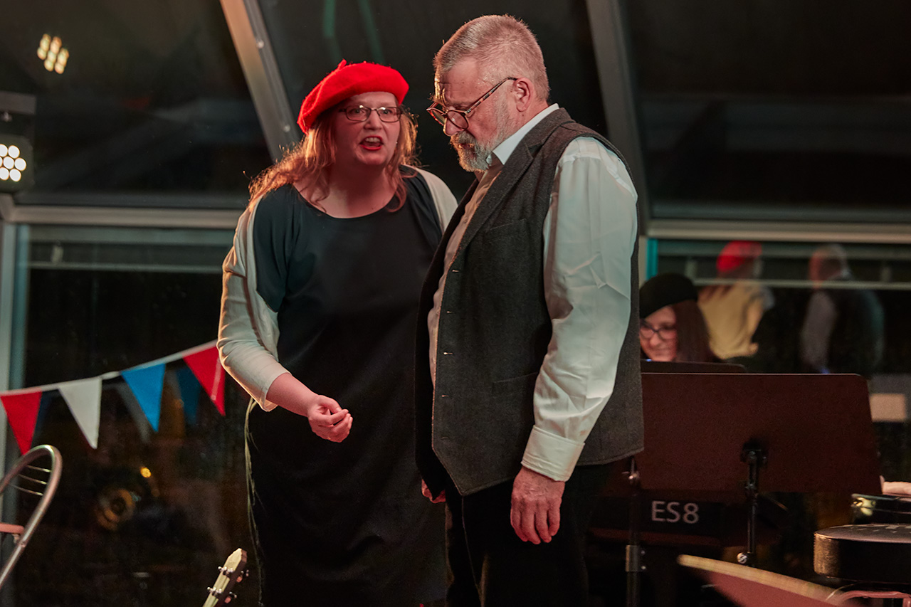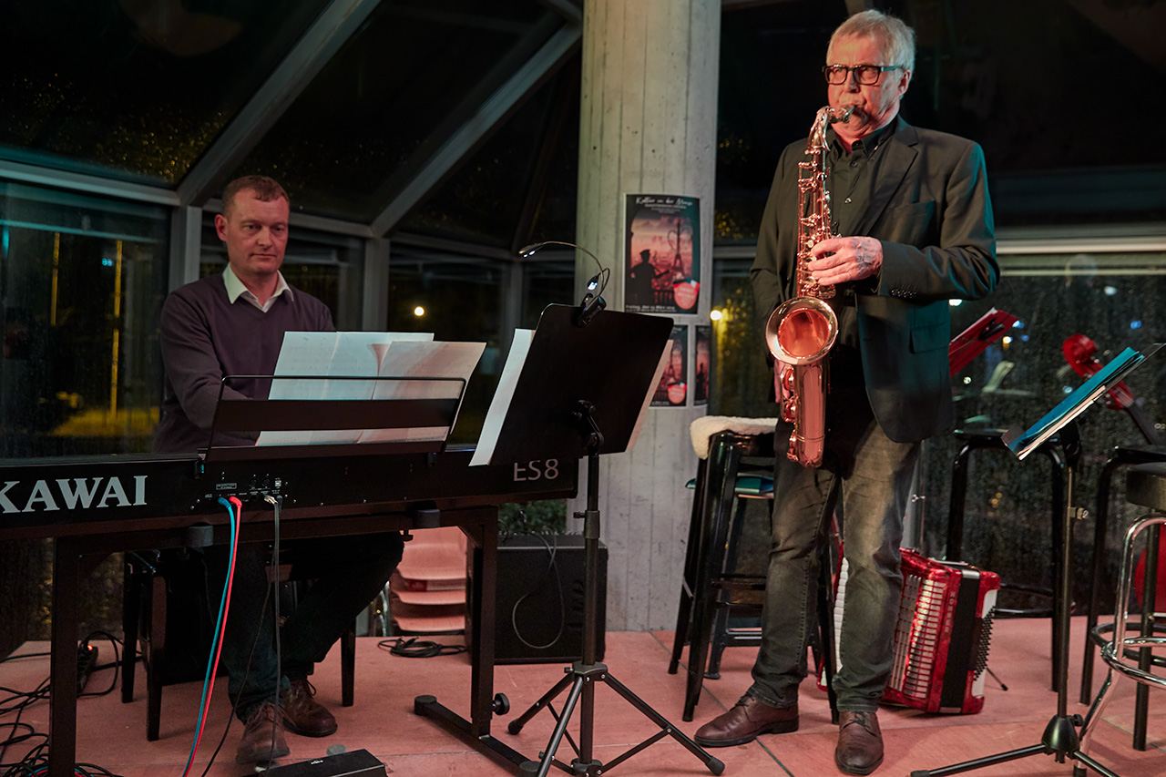 Wie immer eröffneten dann Ralf Kiesels virtuoses Klavier und Werner Schölzels sanft schmeichelndes Saxophon den zweiten Teil mit „La vie en rose“ und begleiteten dann Ricarda Rickert bei Charles Aznavours berühmtem „La bohème“.