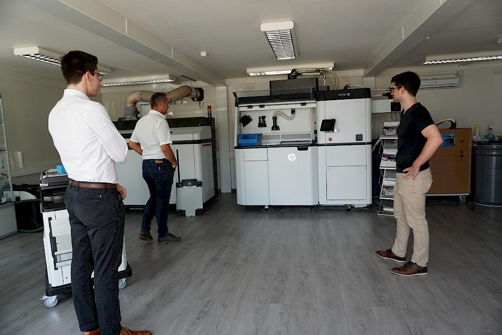 Nicht jeder Familie fiel der Einstieg in das coronabedingte digitale Lernen leicht. Durch die schlagartige Umsiedlung des Arbeits- und Schulalltags in die eigenen vier Wände ist der Bedarf an digitalen Endgeräten genauso plötzlich gestiegen. Herr Ertuerk, Vater eines Schülers der Klasse 5c, fiel dies auf und ergriff die Initiative, um bei dem plötzlichen Engpass zu helfen. Auch sein Arbeitgeber, die Firma AWG Fittings GmbH in Ballendorf, wollte dies unterstützen und stellte uns drei ausgemusterte Laptops zur Verfügung. Weiterhin bahnte Herr Ertuerk den Kontakt zur Langenauer Firma Solidpro an. Das Unternehmen Solidpro stellt dem Werkgymnasium kostenfrei fünf HP Workstations zur Verfügung. Am 9. Juli wurden die Geräte in der Langenauer Zentrale an Herrn Meyer-Hilberg übergeben. Zudem wurde ihm dort ein spannender Einblick in Prozesse von industriellen 3D-Druck-Techniken ermöglicht.