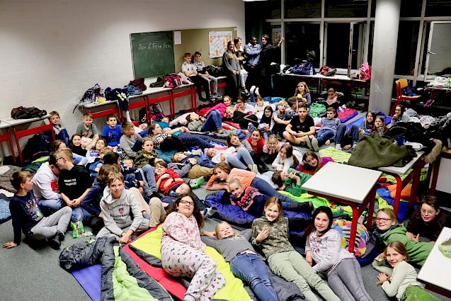 Nach einer aufregenden Übernachtung in der Schule begegneten den Betreuern verschlafene, aber glückliche Gesichter beim Frühstück am nächsten Morgen…