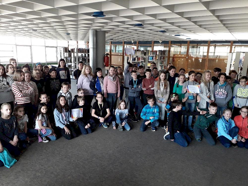 Am 21.2. ehrte Herr Kiesel die teilnehmenden Klassen in der Bibliothek mit Urkunden und gratulierte der Klasse 5a zum Sieg des diesjährigen Wettbewerbs. Frau Haußmann sorgte dafür, dass der erste Platz durch einen kleinen Preis für jedes Kind der siegreichen Klasse versüßt wurde. Für die anderen beiden Klassen stand fest: Das Mitmachen bereitete Spaß und nächstes Jahr gibt es eine Revanche!