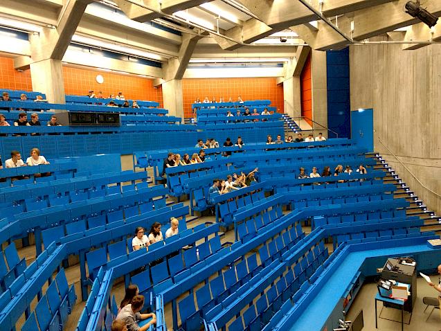 Unser Erlebnis startete mit der Anreise in die Großstadt und dem Zusammenfinden unseres Teams vor dem Wettbewerbsgelände. Dieser fand in einem großen Hörsaal der Uni statt. Die Aufgabe war es, in der Gruppe zwei schöne Mathematik- und eine spannende Physikaufgabe zu lösen. Der Fokus lag hierbei nicht auf dem Ergebnis, sondern auf der Art und Weise, wie man die Problemstellungen bewältigte. Wir arbeiteten als ein gutes Team zusammen und teilten die interessanten Aufgaben je nach persönlichen Spezialitäten auf. Wenn einer mal nicht weiterwusste, waren die anderen sofort zur Stelle, um einen Impuls zu liefern.