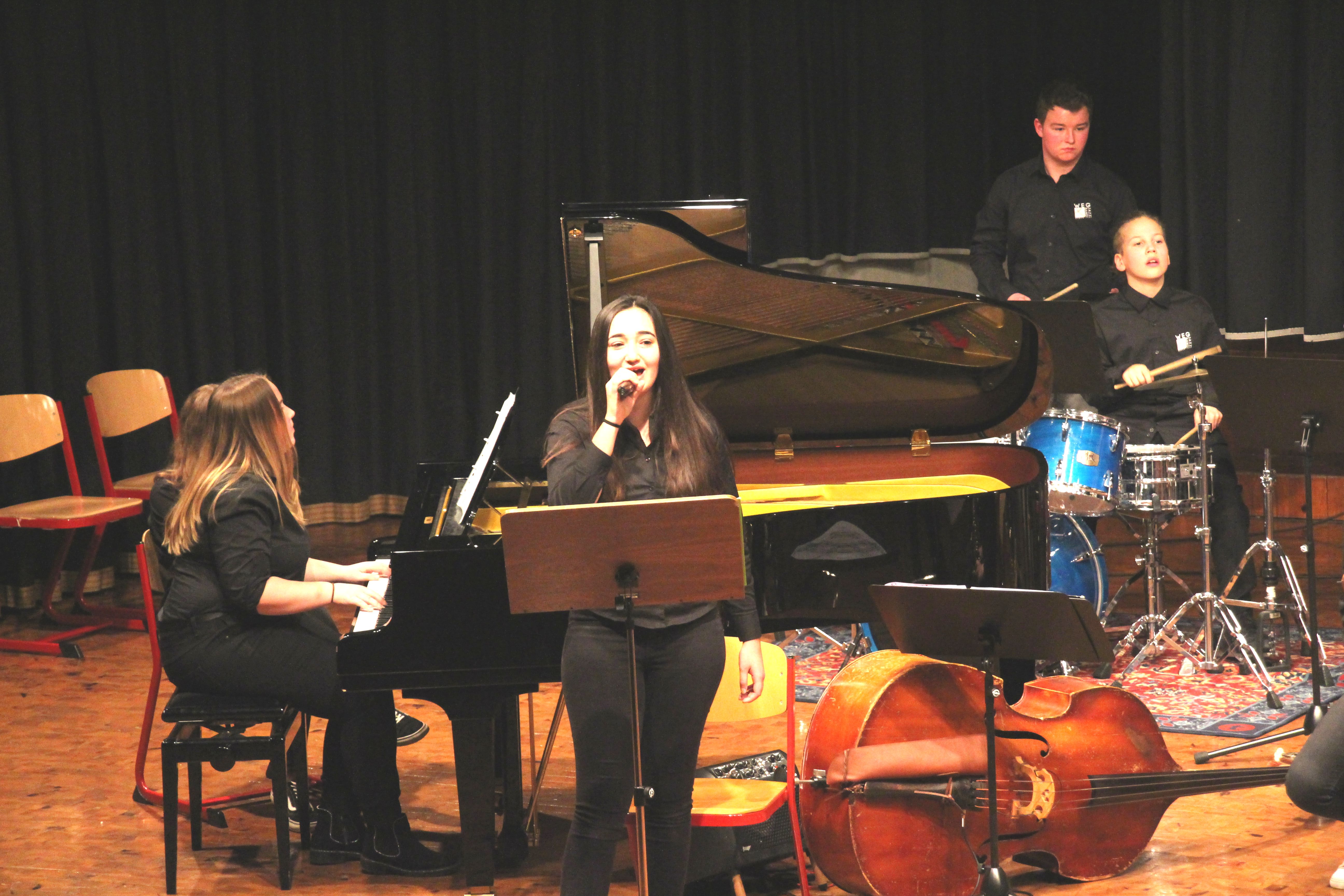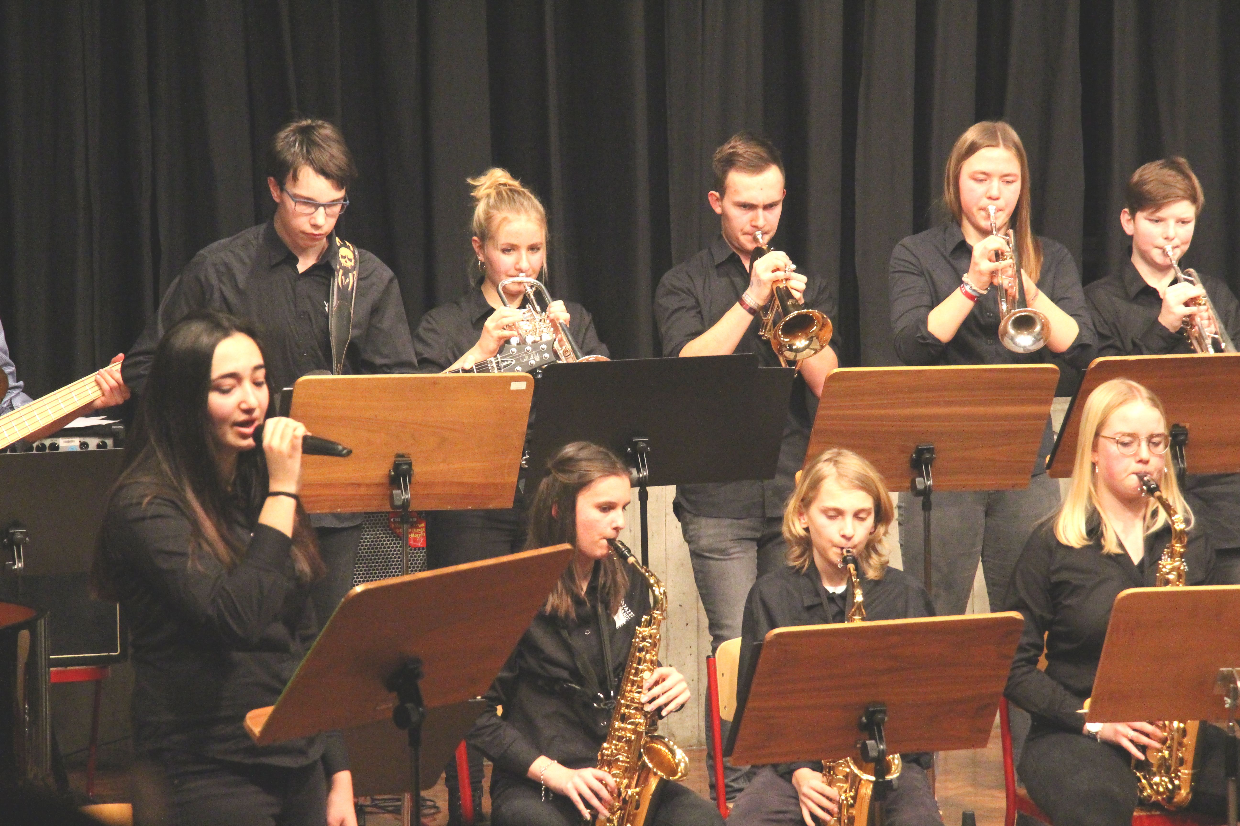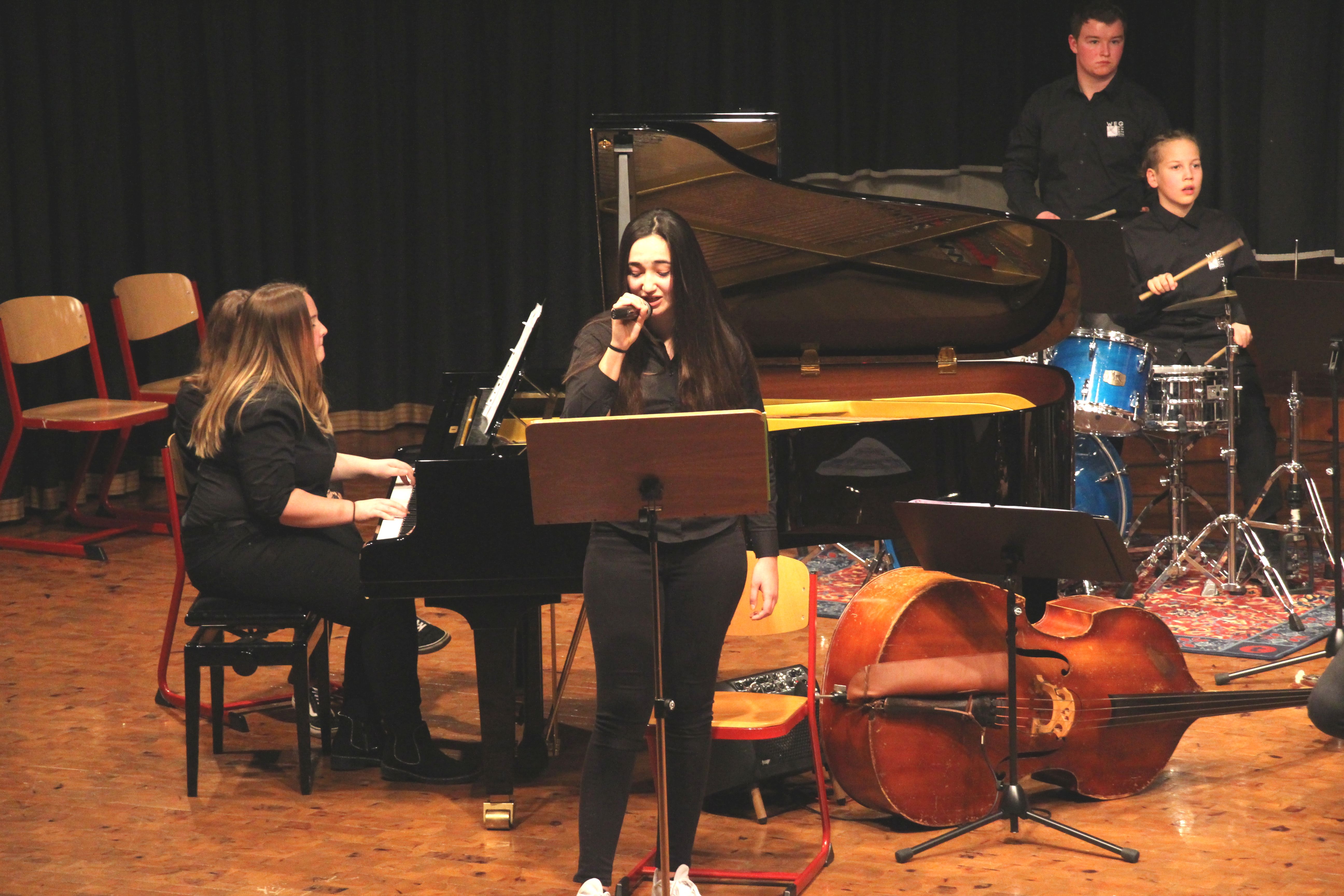 Als Sängerin der „WeG-Jazzband“ zeigte Yamur Tanriverdi mit ihrer voluminösen Stimme bei Titeln wie „Uptown Funk“ oder auch in „Crazy little thing called love“ ihr großes Talent Sehr präsent und begeisternd interpretierte sie die genannten Lieder sehr sicher, souverän und überzeugend.