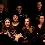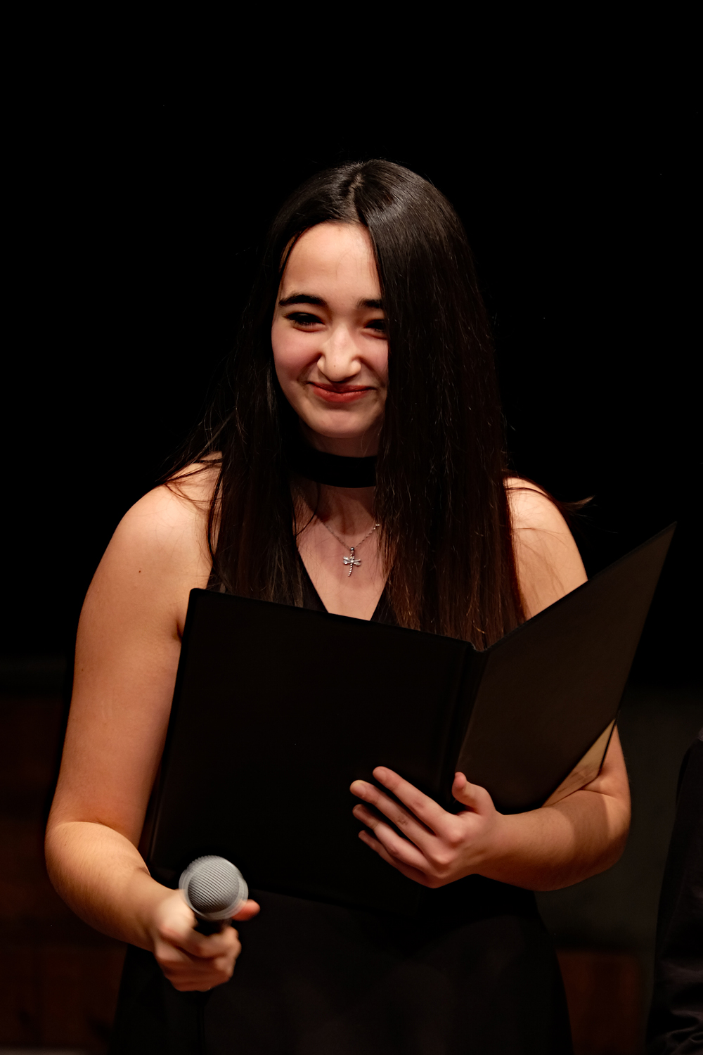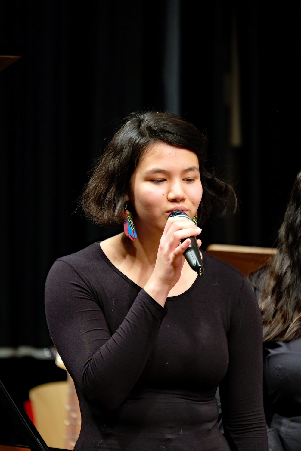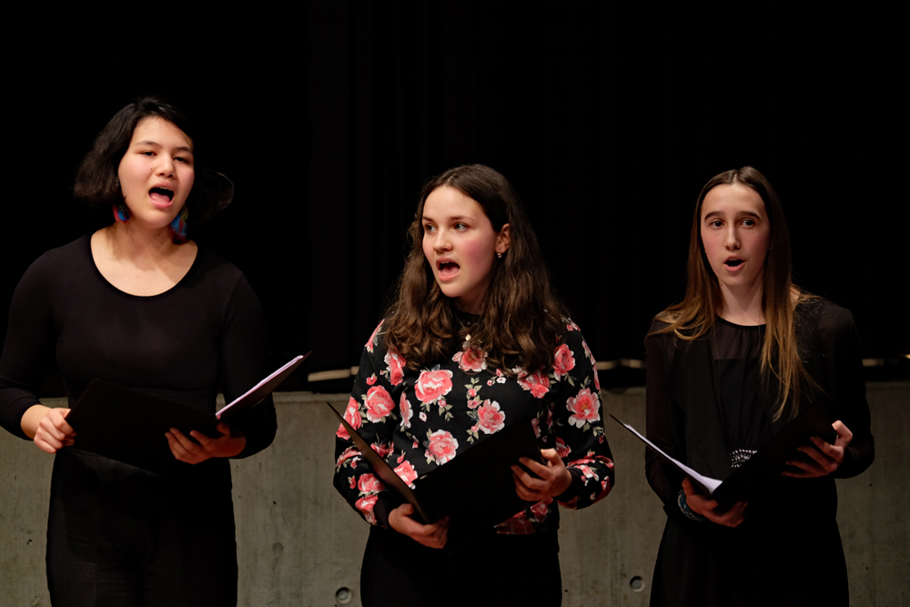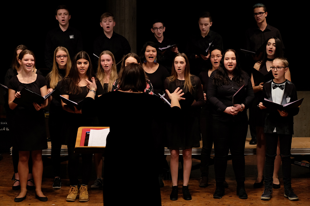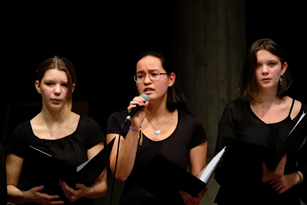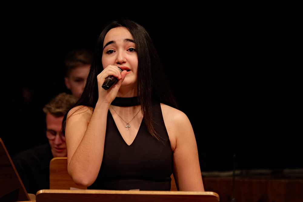 Den Abschluss des Abends gaben Unterstufenchor und Großer Chor gemeinsam. Sie entließen das Auditorium mit dem Titel „Winter rose“ besinnlich in eine weiße Sonntagnacht.
