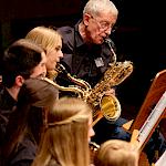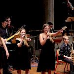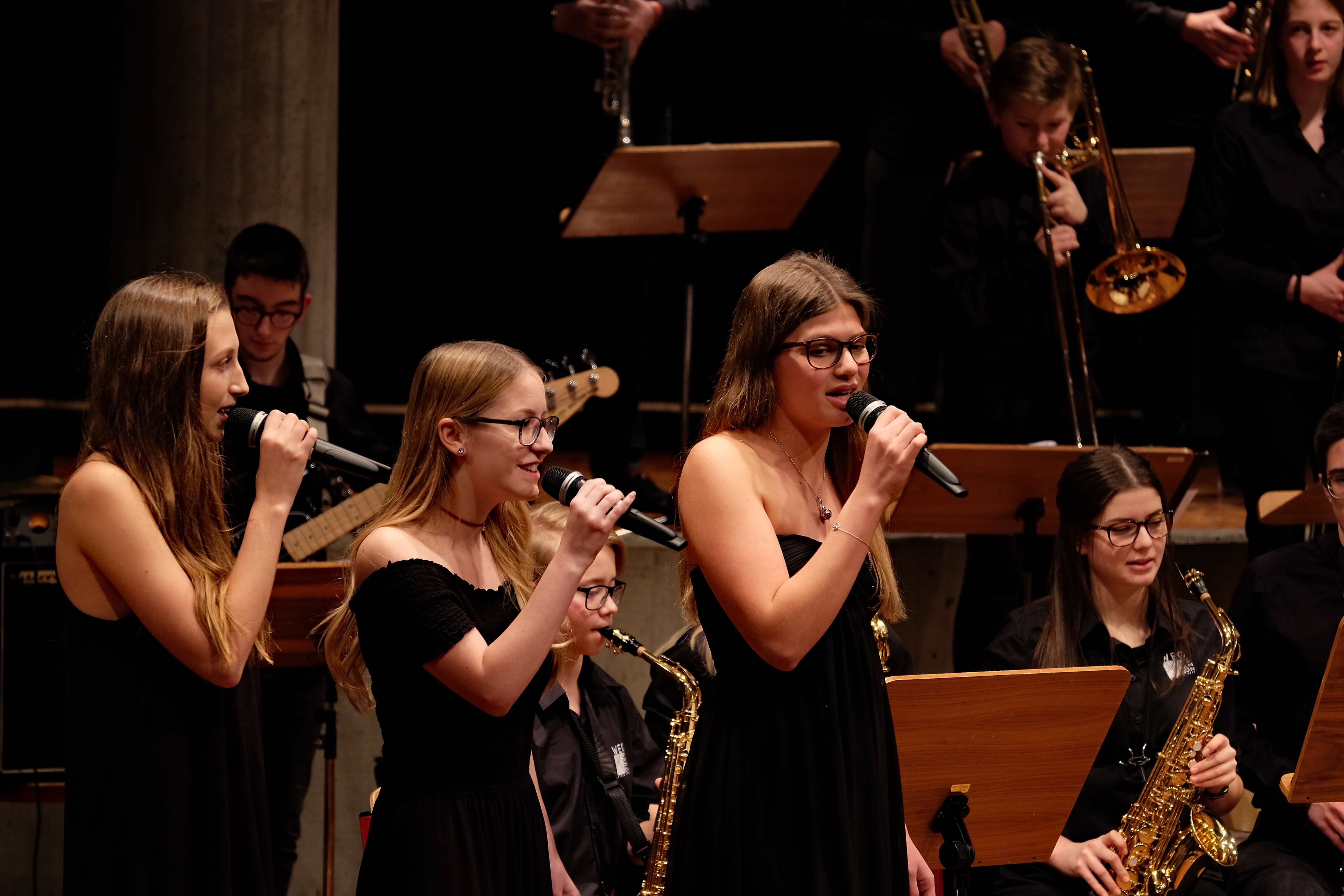 Im zweiten Teil des Konzerts ging es dann ebenso schwungvoll weiter mit den beiden bekannten amerikanischen Songs „California Dreaming“ und „It’s raining men“. Es folgte der Auftritt der Jazzband unter der Leitung von Joachim Kocsis. Dieser kündigte zunächst eine „Welturaufführung“ an: den vom Komponisten Günter Kral eigens für die WeG-Jazzband komponierten „Schwoba-Blues“, den „jeder kenna muaß“, wie aus den Reihen der Jazzband immer wieder ausgerufen wurde. Nach mitreißenden Stücken wie der Titelmusik aus „Mission Impossible“ und „Welcome to the jungle“ von Guns’n’Roses folgte die Swingnummer „Bei mir bist du schön“, bei der drei Sängerinnen und die Jazzband gemeinsam für große Begeisterung im Publikum sorgten.