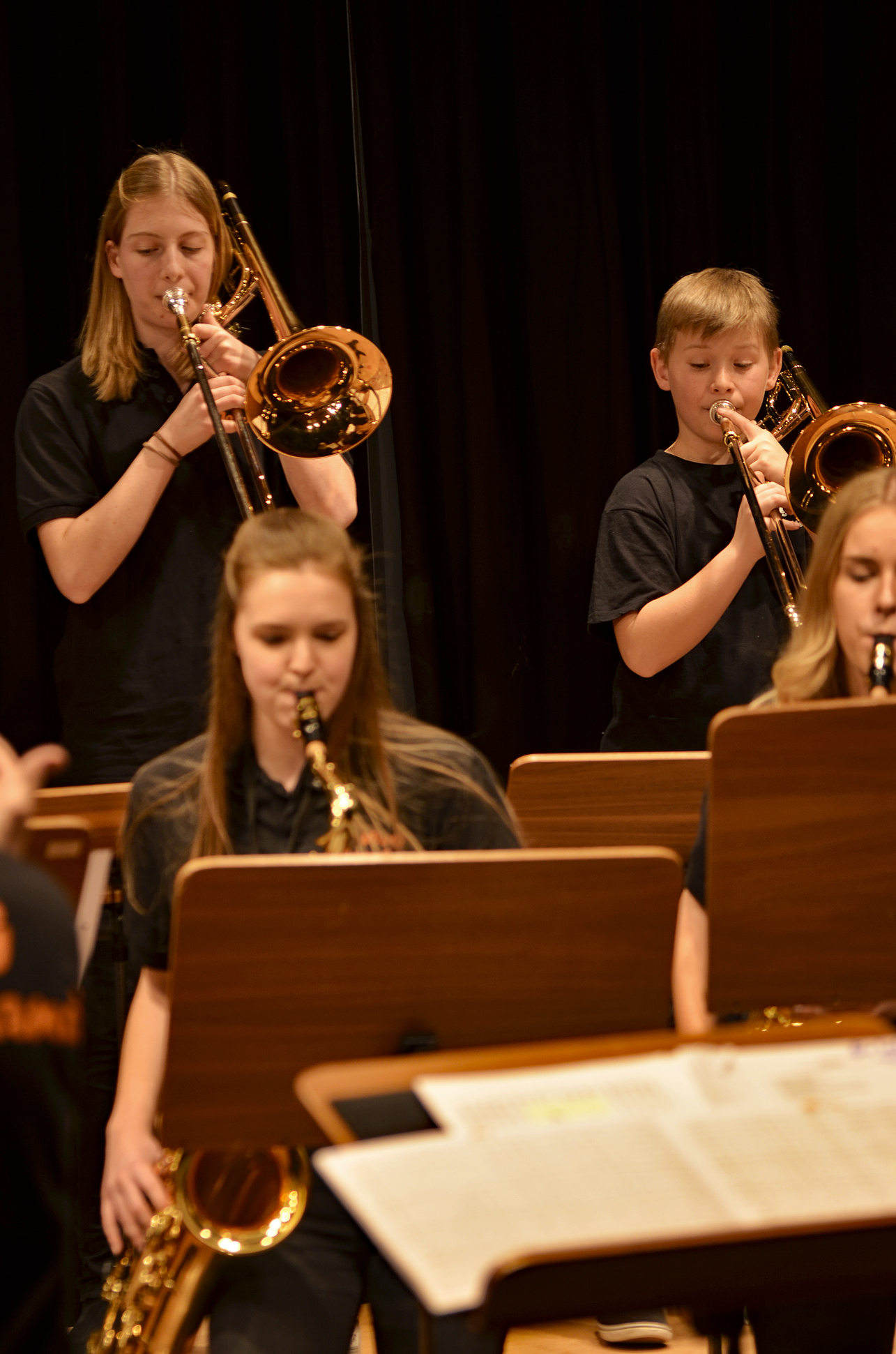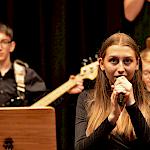 Ohne Zugabe wollte das Publikum die Musikerinnen und Musiker nicht nach Hause gehen lassen und wurde mit einem weiteren Highlight des Abends belohnt: „Skyfall“, dem James – Bond - Titelsong, bei dem alle Beteiligten gemeinsam auf die Bühne zurückkamen. Alle drei Ensembles musizierten mit sichtlichem Spaß und großem Können, das Publikum war begeistert.