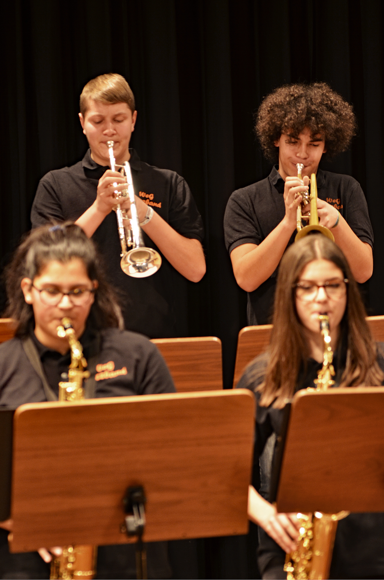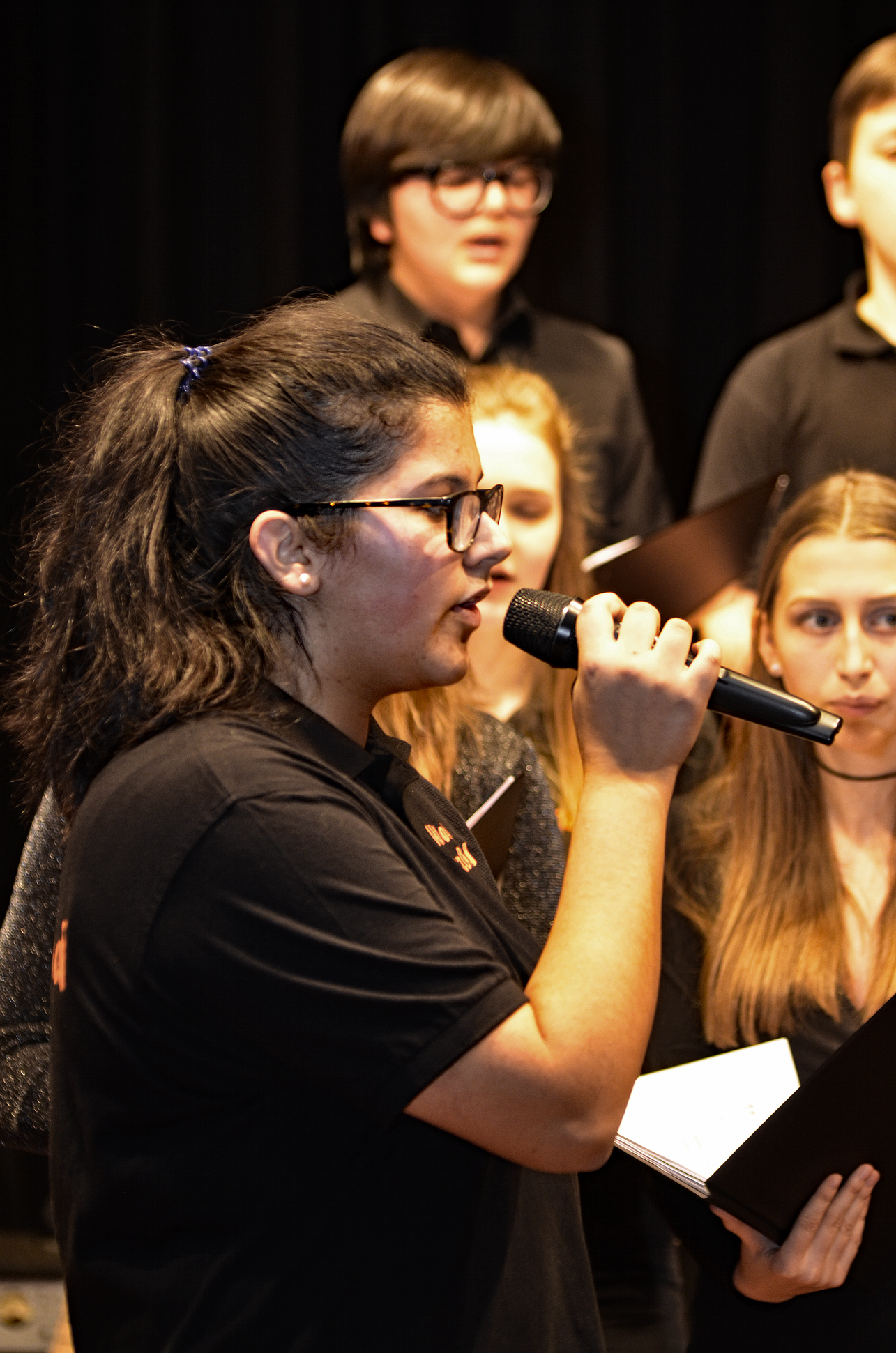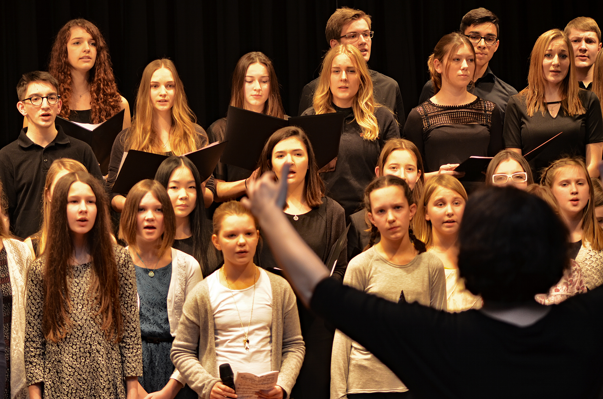 Der Unterstufenchor unter Leitung von Helga Weber eröffnete das Konzert mit drei Liedern, gefolgt von der Jazzband des WeG unter der Leitung von Joachim Kocsis, die bekannte Jazzstücke wie „Pennsylvania 6-5000“ mit Telefonklingel und Kazoo präsentierte. Noch internationaler wurde es dann mit dem Auftritt des großen Chors, dirigiert von Julia Strasser, mit Stücken auf Französisch, Englisch und „Baba Yetu“, einem Vaterunser auf Suaheli. Am Schluss des Programms erwartete das Publikum in der Kulturmulde des WeG noch eine echte Premiere: Die Jazzband spielte zum ersten Mal überhaupt die Titelmelodie „Mission Impossible“ aus den gleichnamigen Filmen.
