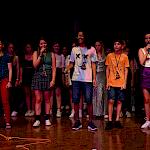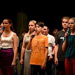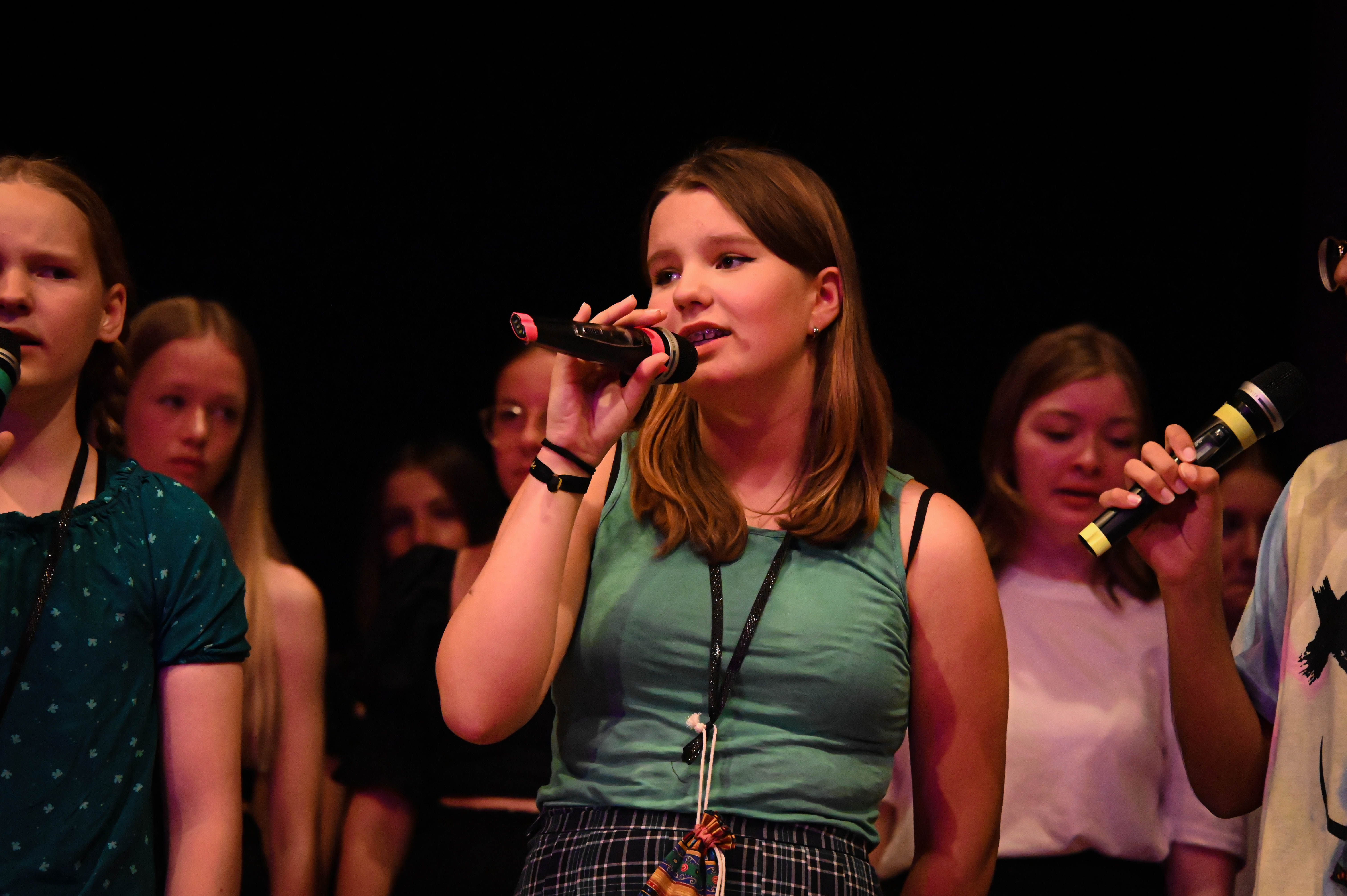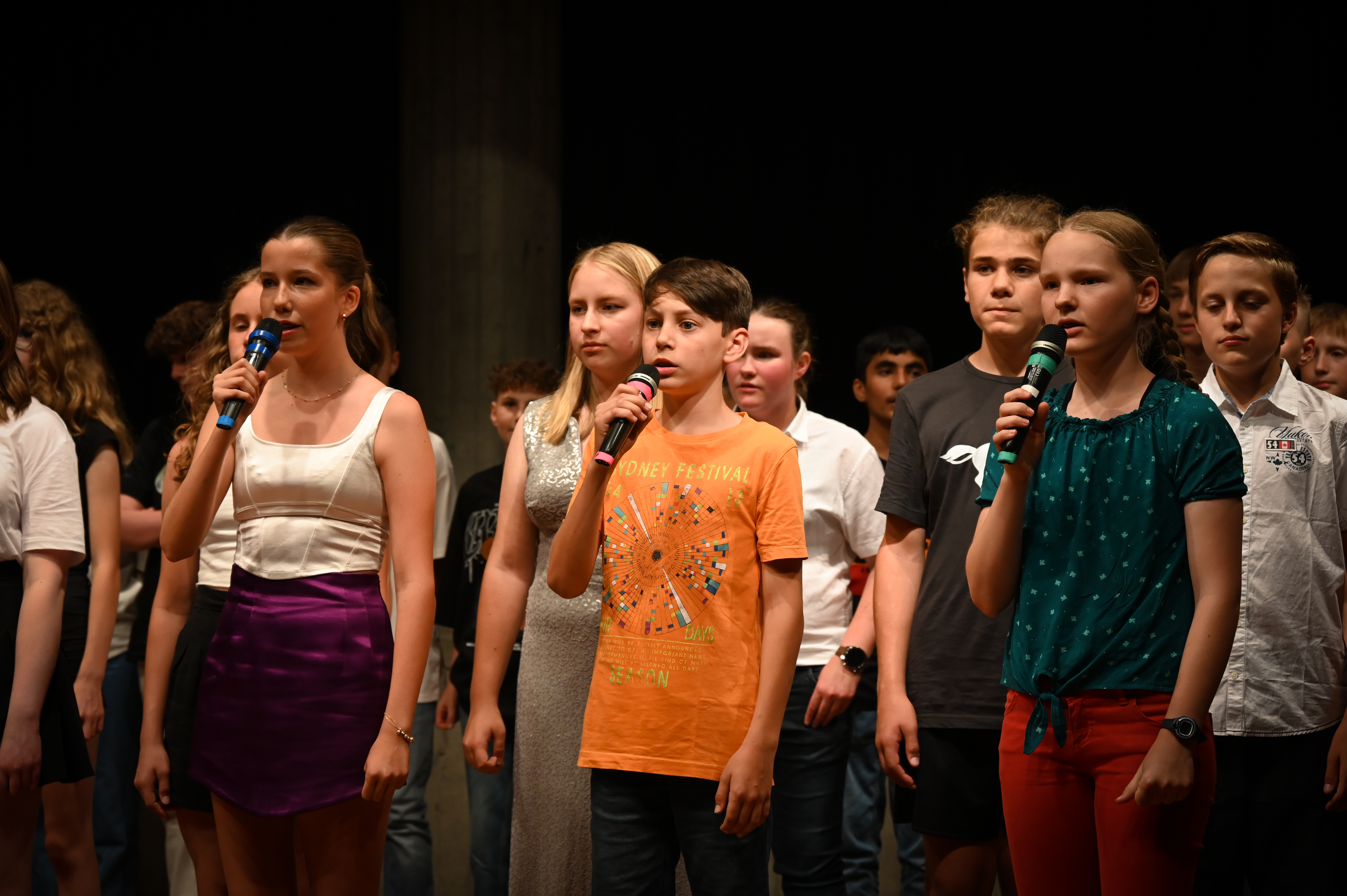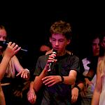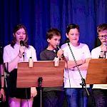 Auch wenn das Pool-Projekt wieder einmal geprägt war von einer intensiven Probenzeit, konnte man sich vom pädagogischen Wert leicht überzeugen. Man merkte die Anspannung bei den Kindern, aber auch den Stolz, mutig vor einem Publikum aufgetreten zu sein und die Freude darüber, etwas auf die Beine gestellt zu haben, das mit Applaus statt Noten honoriert wurde. Die Zusammenarbeit der Kinder aus den drei Klassen wurde gefördert und zum Beispiel bei den reibungslosen Umbauphasen ersichtlich. Dass auch die Personen außerhalb des Rampenlichtes eine riesige Bedeutung haben und Wertschätzung verdienen, spiegelte sich im Applaus der Kinder auf der Bühne für die Technik und für ihre Musiklehrerinnen wider. Deren Engagement für das Projekt, das sich wie immer nicht nur auf die dafür vorgesehenen Unterrichtsstunden erstreckte, wurde auch von Herrn Kiesel mit sommerlichen Blumengrüßen gewürdigt.