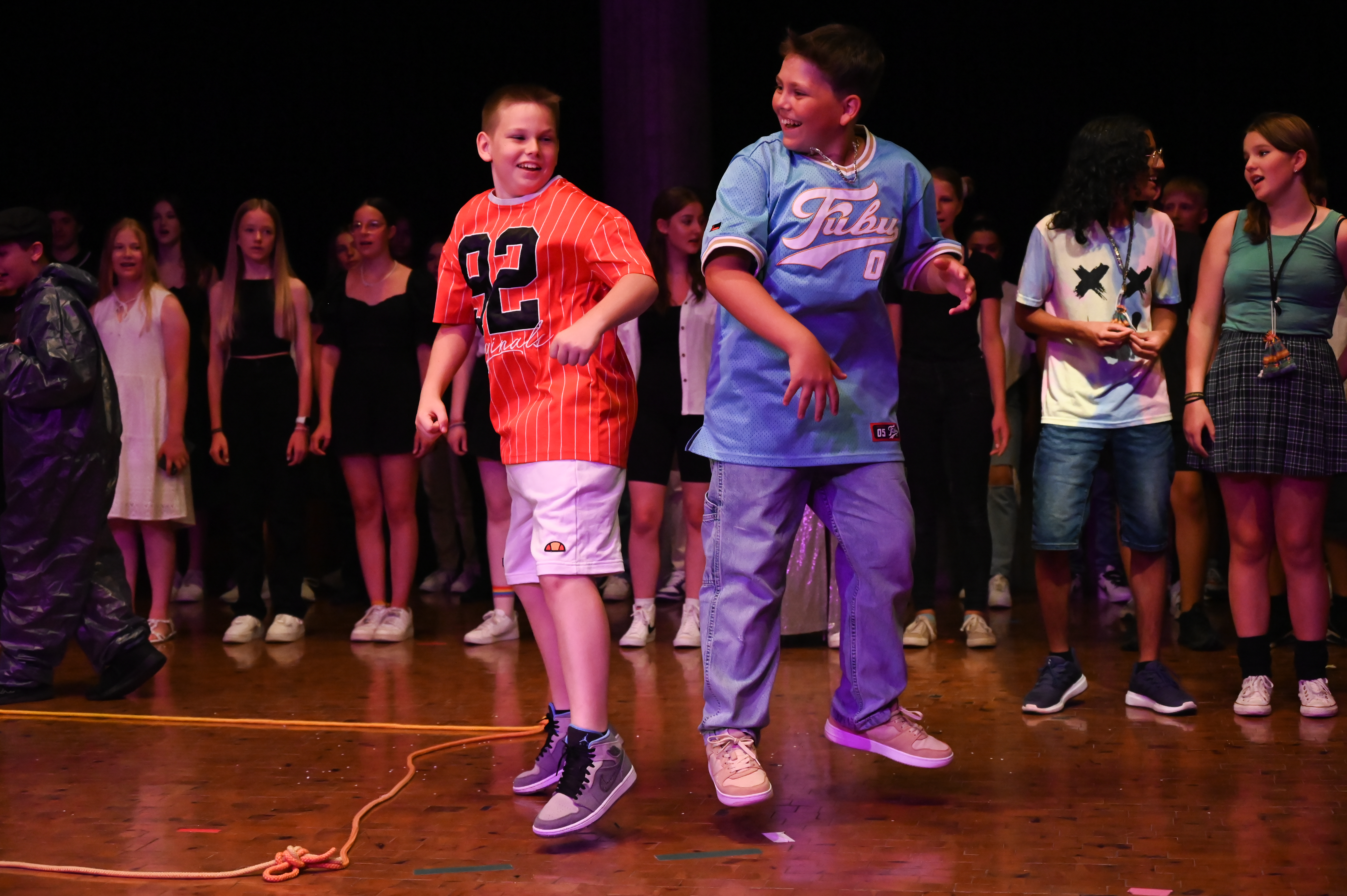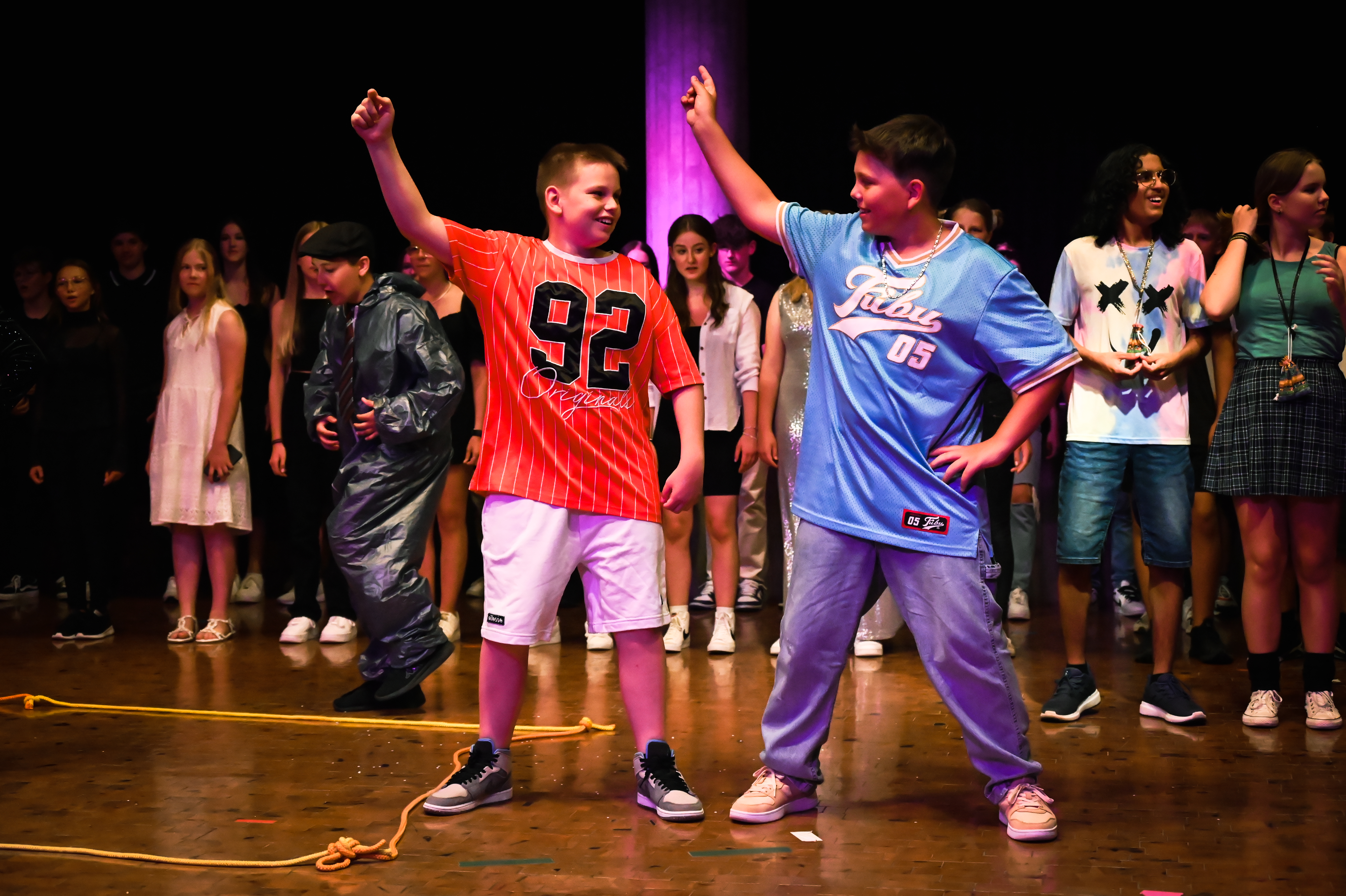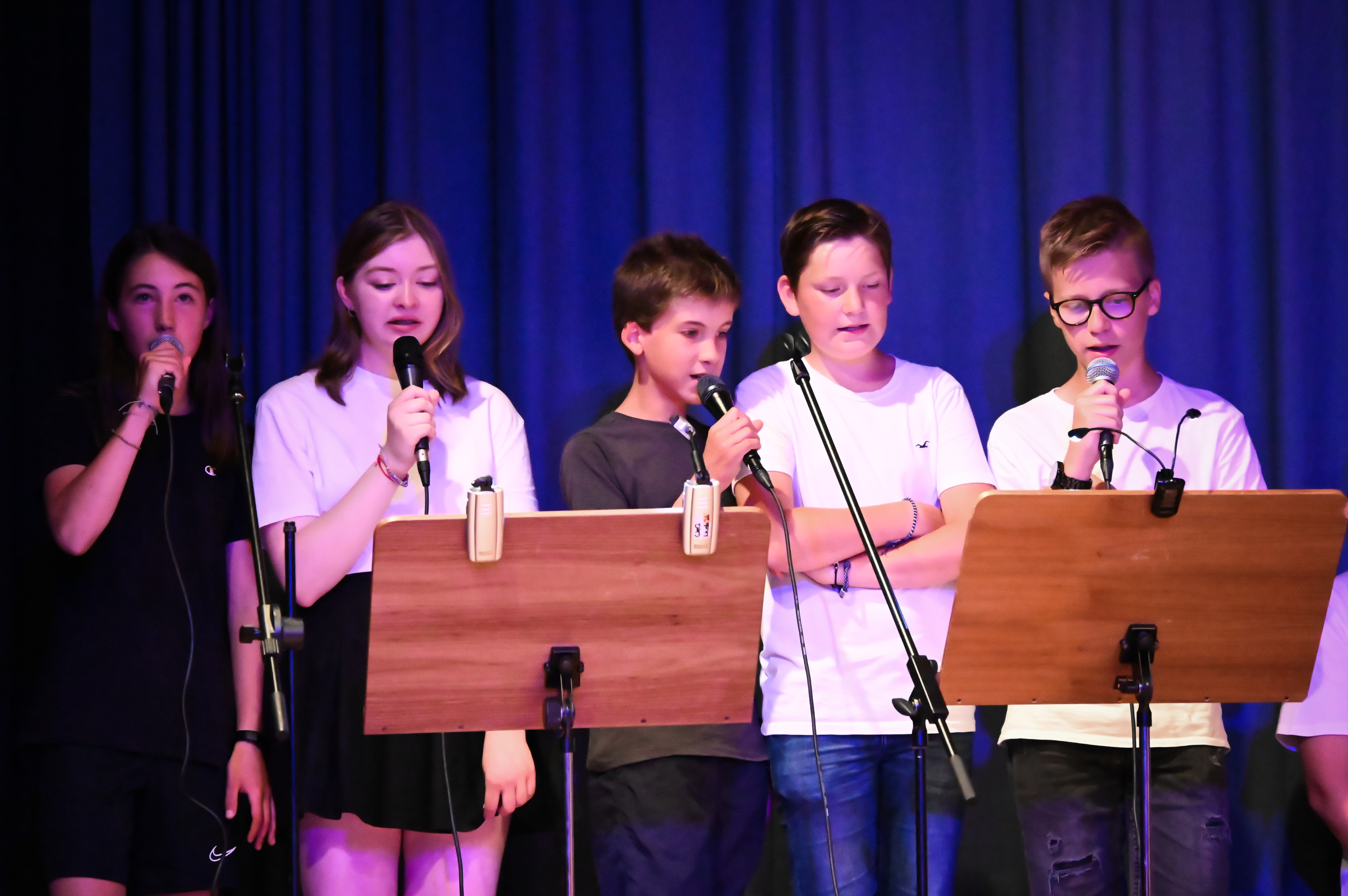 Am 14.7. war es endlich wieder so weit: die 7. Klassen durften ihre Ergebnispräsentation des Pool-Musical-Projektes, das dieses Jahr von den Musiklehrerinnen Frau Greulich, Frau Strasser und Frau Weber geleitet wurde, einem größeren Publikum vorstellen. Nach zwölf Wochen mit vielen Probenstunden, Rollenwünschen und sicher auch -verwünschungen, wenn der Text sich nicht so einfach auswendig lernen ließ, hieß es an diesem Abend: Kein Wunsch ist schnuppe.