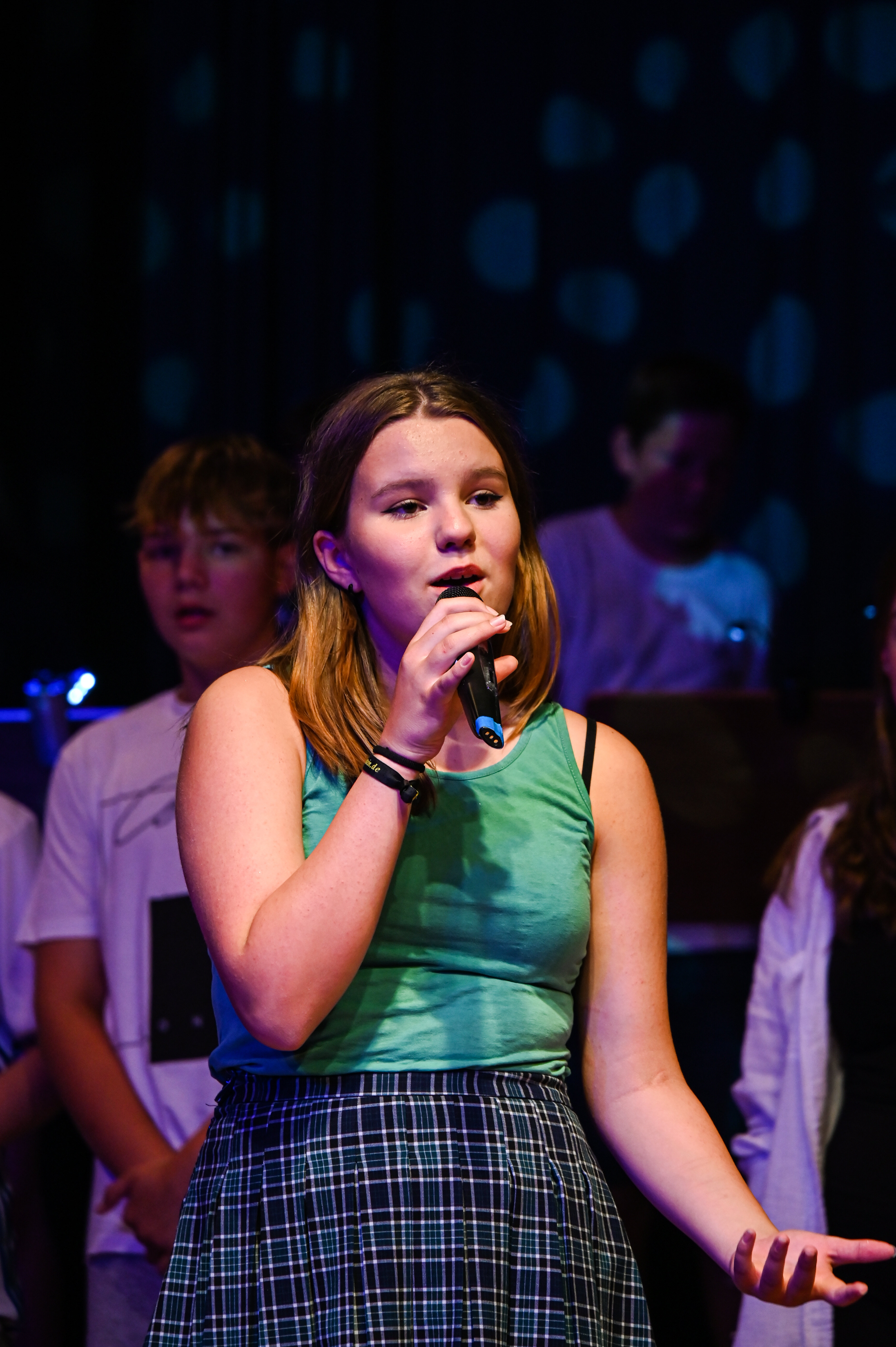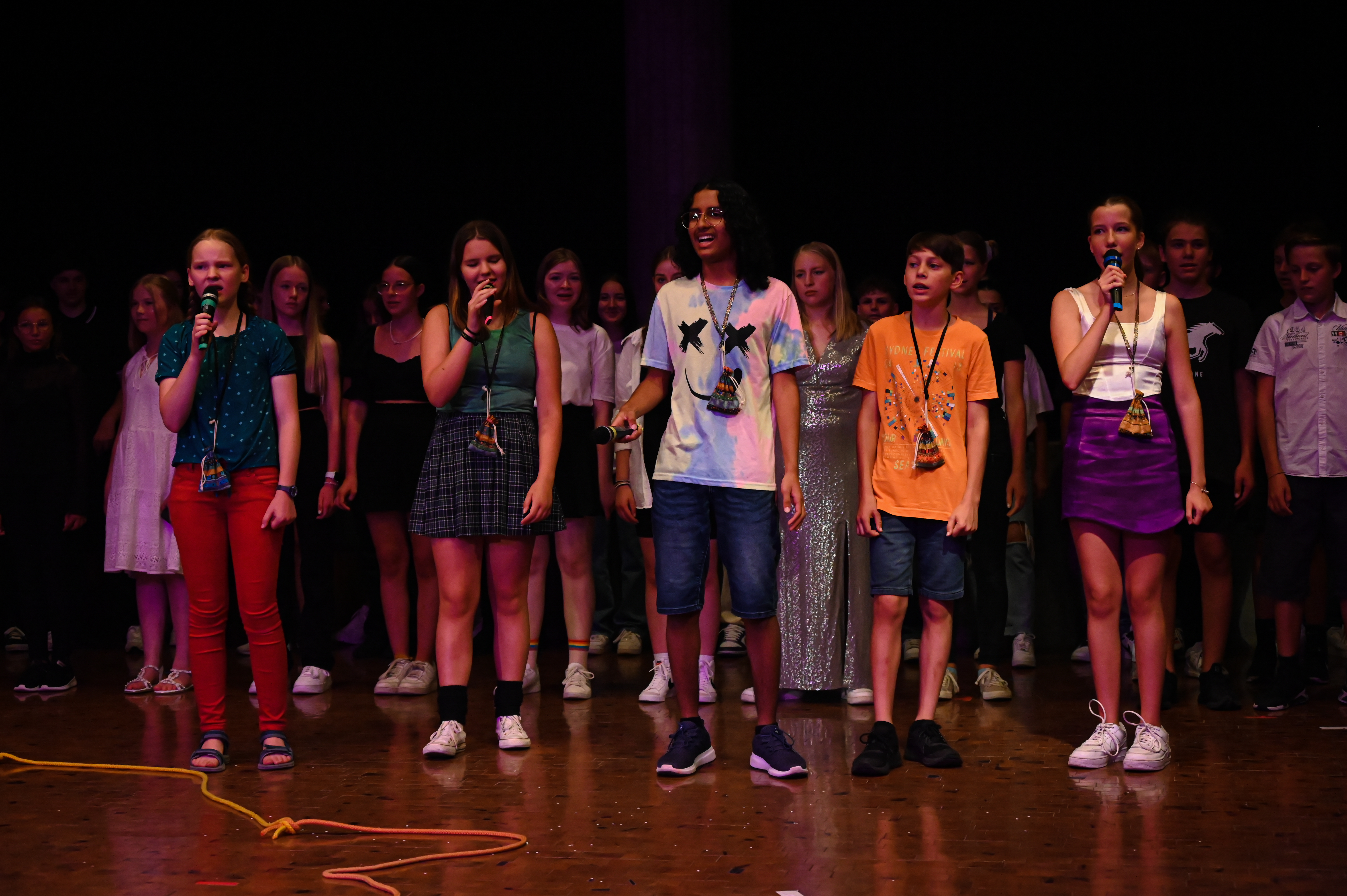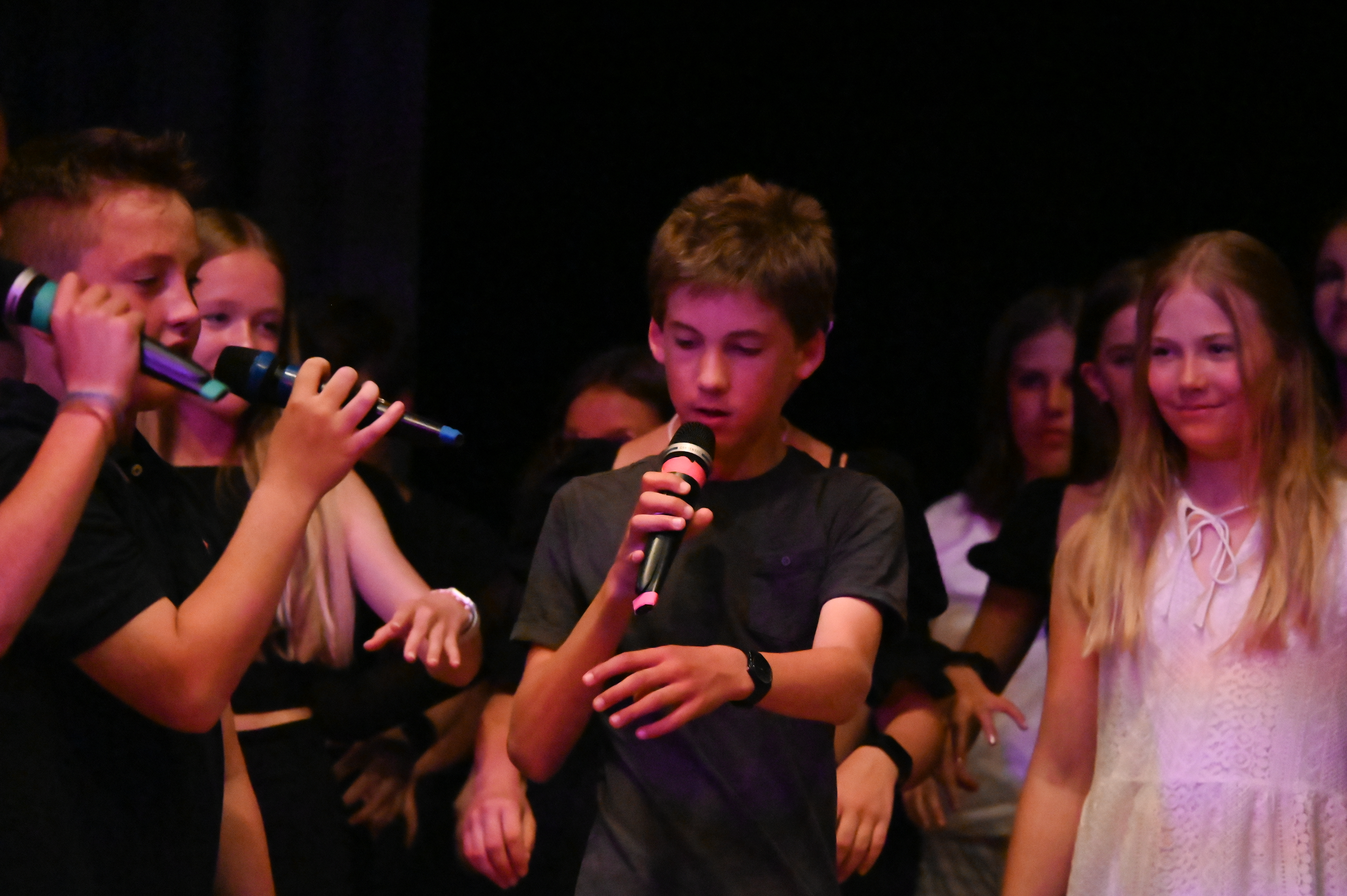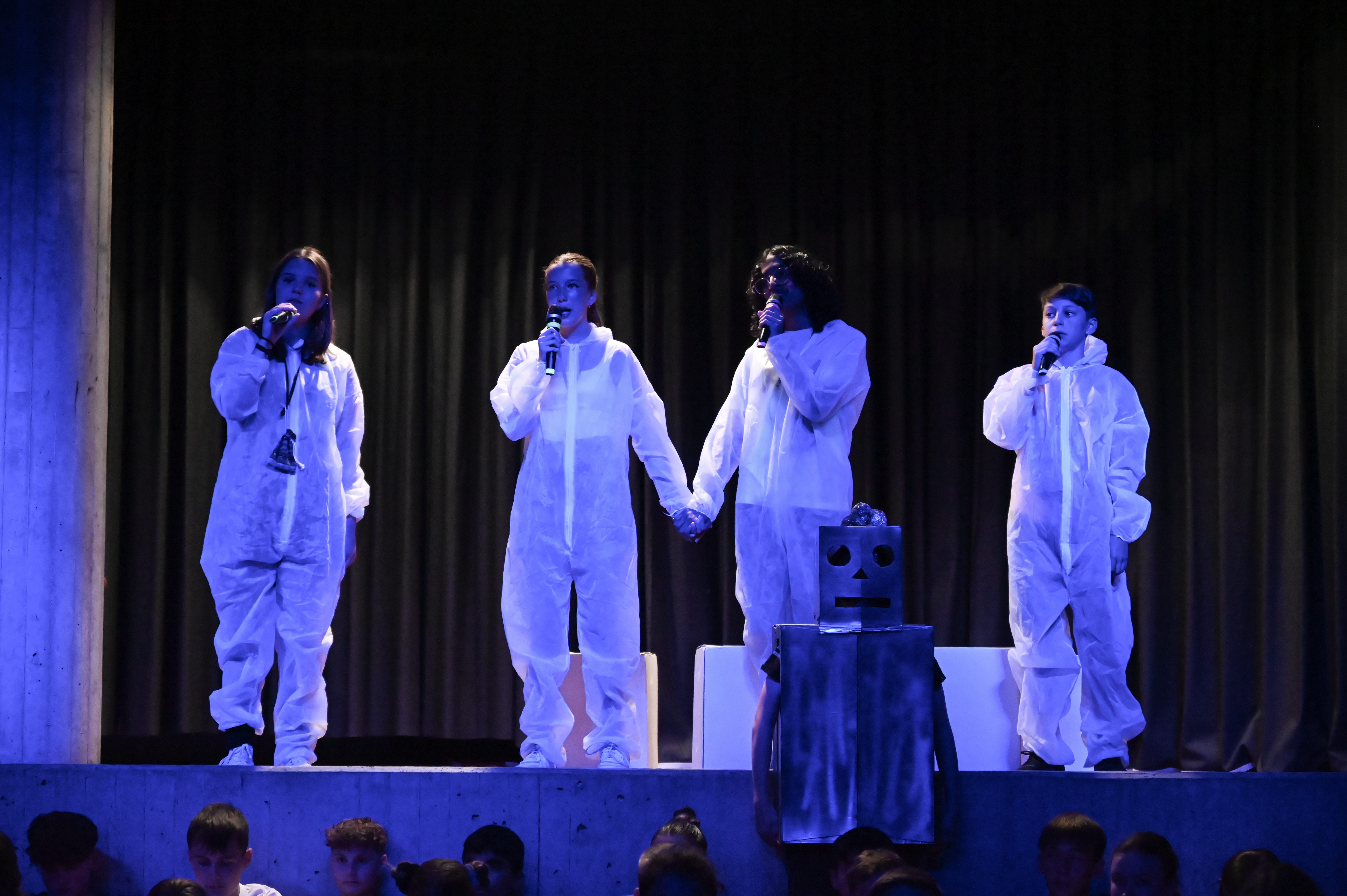 Am 14.7. war es endlich wieder so weit: die 7. Klassen durften ihre Ergebnispräsentation des Pool-Musical-Projektes, das dieses Jahr von den Musiklehrerinnen Frau Greulich, Frau Strasser und Frau Weber geleitet wurde, einem größeren Publikum vorstellen. Nach zwölf Wochen mit vielen Probenstunden, Rollenwünschen und sicher auch -verwünschungen, wenn der Text sich nicht so einfach auswendig lernen ließ, hieß es an diesem Abend: Kein Wunsch ist schnuppe.