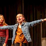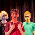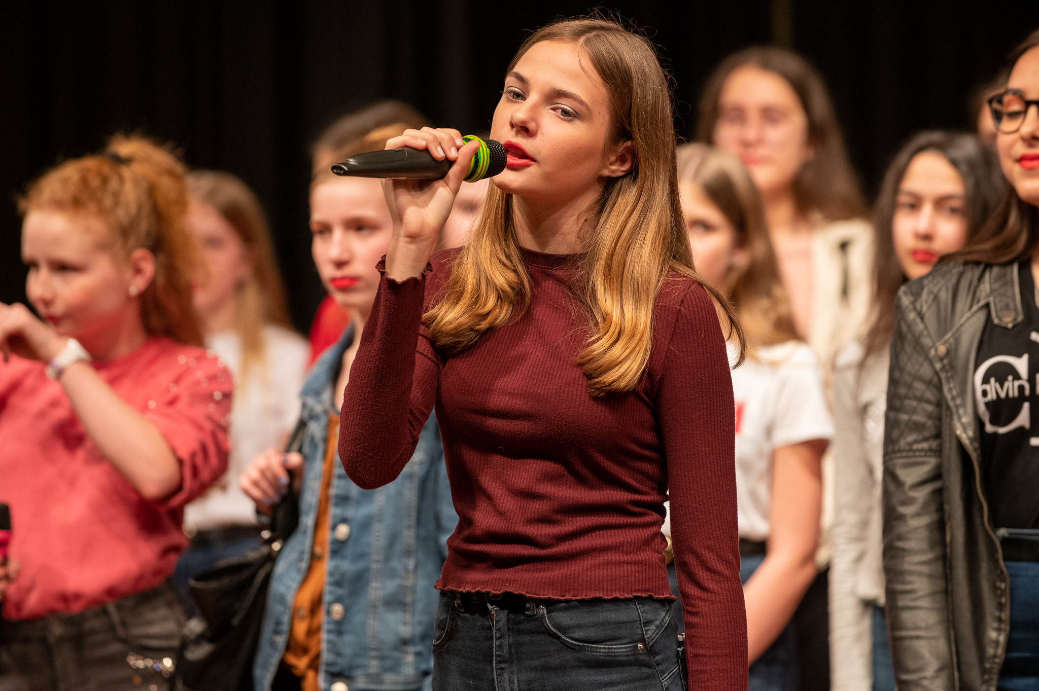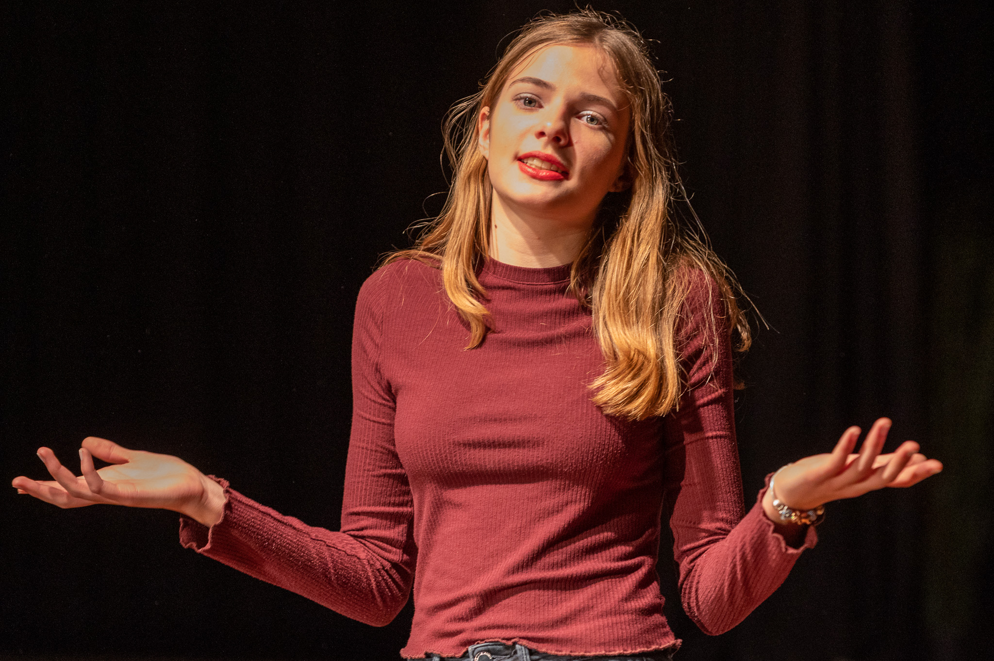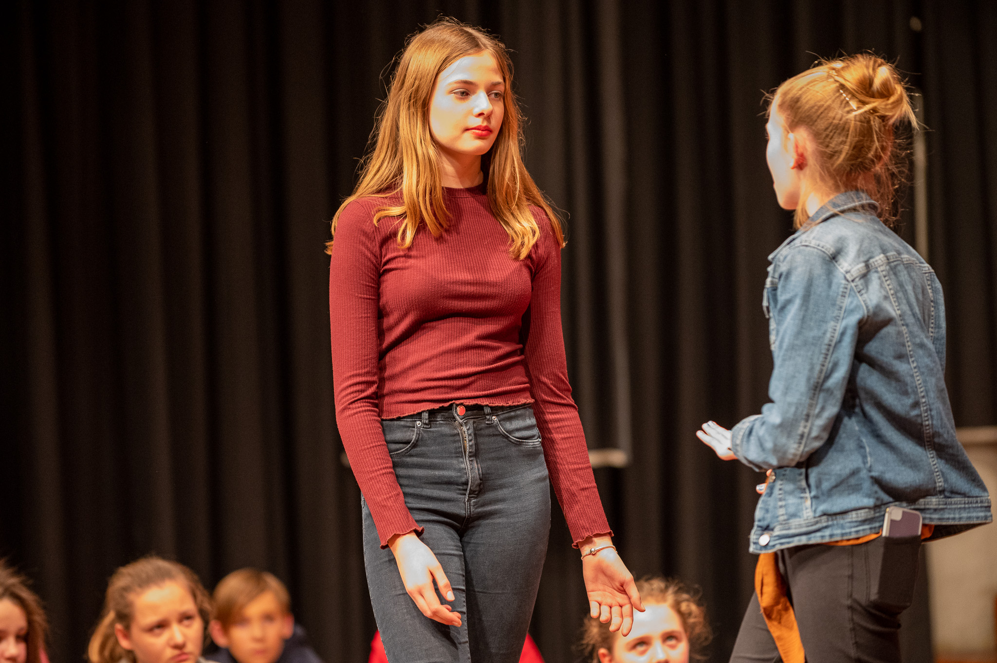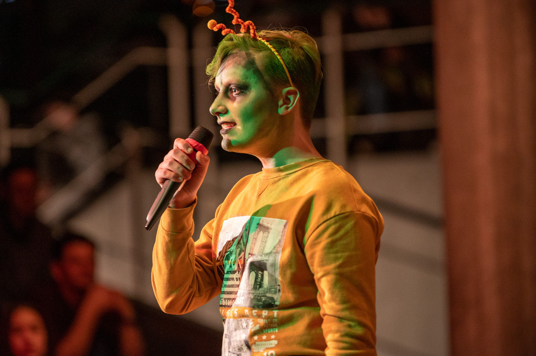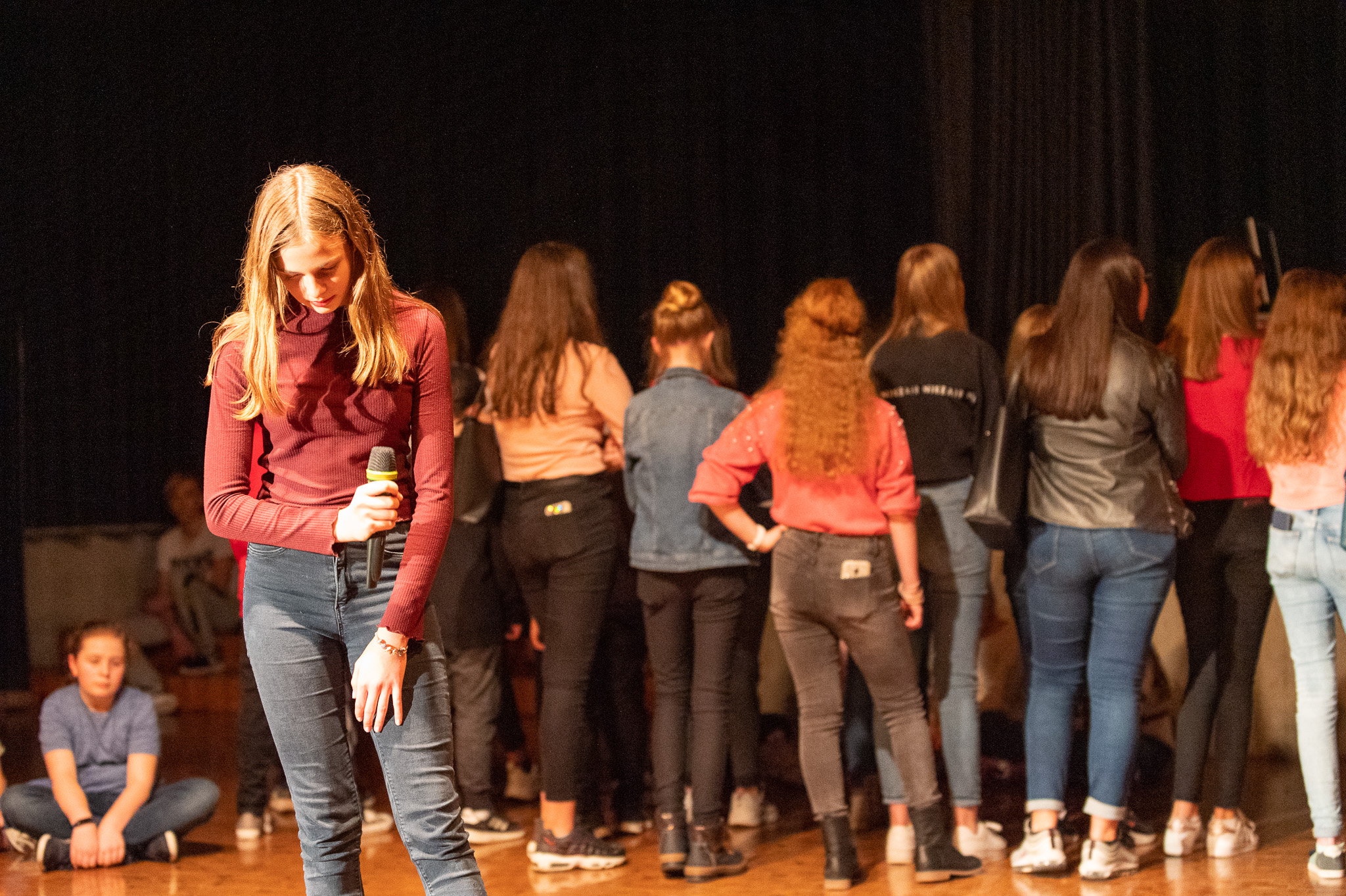 Eine Geschichte hat immer zwei Gesichter. Es kommt jedoch selten vor, dass das so wörtlich gemeint ist wie in der Poolaufführung, die unsere siebten Klassen am 14. Februar in der Kulturmulde unter der Leitung von Frau Strasser, Frau Weber, Frau Greulich und Herrn Kocsis präsentierten. In dem Musical zeigt uns die Hauptfigur Luna ihr zweites Gesicht als Alienmädchen Alienne. Als Luna noch von der Clique der Supercoolen der Schule angefeindet, entwickelt sie sich als Alienne zum absoluten Star. Dabei überzeugte uns besonders die Hauptdarstellerin Pauline ebenso wie die provokant zickig dargestellten „Supercoolen“, angeführt von Emily. In die Geschichte hineingezogen haben uns jedoch nicht nur die Darsteller und die Songs, die meist von einem Chor aus Kindern aller siebten Klassen begleitet wurden, sondern auch das Make—up von einem anderen Stern, das Adel auf die Gesichter der Aliens „beamte“. Nicht zu vergessen ist auch die musikalische Untermalung durch die Band, die durch Peter aus der JG12 tatkräftig unterstützt wurde.