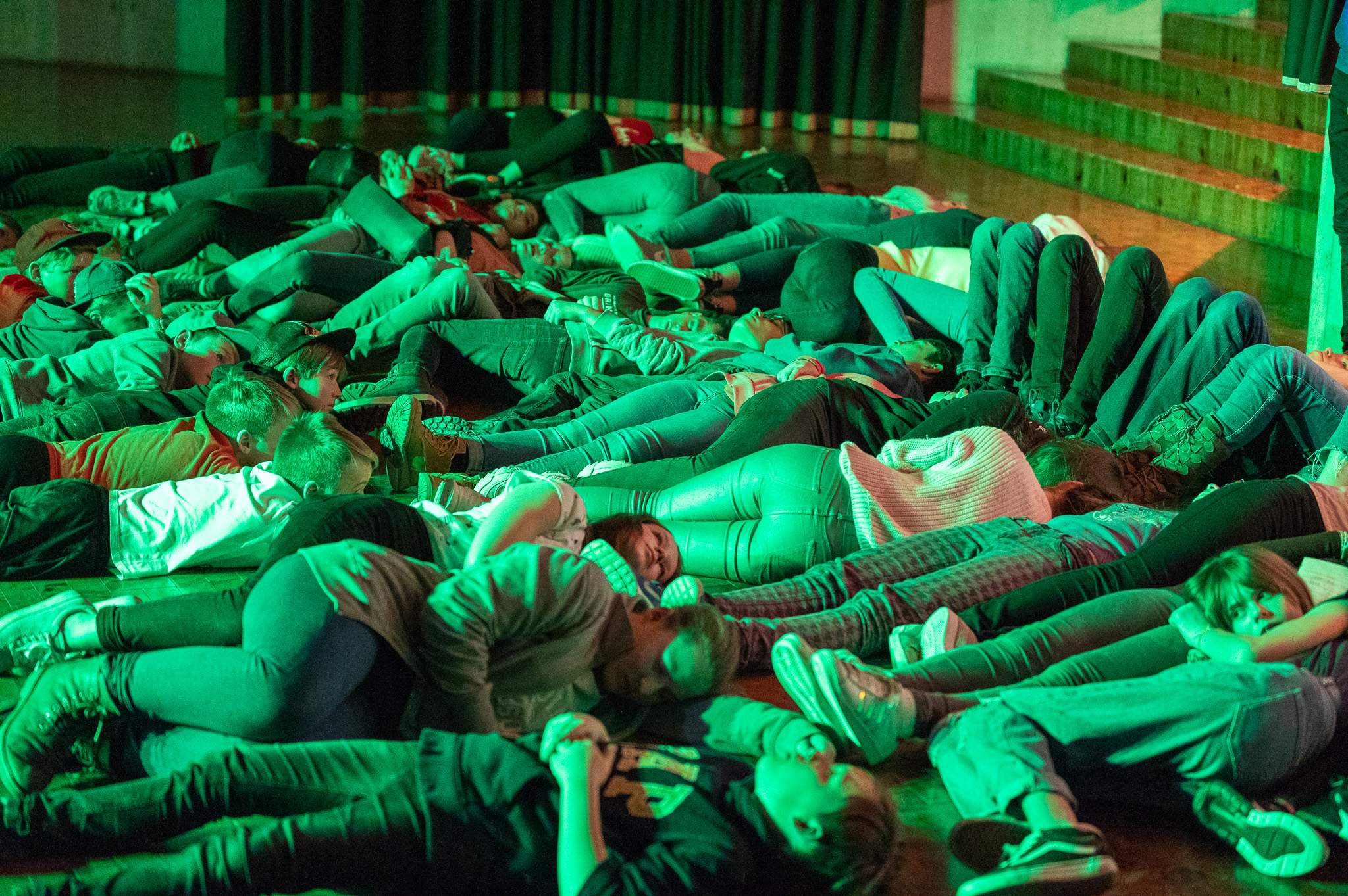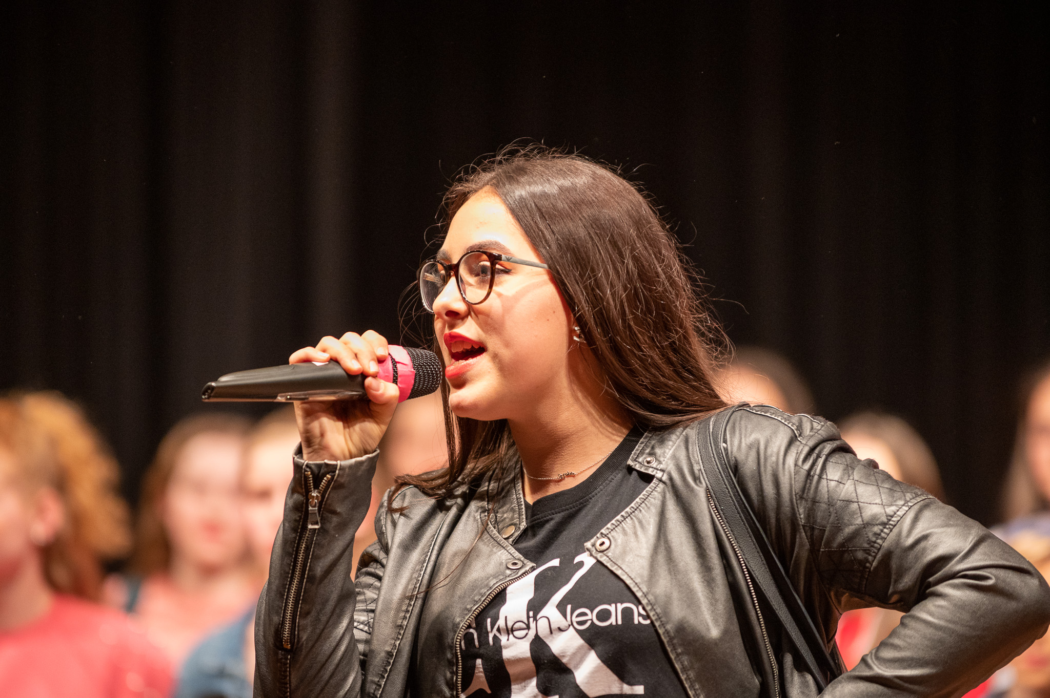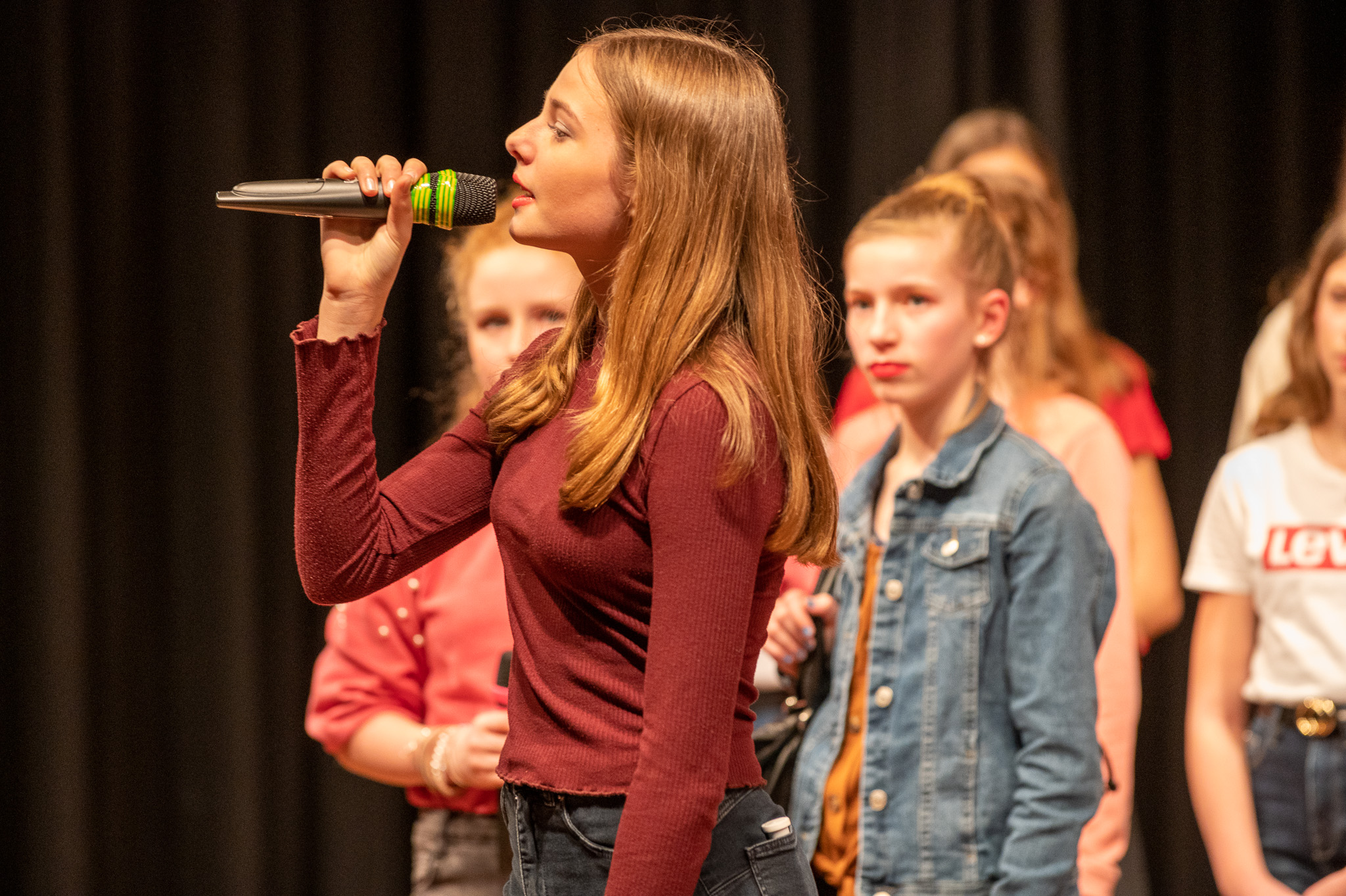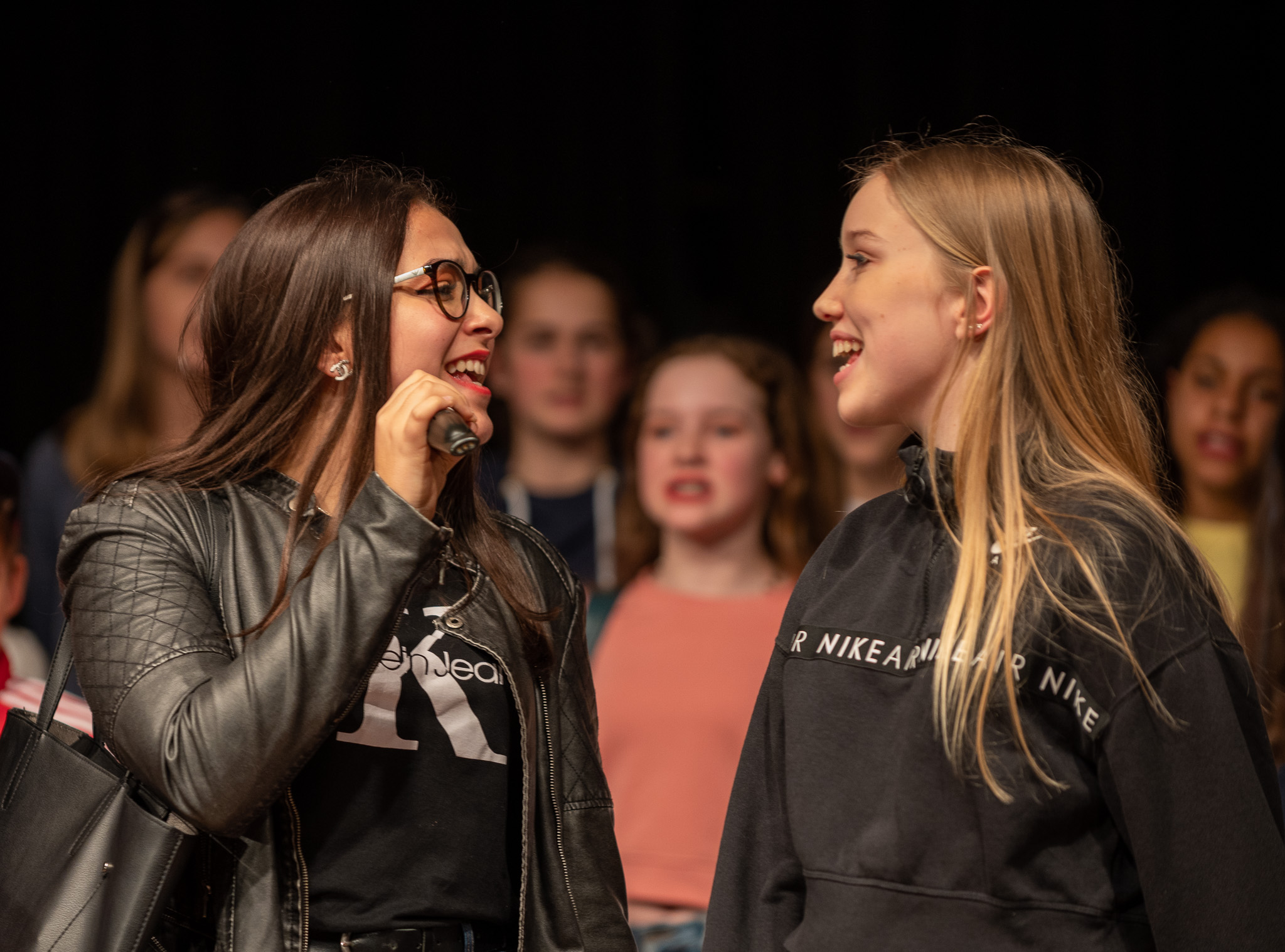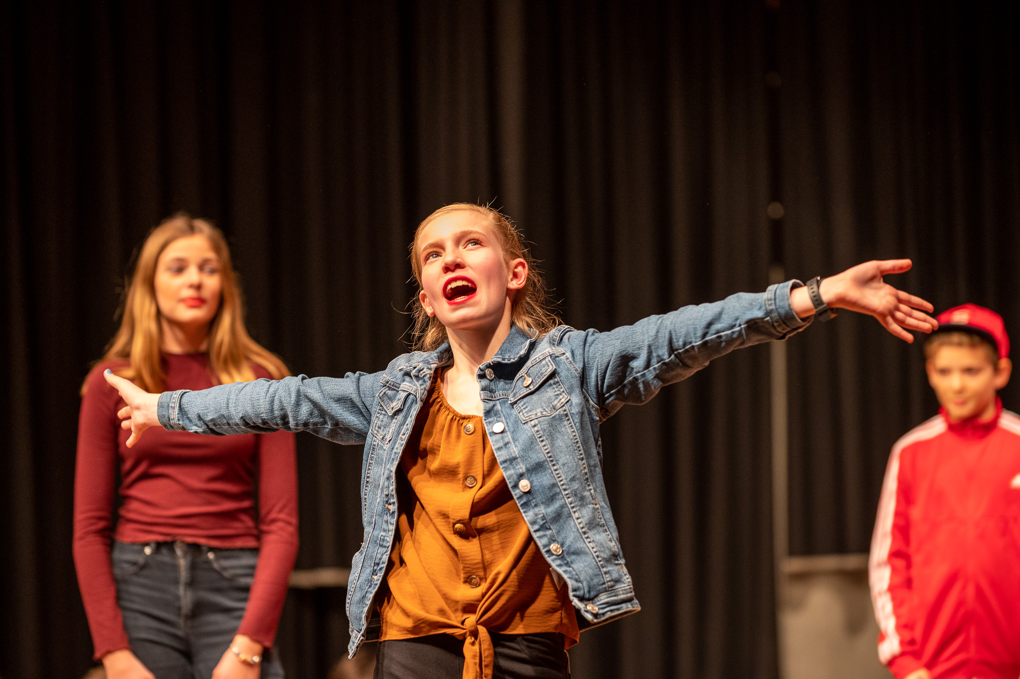 Eine Geschichte hat immer zwei Gesichter. Es kommt jedoch selten vor, dass das so wörtlich gemeint ist wie in der Poolaufführung, die unsere siebten Klassen am 14. Februar in der Kulturmulde unter der Leitung von Frau Strasser, Frau Weber, Frau Greulich und Herrn Kocsis präsentierten. In dem Musical zeigt uns die Hauptfigur Luna ihr zweites Gesicht als Alienmädchen Alienne. Als Luna noch von der Clique der Supercoolen der Schule angefeindet, entwickelt sie sich als Alienne zum absoluten Star. Dabei überzeugte uns besonders die Hauptdarstellerin Pauline ebenso wie die provokant zickig dargestellten „Supercoolen“, angeführt von Emily. In die Geschichte hineingezogen haben uns jedoch nicht nur die Darsteller und die Songs, die meist von einem Chor aus Kindern aller siebten Klassen begleitet wurden, sondern auch das Make—up von einem anderen Stern, das Adel auf die Gesichter der Aliens „beamte“. Nicht zu vergessen ist auch die musikalische Untermalung durch die Band, die durch Peter aus der JG12 tatkräftig unterstützt wurde.