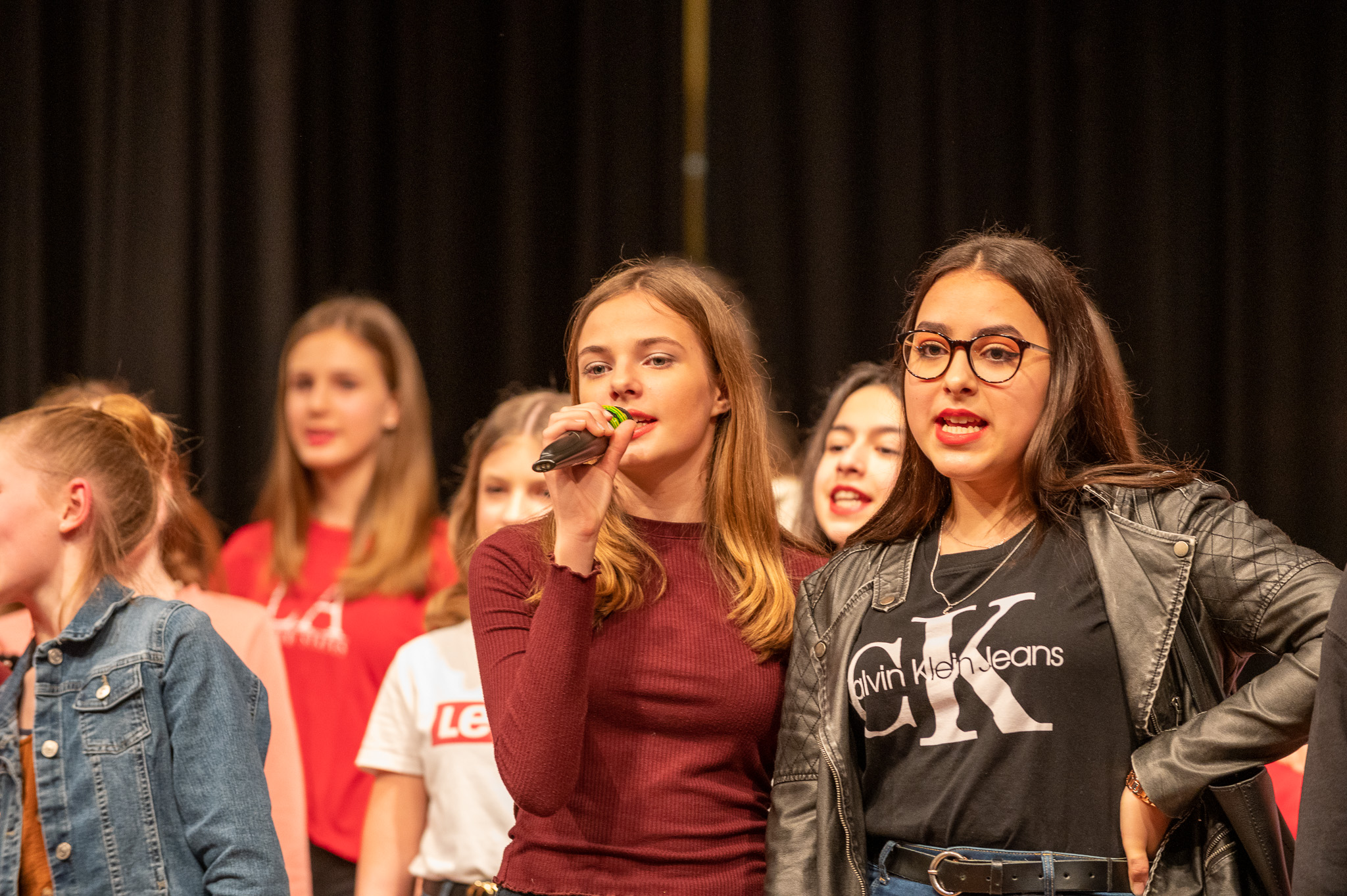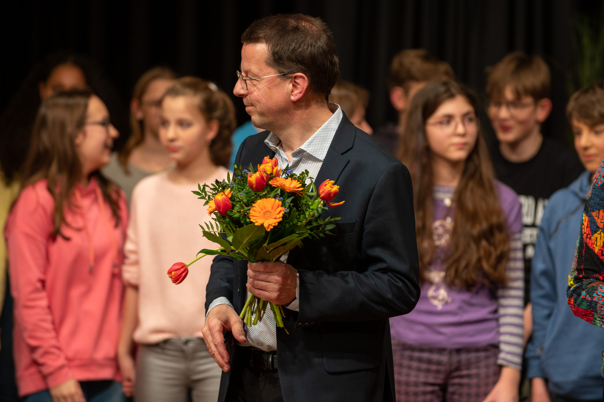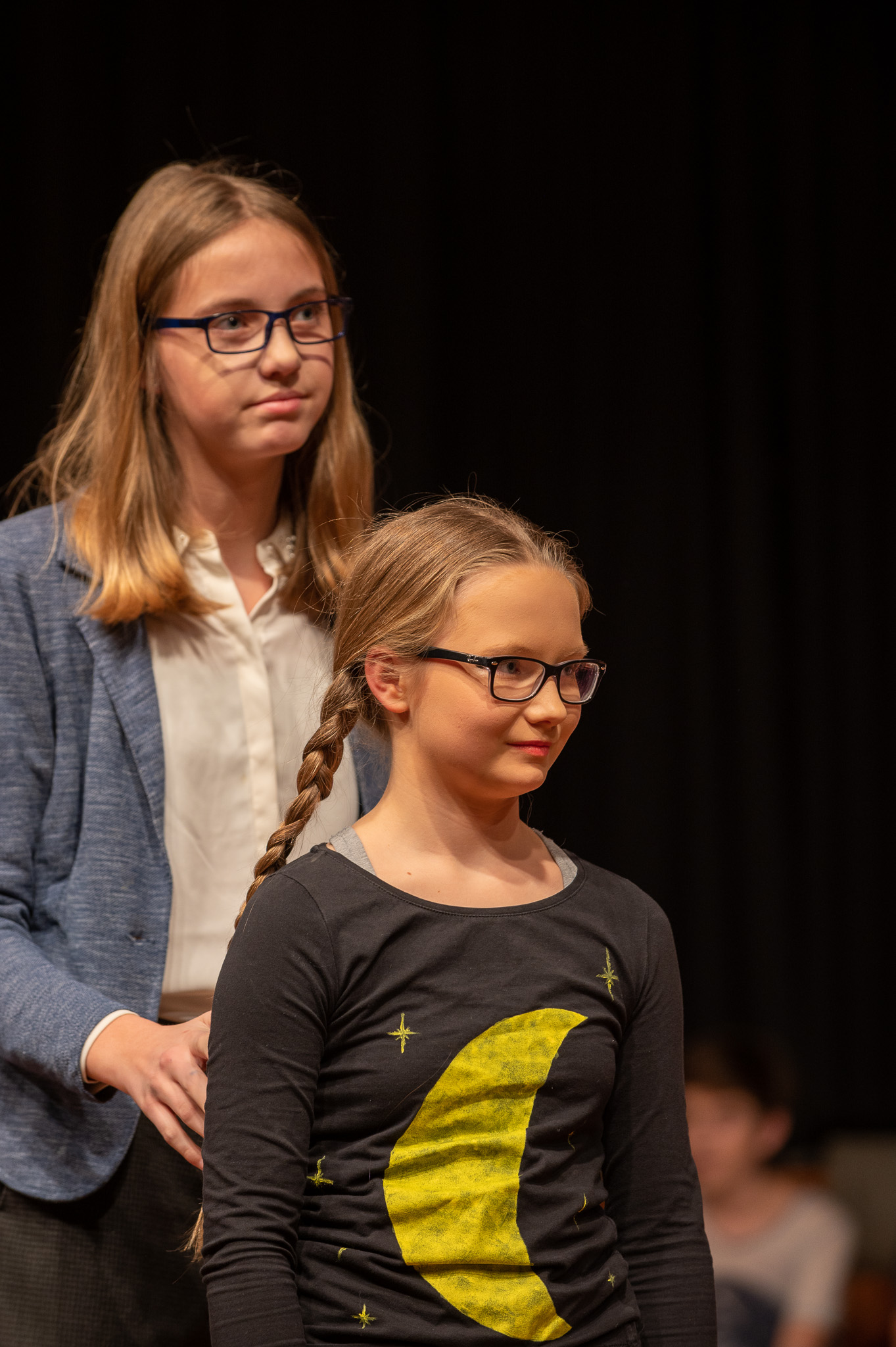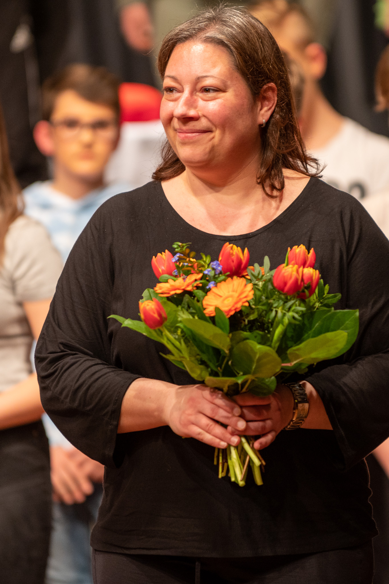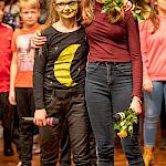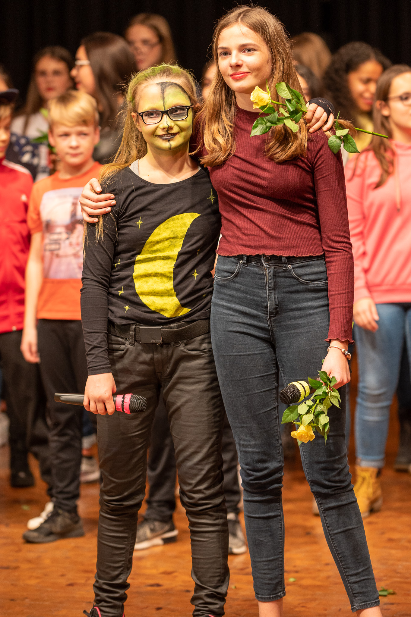 Der Abend, der uns Ohrwürmer wie den „Space Rock“ bescherte und und das Versprechen gab, dass es nie wieder Mobbing an unserer Schule geben wird, endete mit tosendem Applaus, fliegenden Rosen und dem Wunsch nach einer Zugabe, dem die gefeierten Schauspieler und Musiker gerne nachkamen. Mit diesem begeisternden Theaterabend, der euch in Gesang und Tanz sicherlich gefordert hat, habt ihr, liebe Siebtklässler, nicht nur bei zahlreichen Lehrern, sondern auch bei euren stolzen Familien ein „Steinchen“ im Brett.