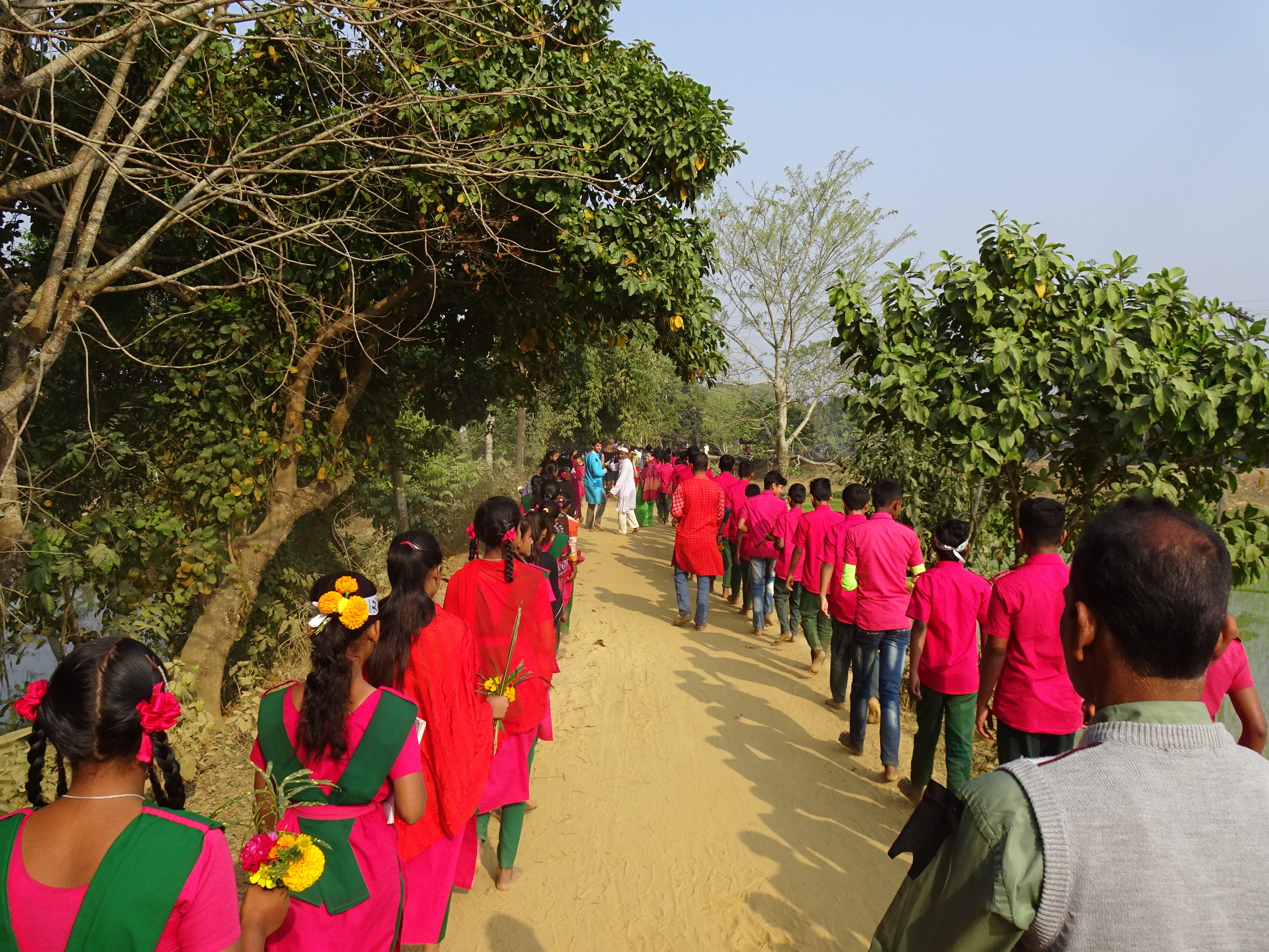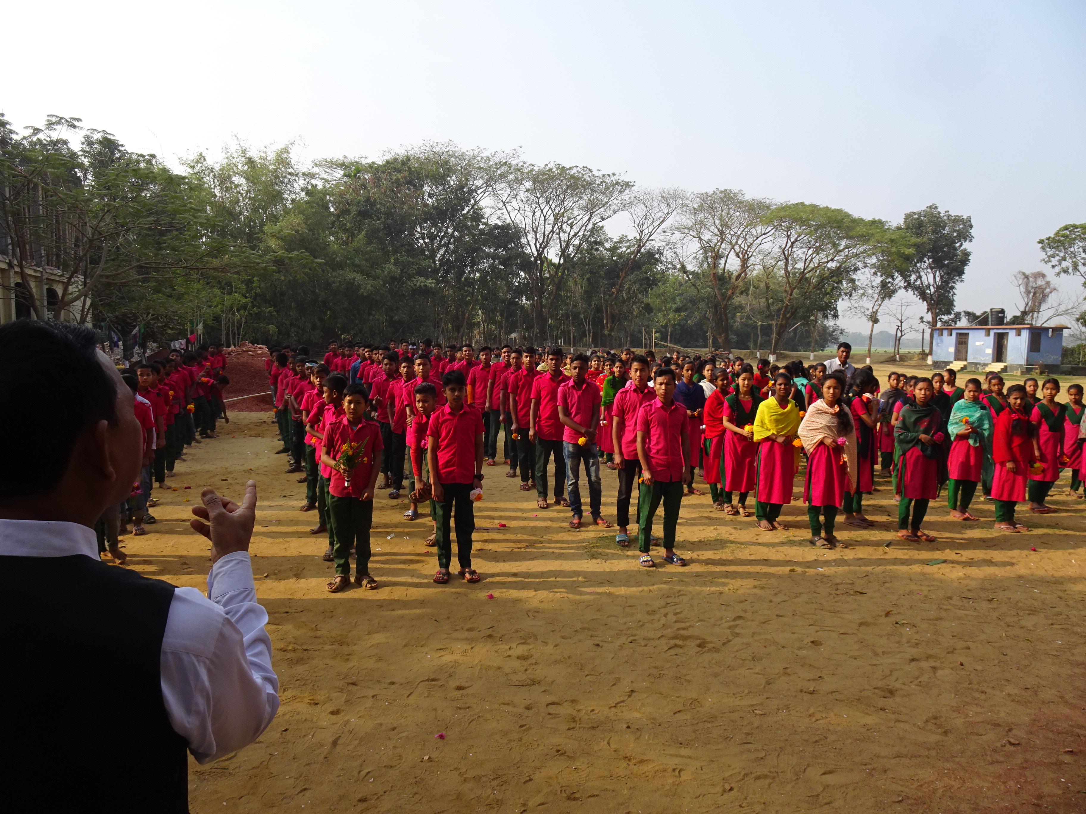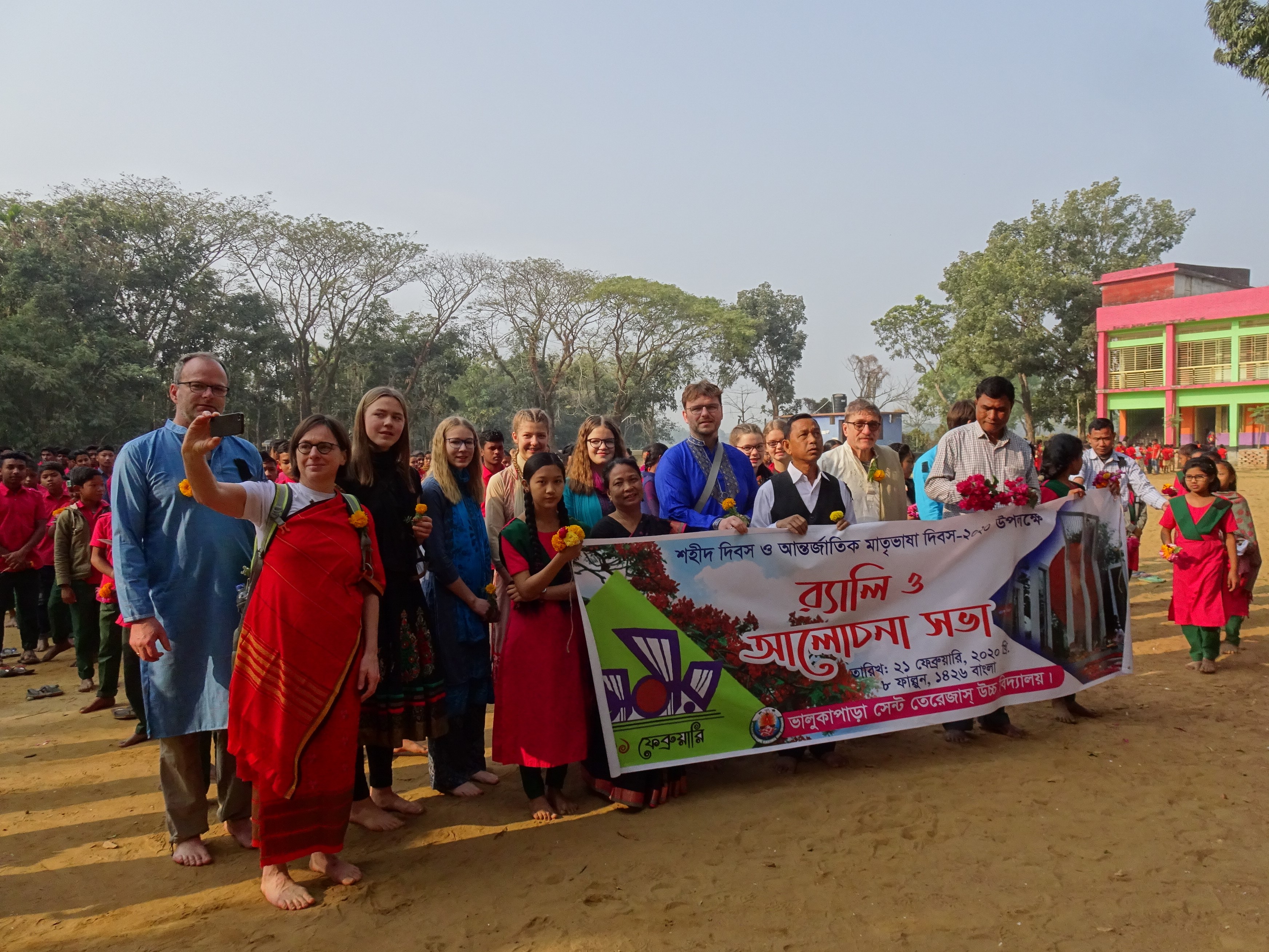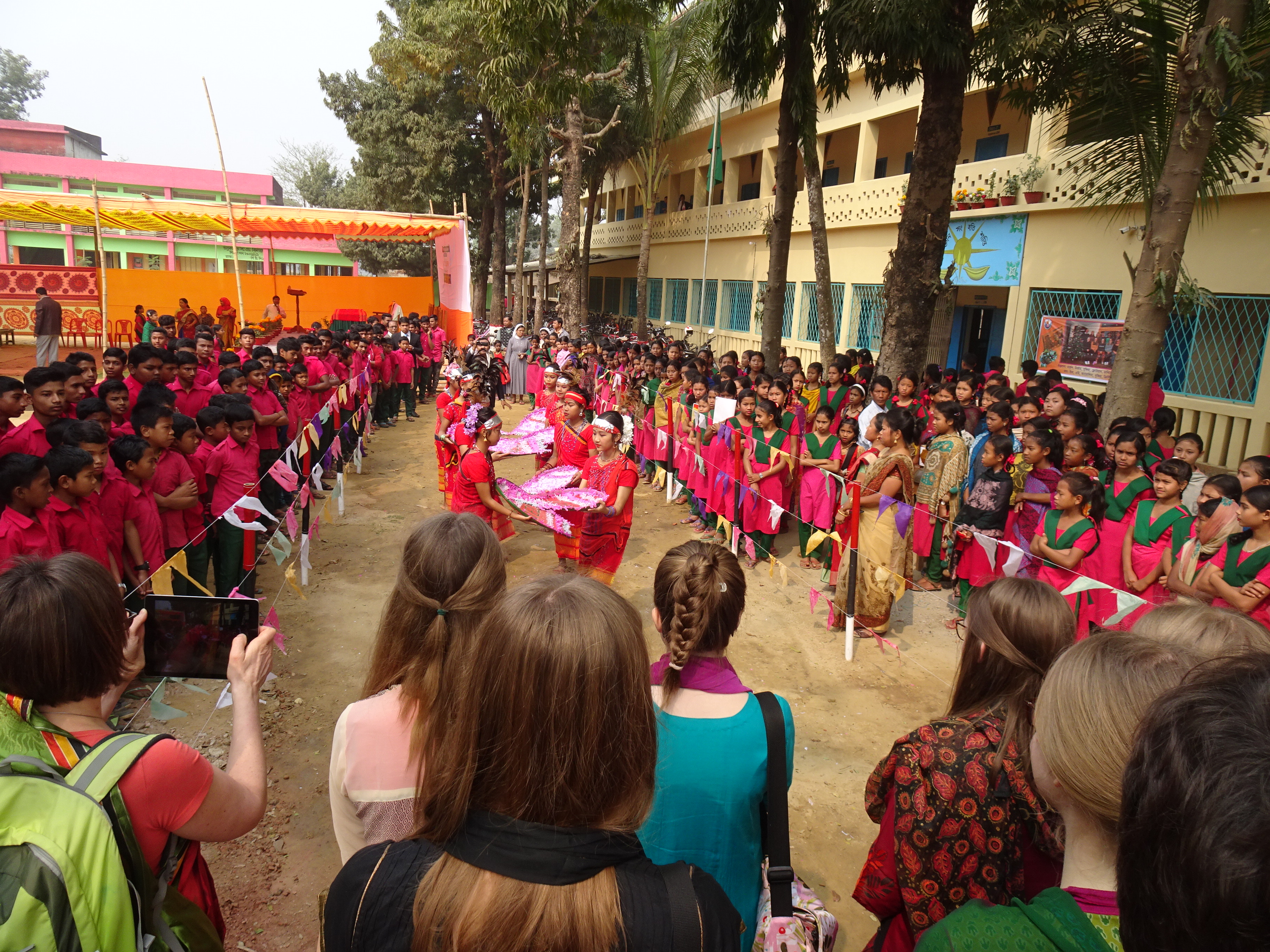 Nach dem Flug von Stuttgart nach Dhaka mit Zwischenstopp in Istanbul am Samstag kam die gesamte Gruppe zwar müde, aber glücklich am frühen Sonntagmorgen in der Hauptstadt Dhaka an. Nach einer langen Autofahrt erreichte man am Abend bereits Bhalukapara, wo man herzlich willkommen geheißen wurde, dann aber doch recht schnell müde ins Bett fiel. Die Woche in Bhalukapara war gefüllt mit vielen Begegnungen und Unternehmungen an unserer Partnerschule, der St. Teresa´s Highschool. Dort hatten wir Programmpunkte wie einen Sportnachmittag, die Einweihung des Erweiterungsbaus und wir durften mit den Lehrern und Schülern in Bhalukapara den Internationalen Tag der Muttersprache feiern. Nach einer Woche ging es weiter Richtung Mymensingh. Auf dem Weg dorthin machten wir noch verschiedene Zwischenhalte, um unter anderem Father Simon zu besuchen, der bereits mehrfach am Werkgymnasium zu Gast war. Am Abend nahmen wir dann den Nachtbus, um nach Mongla zu kommen.