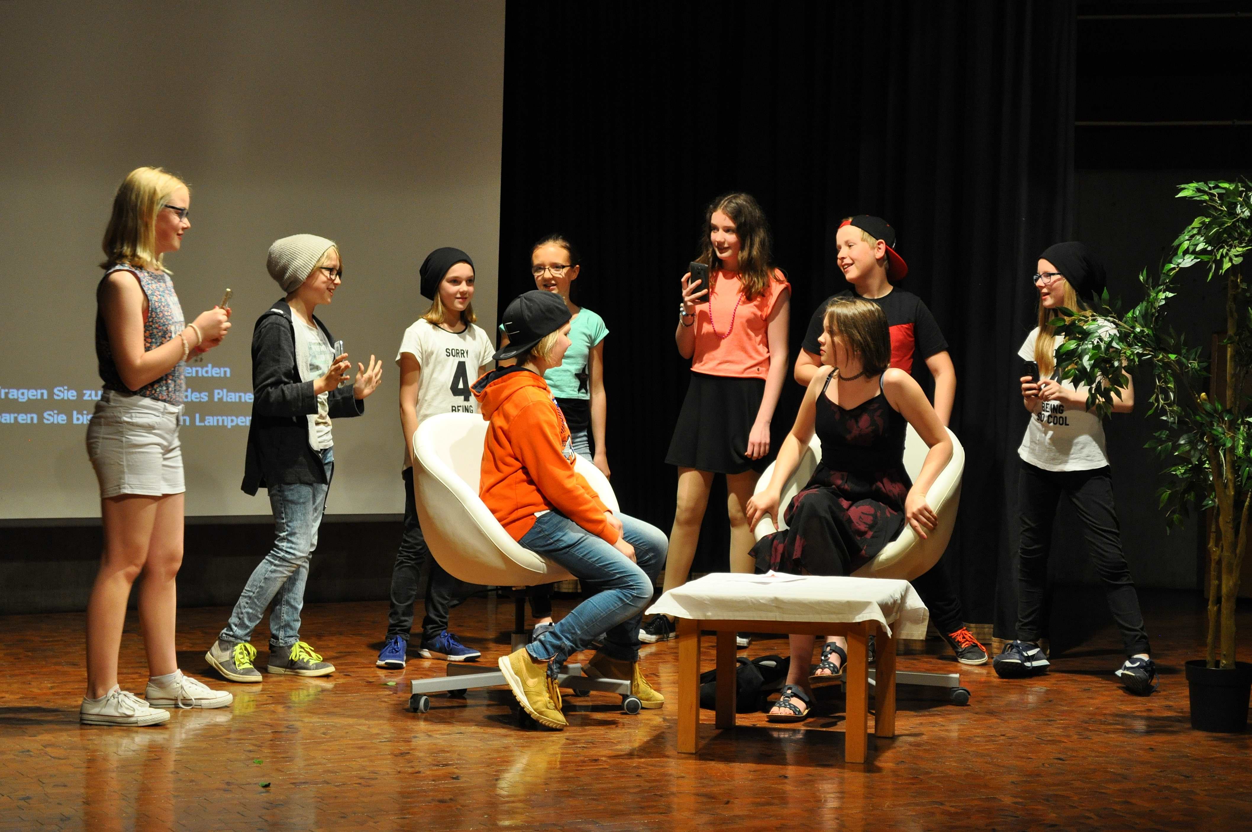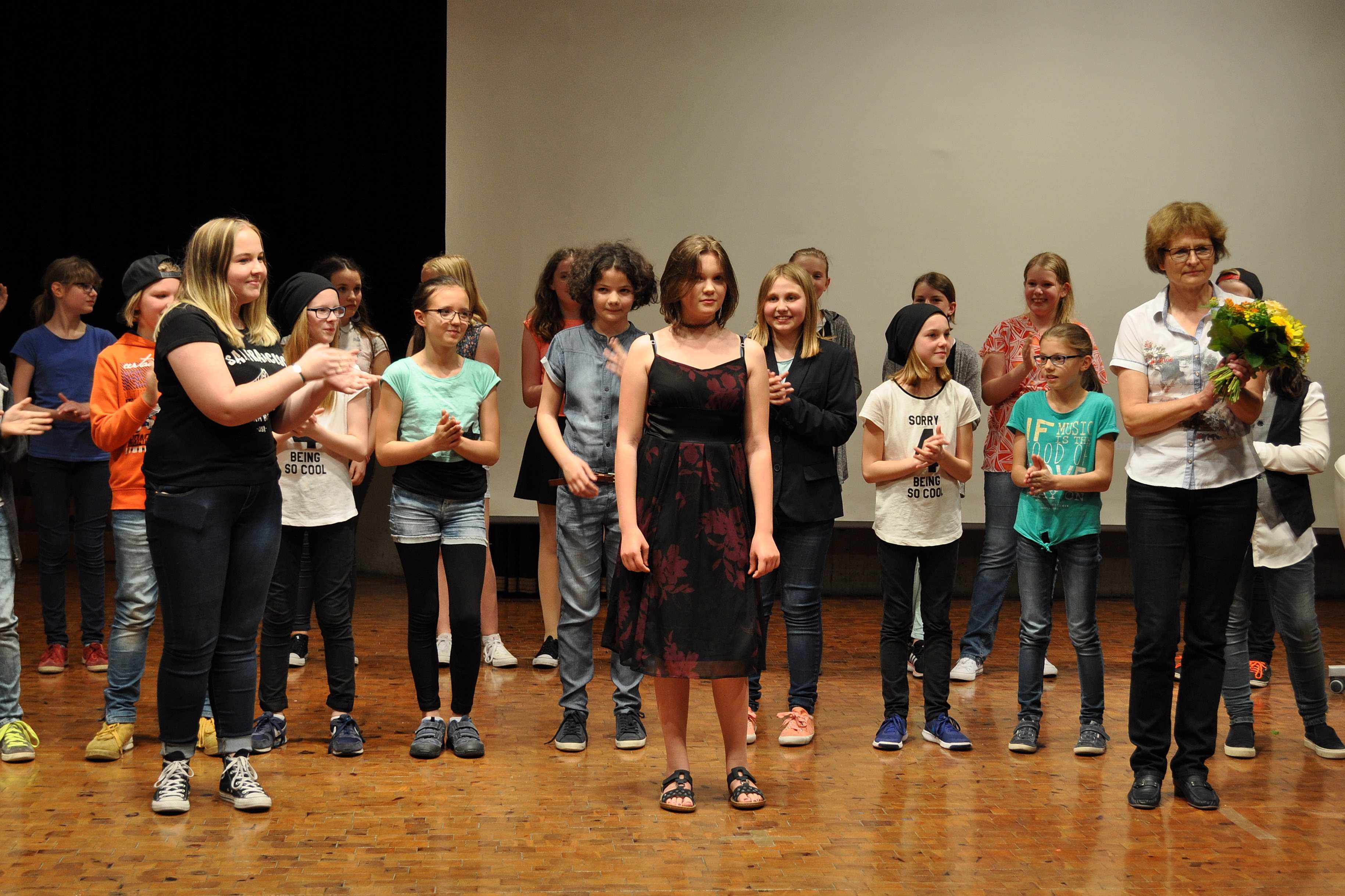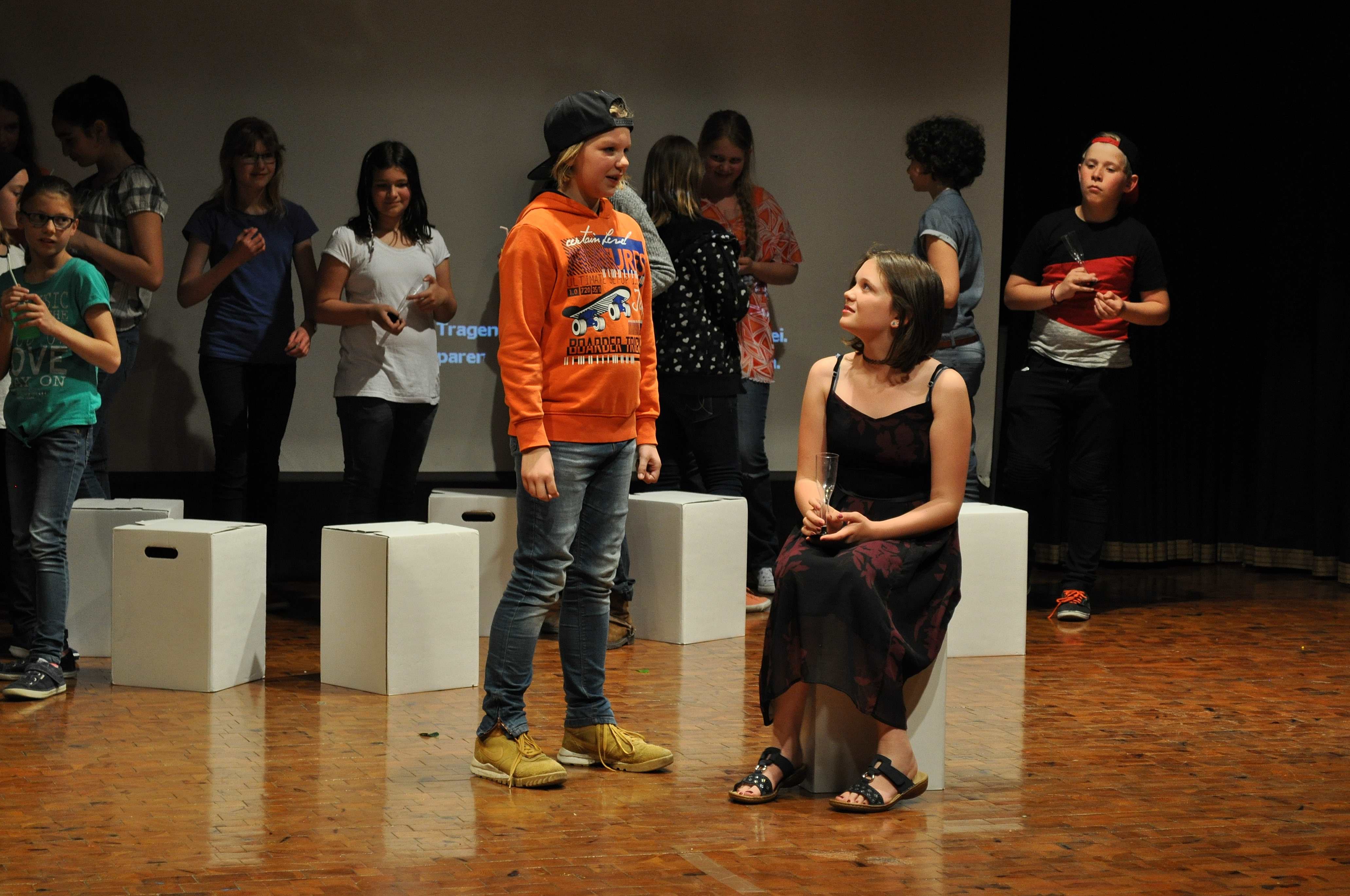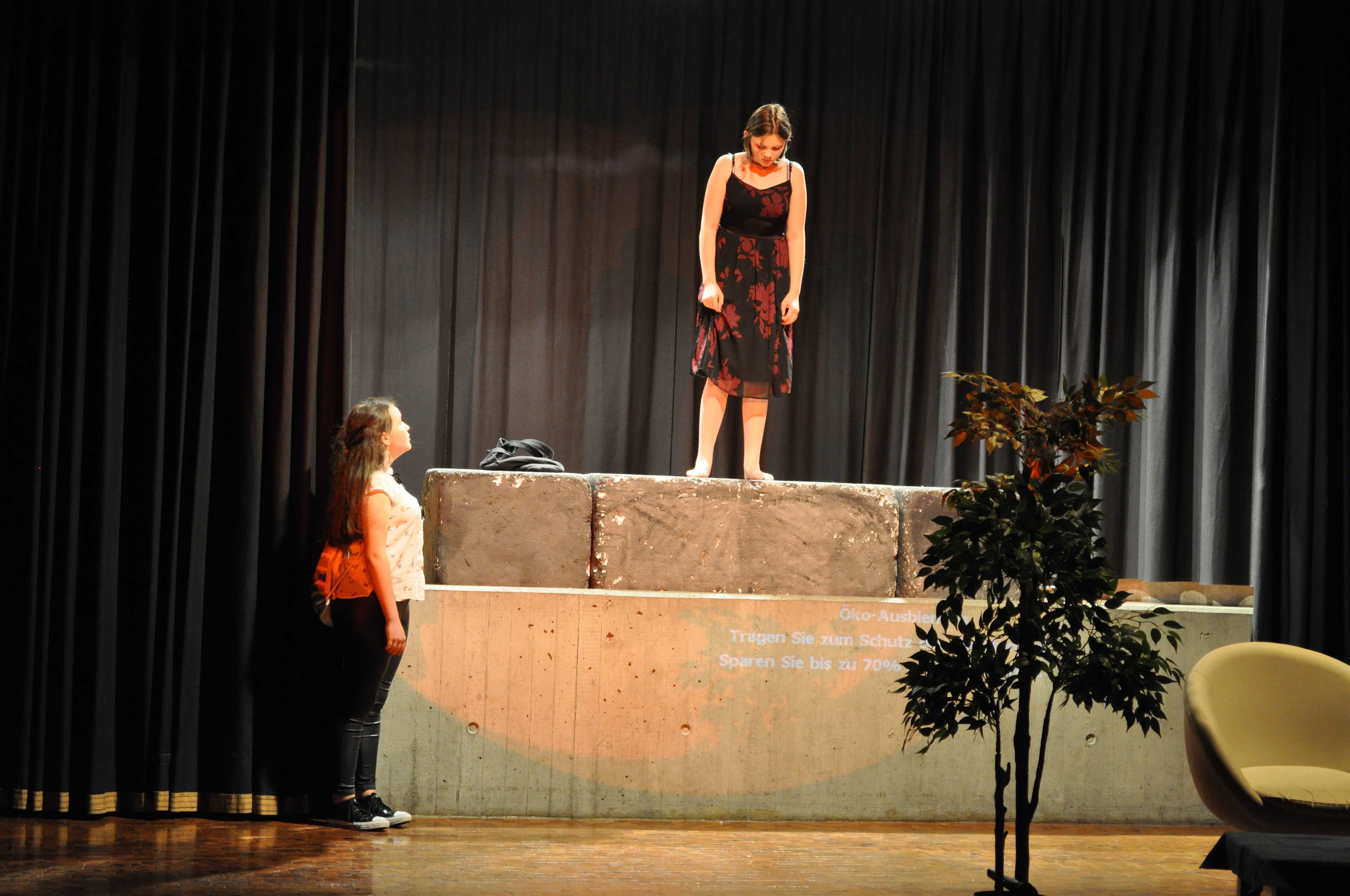 Nach eineinhalb Stunden intensiven Bühnengeschehens endete das Stück mit einem offenen Schluss. Anja verschwindet und überlässt dem Zuschauer die Suche nach einer Lösung. Diskussionsanreize gab es mehr als genug. Im letzten Song allerdings bezogen die Schülerinnen und Schüler ganz klar Stellung: „Sag Nein zu Mobbing!“.