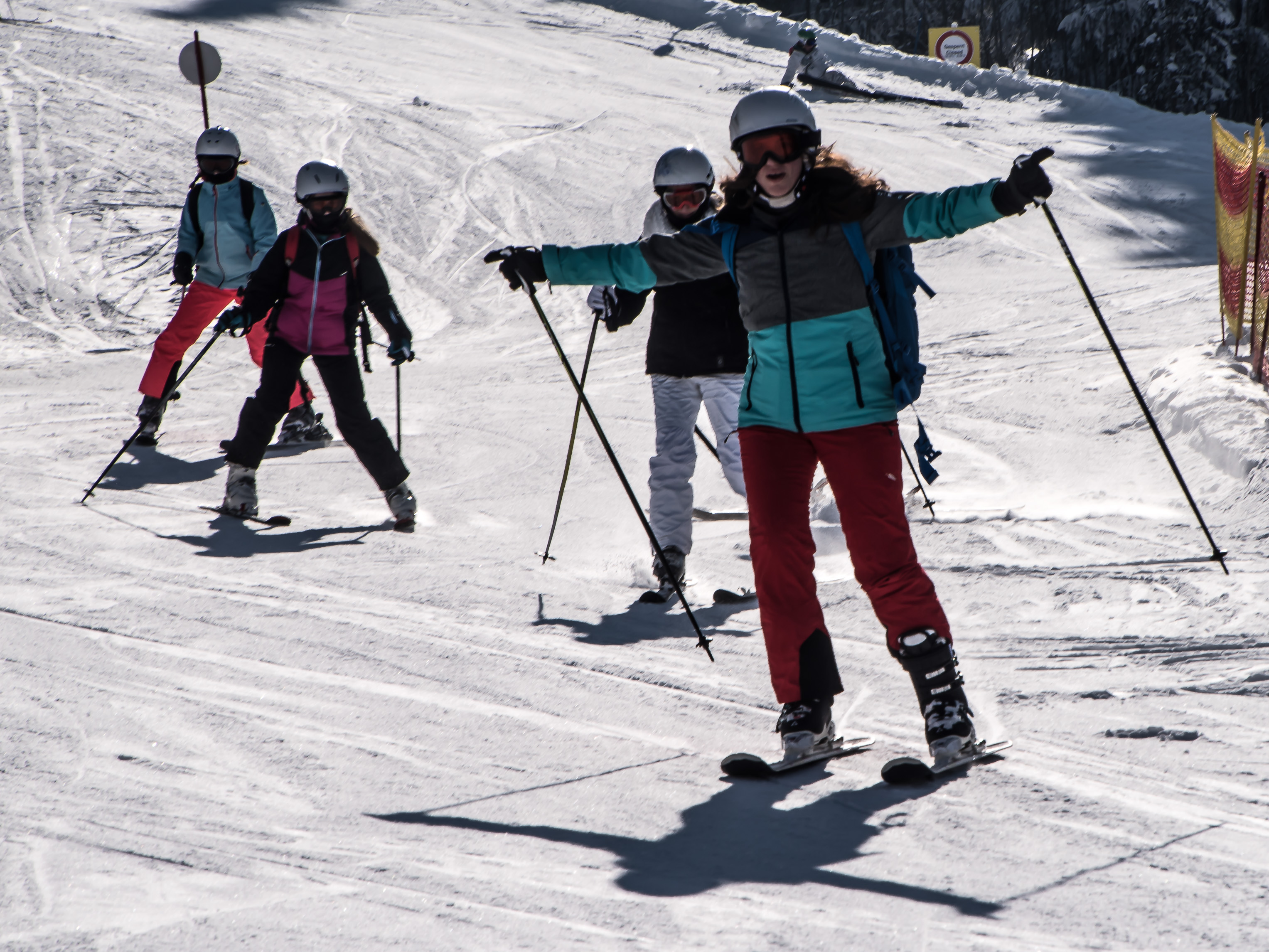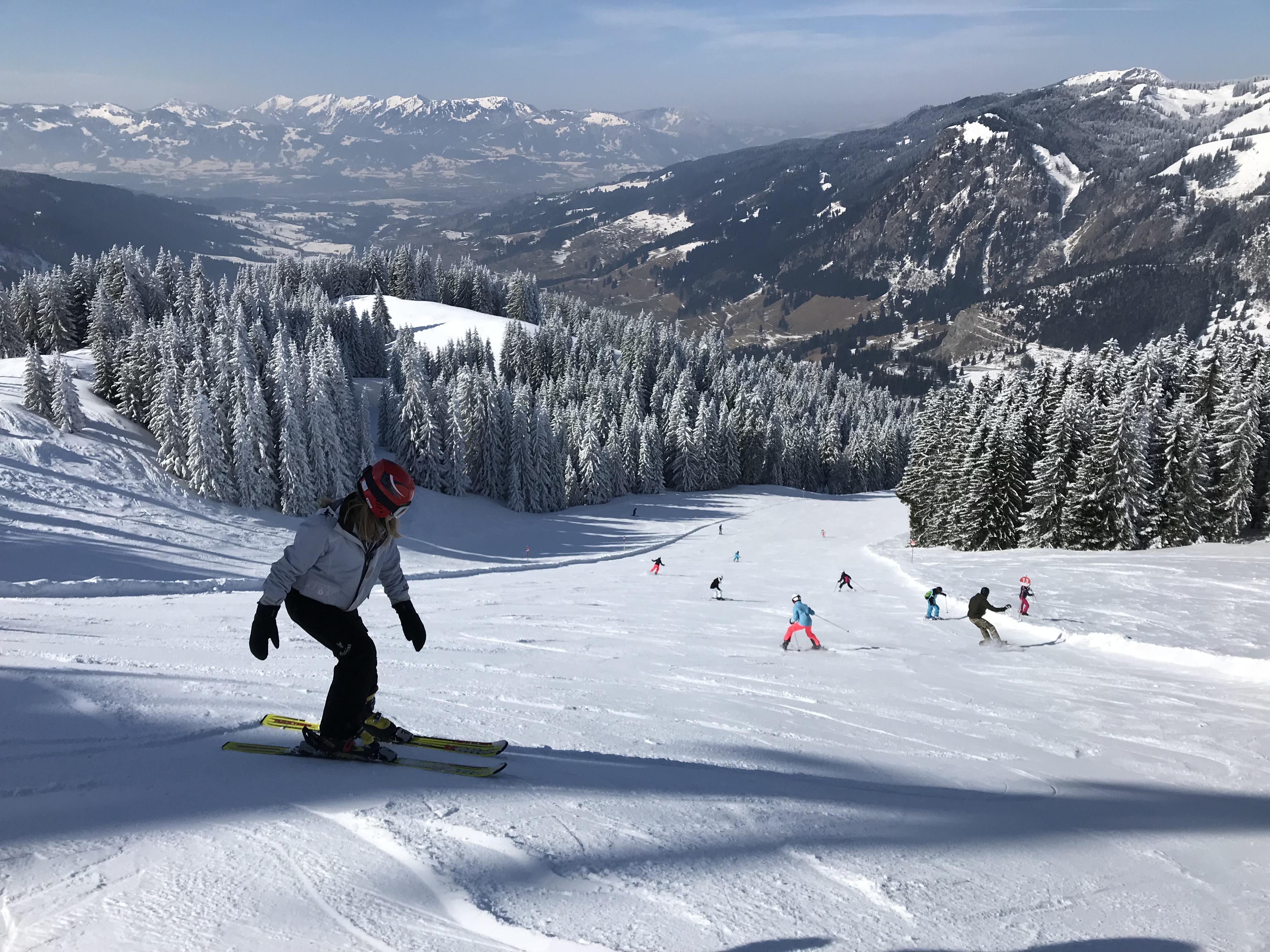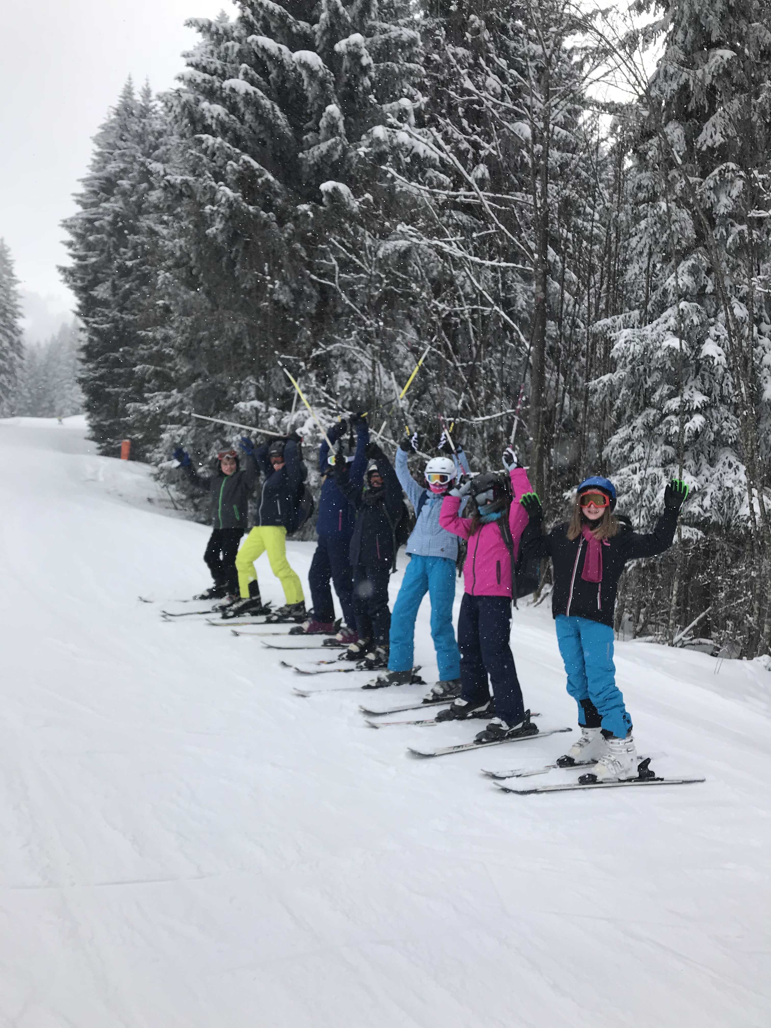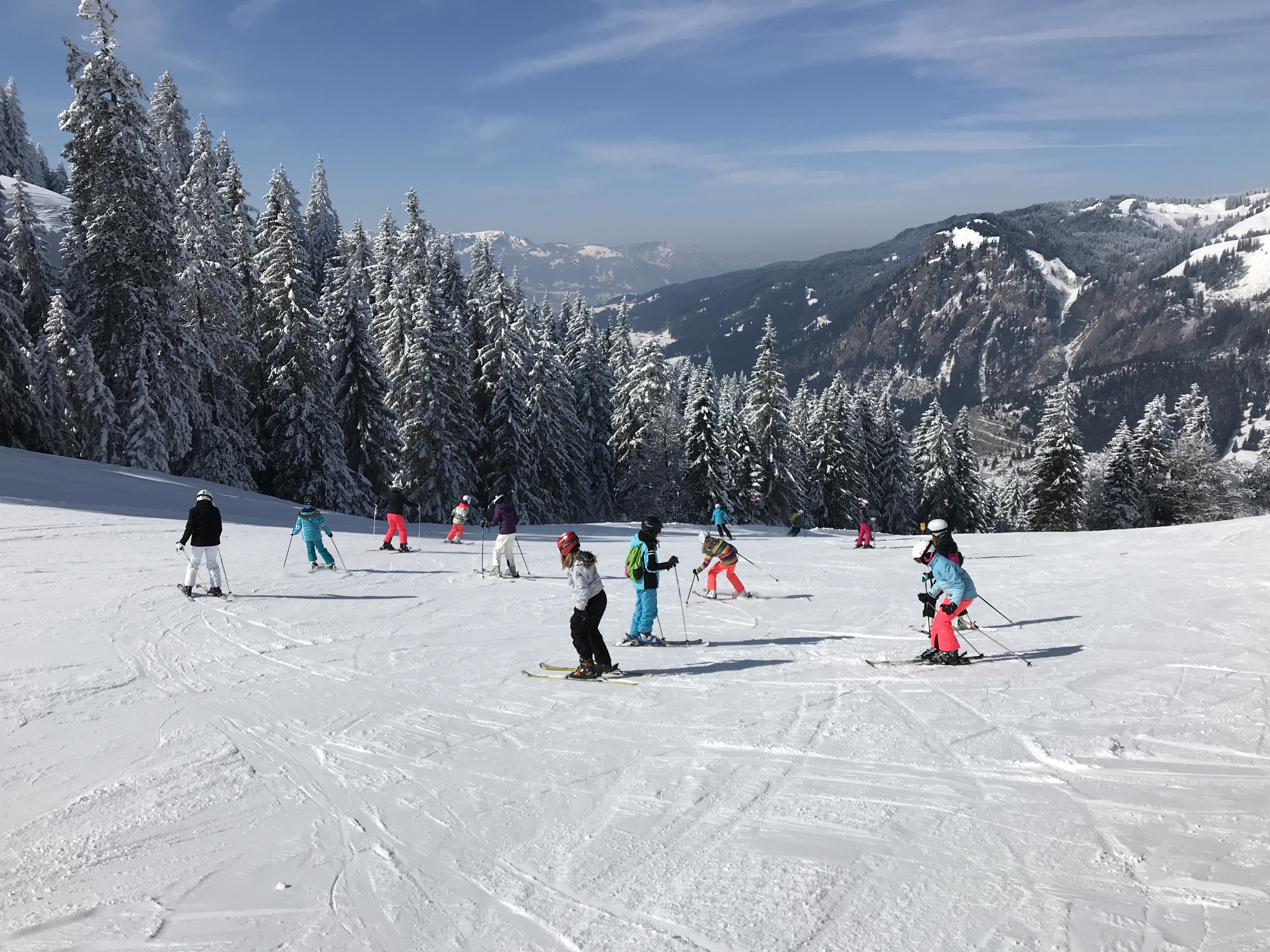 In den ersten Tagen ging es für die Neulinge auf Skiern zunächst einmal darum, Bewegungserfahrungen zu sammeln und Sicherheit auf den ungewohnten Fortbewegungsmitteln zu bekommen. Diese Herausforderung wurde verstärkt durch zwei besonders kalte Tage, bei denen das Thermometer sogar tagsüber auf unter 18° Celsius im Minusbereich fiel. Mit jedem Tag standen die meisten aber immer sicherer auf den Skiern und so konnten am letzten Tag nach Aufenthalten in den Skigebieten Jungholz und Oberjoch ganz viele aus den Klassen 6a und 6c die 4,2 Kilometer lange Talabfahrt an der Kanzelwand mit einem Höhenunterschied von 870 Metern bis nach Riezlern bewältigen, während die 6b nach Sonthofen ins Erlebnisbad Wonnemar aufbrach.