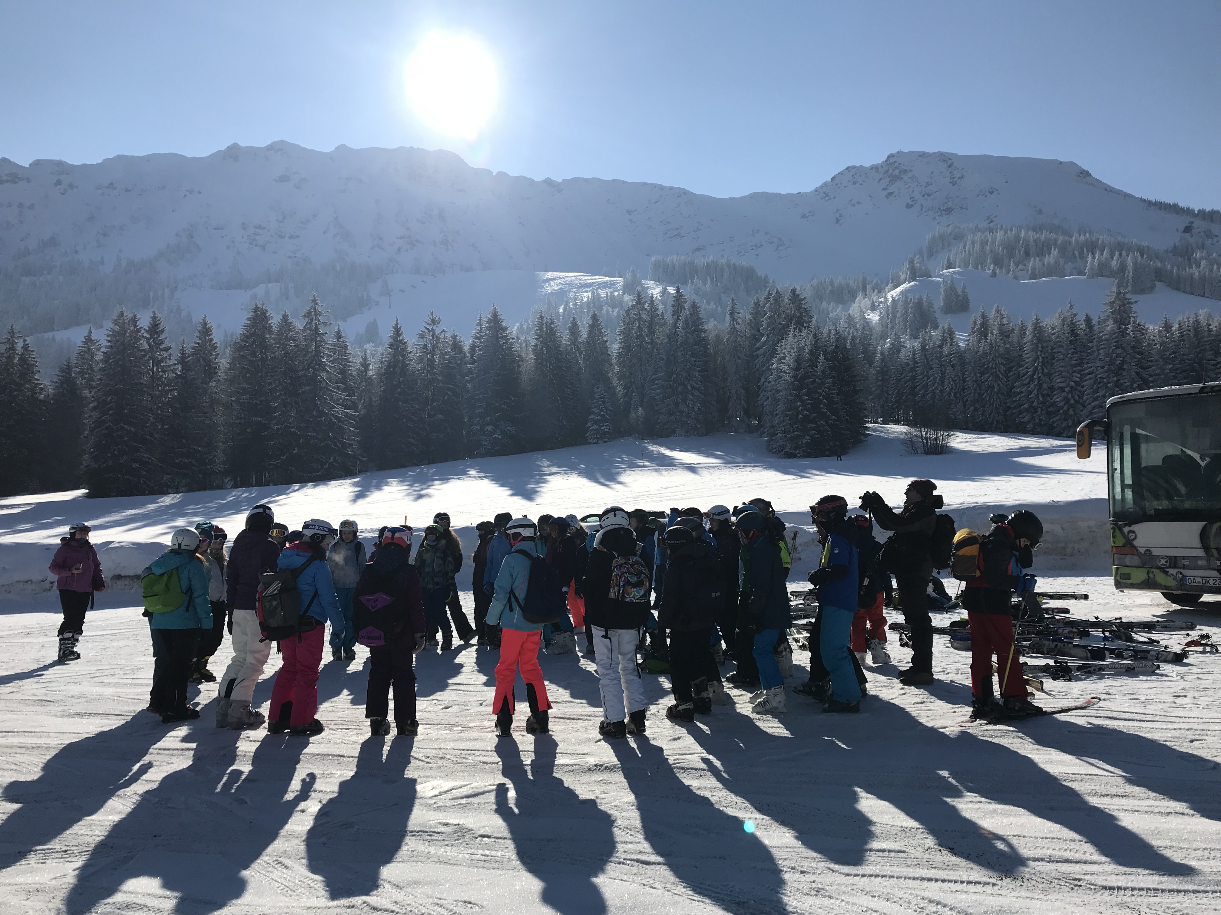 Vom 25. Februar bis 3. März waren dieses Jahr alle sechsten Klassen im Allgäu, um bei besten Schneebedingungen ihre skifahrerischen Fertigkeiten zu verbessern, Erfahrungen in einer großen Gemeinschaft zu sammeln und Erlebnisse zu teilen. Mit ihren Klassenlehrerinnen Ricarda Rickert, Annelie Bassenge und Ewa Osterkamp sowie den männlichen Kollegen Eberhard Rottler und Heri Josten machten sich alle in einem großen Bus auf den Weg ins knapp 1.000 Meter hoch gelegene Quartier. Unterstützt wurden sie während der Skitage von ortsansässigen Skilehrern und den Sportfachschaftskollegen Westfahl, Röscheisen und Werner.