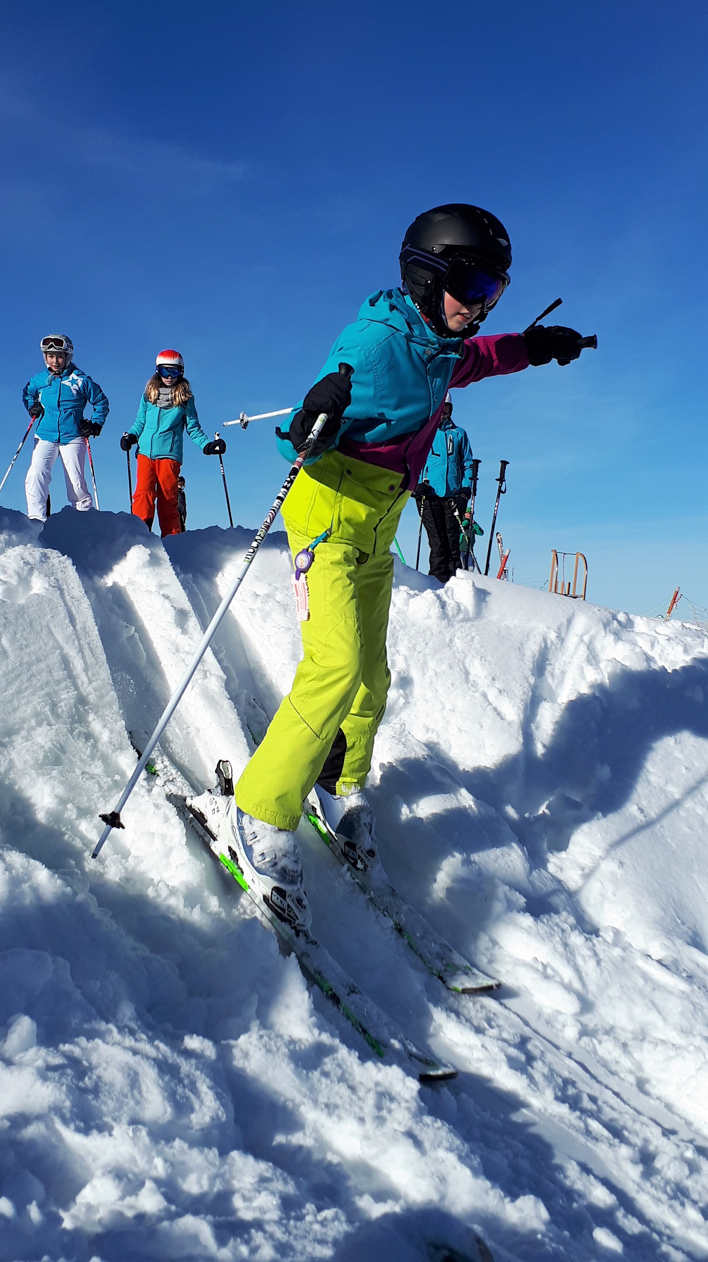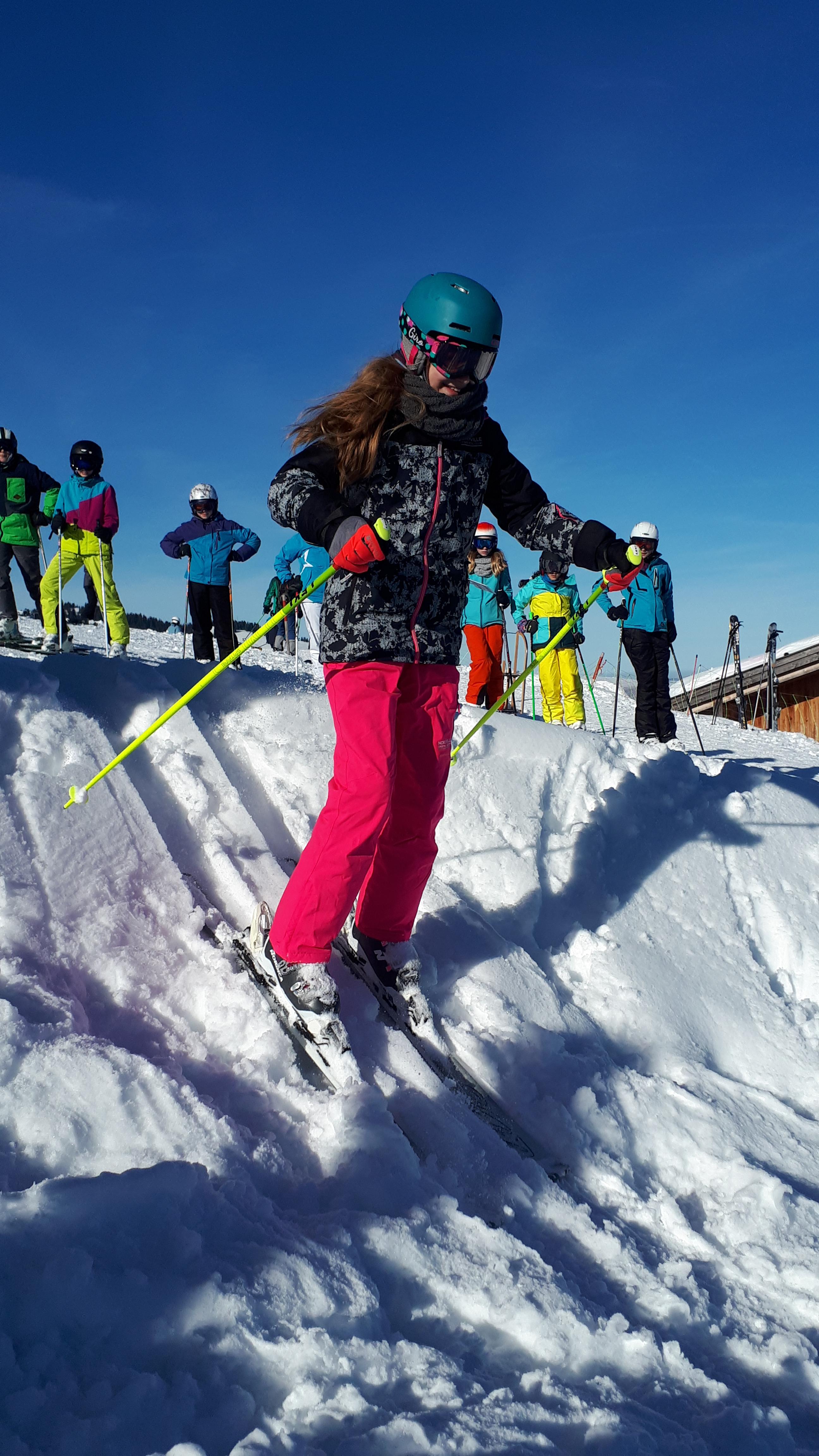 Ich konnte leider erst am Montag kommen, weil ich krank war. Alle haben mich total lieb begrüßt. Am Anfang hatte ich Heimweh, aber meine Freundinnen haben mir geholfen mich wohl zu fühlen. Ich war in der Profigruppe, weil ich schon gut Skifahren konnte. In Jungholz fuhren wir dann bei besten Verhältnissen. Es war ein tolles Gefühl wieder auf Skiern zu stehen! Man hat sich frei gefühlt! Am Abend haben wir geredet oder Tischtennis gespielt.