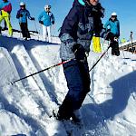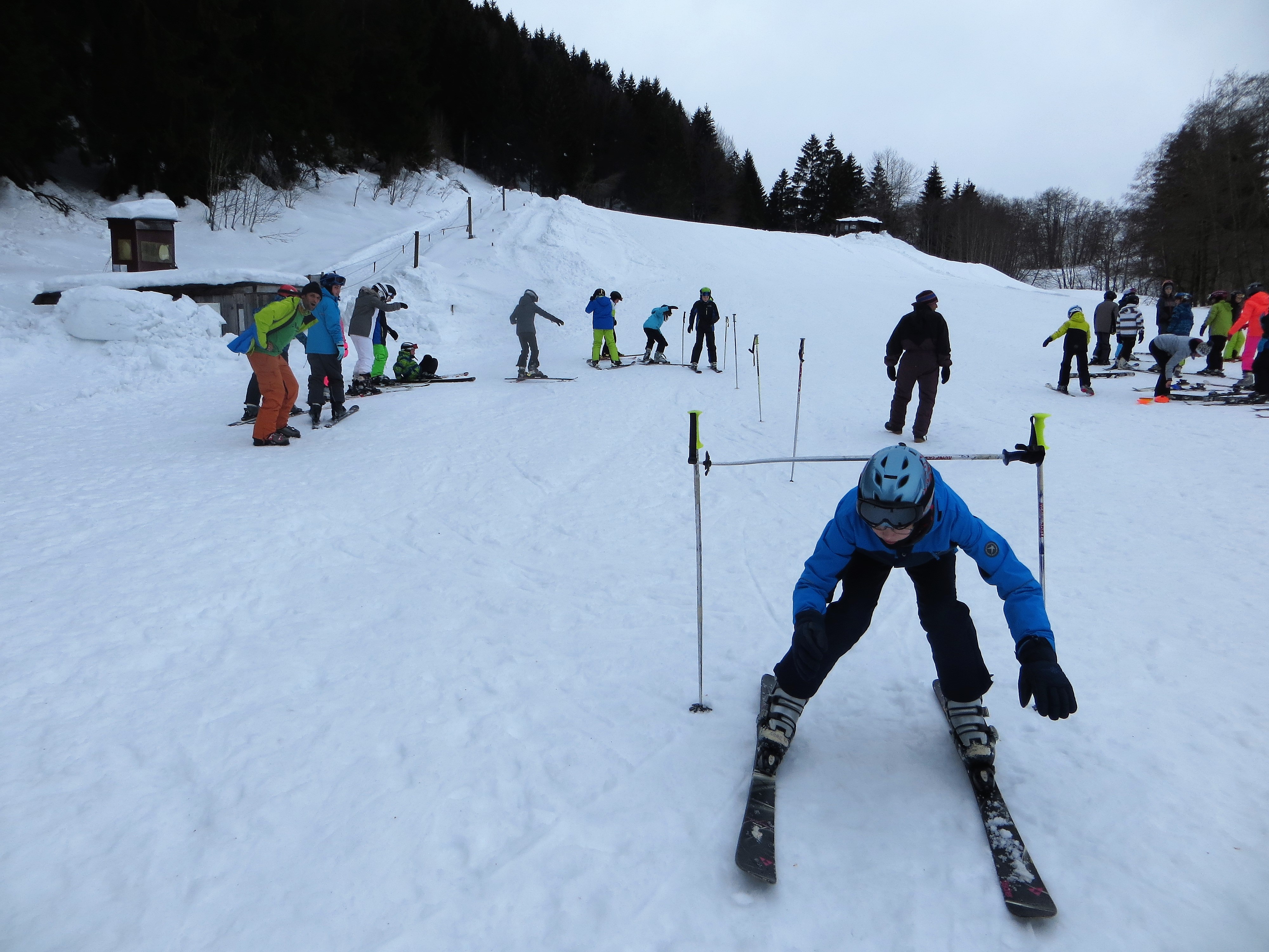 Als wir das geschafft hatten, durften wir auf einem Ski anfangen zu fahren. Es fühlte sich toll an sich einfach gleiten zu lassen. Endlich war es so weit: Wir probierten auf zwei Skiern zu fahren. Das war gar nicht so einfach, denn wenn man nicht in der richtigen Position stand, rutschte man auch mal den kleinen Berg hinab. Doch nach ein paar Mal funktionierte auch das. Wir fingen an Slalom zu fahren und nach jedem Mal wurden wir besser. So machte es Riesenspaß.