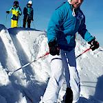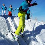 Der Küchendienst durfte uns morgens wecken. Dies funktionierte mit einer Pfanne. Man haute mit einem Löffel auf die beulige Pfanne und keine drei Minuten später waren alle angezogen und hellwach. Nach einem kräftigen Frühstück zogen wir uns dann auf den Zimmern um und putzten Zähne. Unsere Skier waren schon seit dem ersten Tag im Frachtraum verladen. Leider hatten wir stürmisches Wetter am Montag und Dienstag. Was aber überhaupt nichts machte, denn ab Mittwoch konnten wir das überwältigende Panorama sehen. Mit der strahlenden Sonne im Rücken.