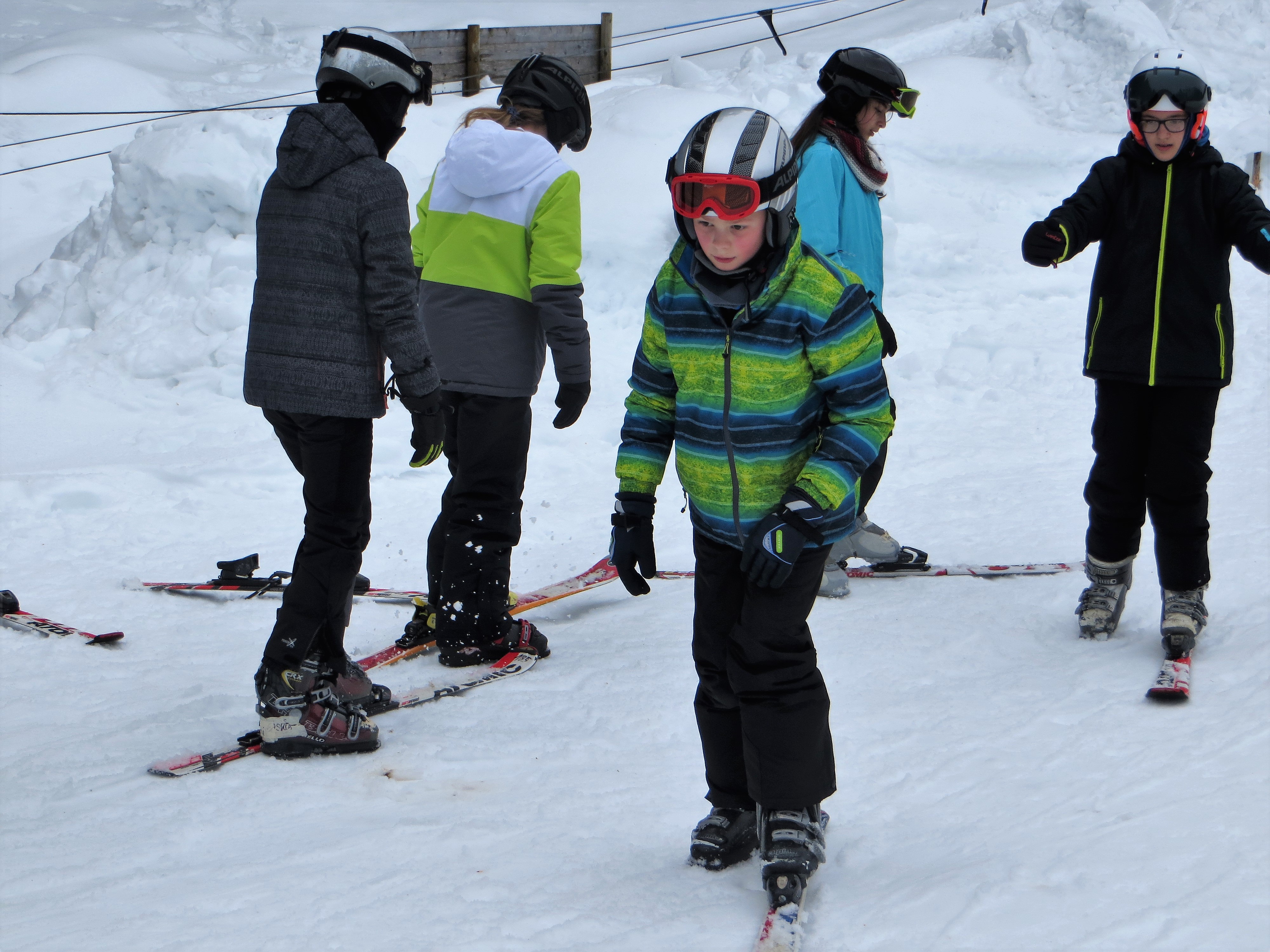 Es war am Sonntag, als ich das erste Mal Skifahren durfte. Ich war sehr aufgeregt, denn ich wusste ja nicht, wie es sich anfühlte. Als wir also die Skier und die Skischuhe ausgeliehen hatten, die davor in unsere richtigen Schuhgrößen eingestellt wurden, machten wir uns auf den Weg zu dem kleinen Berg. Dort durften wir, als kleine Einführung, endlich üben. Unsere Lehrer zeigten uns, wie man die Skier an- und auszieht. Das war der erste Schritt, den man gut beherrschen musste, sonst machte Skifahren keinen Sinn.