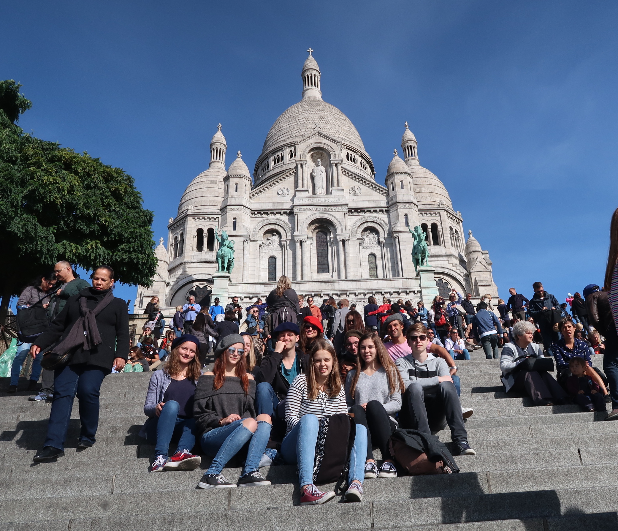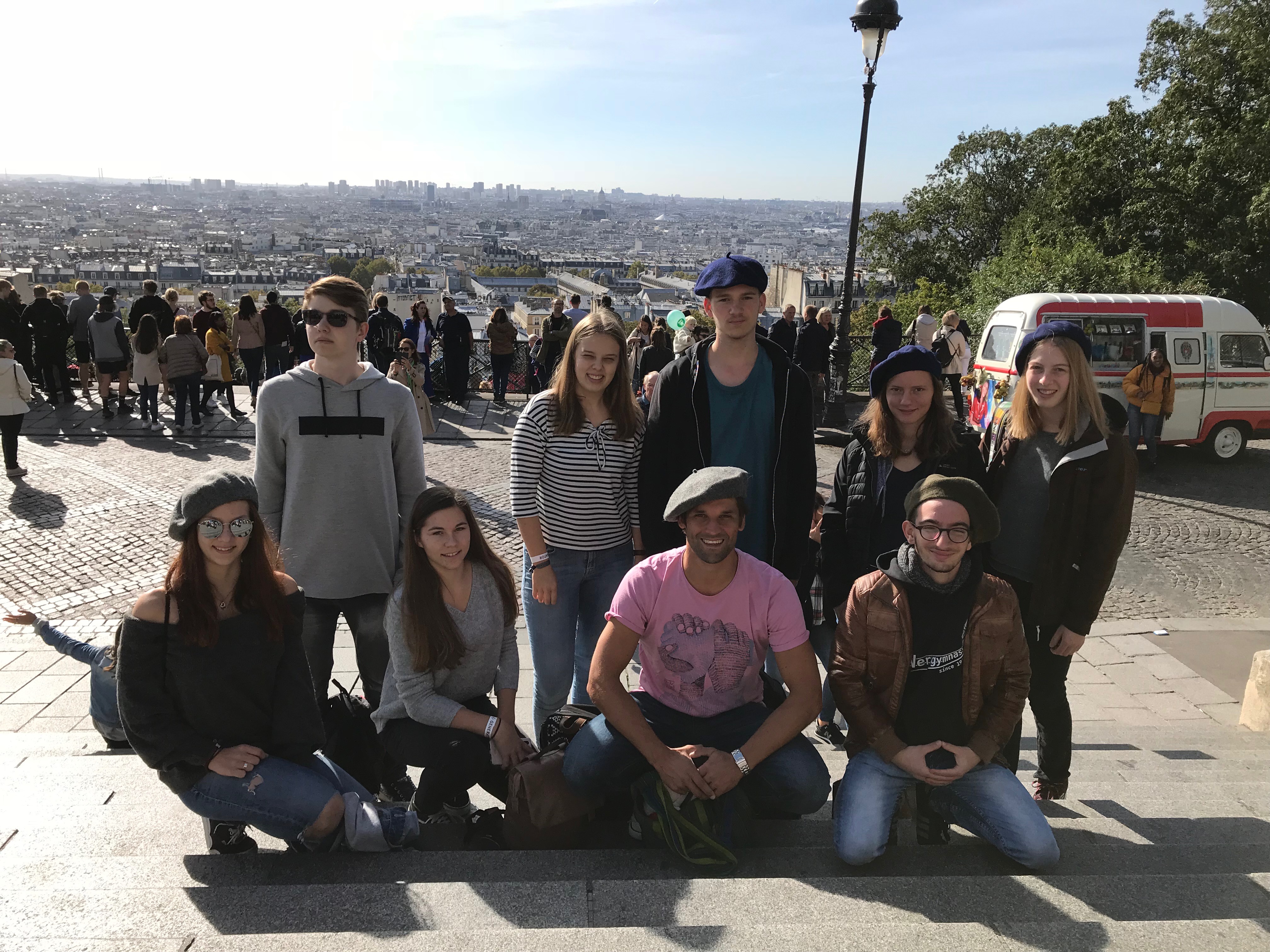 Im Herbst 2018 machte sich der kleine, aber feine Französischkurs der Jahrgangsstufe 2 des Werkgymnasiums auf in die französische Hauptstadt und verbrachte dort eine knappe Woche mit einem abwechslungsreichen Programm. Untergebracht waren die Reisenden in einem Hostel im 10. Arrondissement, dessen Highlight zweifelsohne der atemberaubende Blick von der Dachterrasse auf das Künstlerviertel Montmartre und die Basilika Sacré Coeur war.