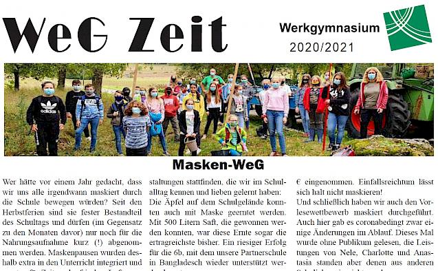 Frau Hoffmann und Frau Heinzelmann haben es sich bereits zum zweiten Mal im Zeitraum der anhaltenden Pandemie nicht nehmen lassen, eine neue Auflage unserer beliebten Schulzeitung "WeG Zeit" herauszubringen. Auch wenn der AG-Betrieb nicht so laufen kann, wie gewohnt, versorgt die Redaktion die Schulgemeinschaft mit jüngsten, aktuellen Informationen. Die Zeitung März 2021 steht hier zum Download zur Verfügung.