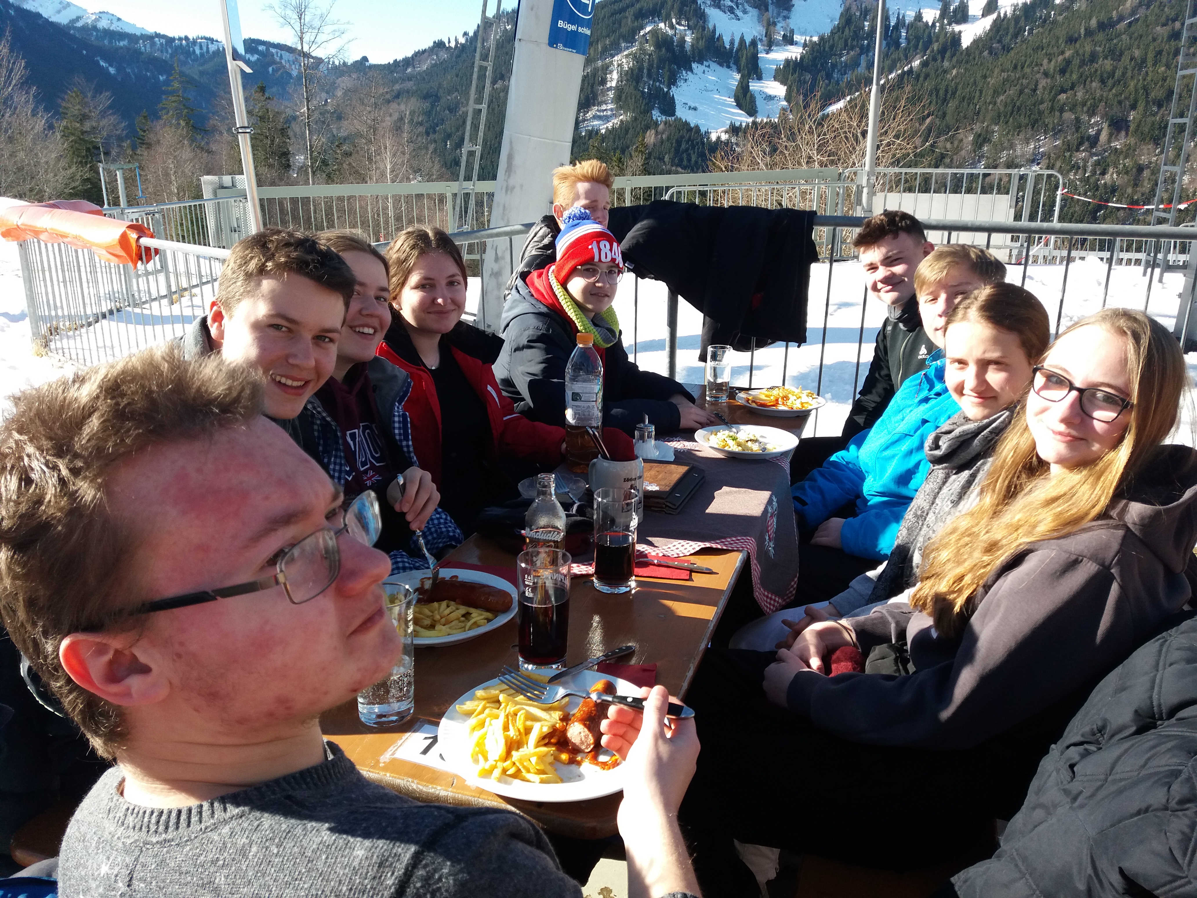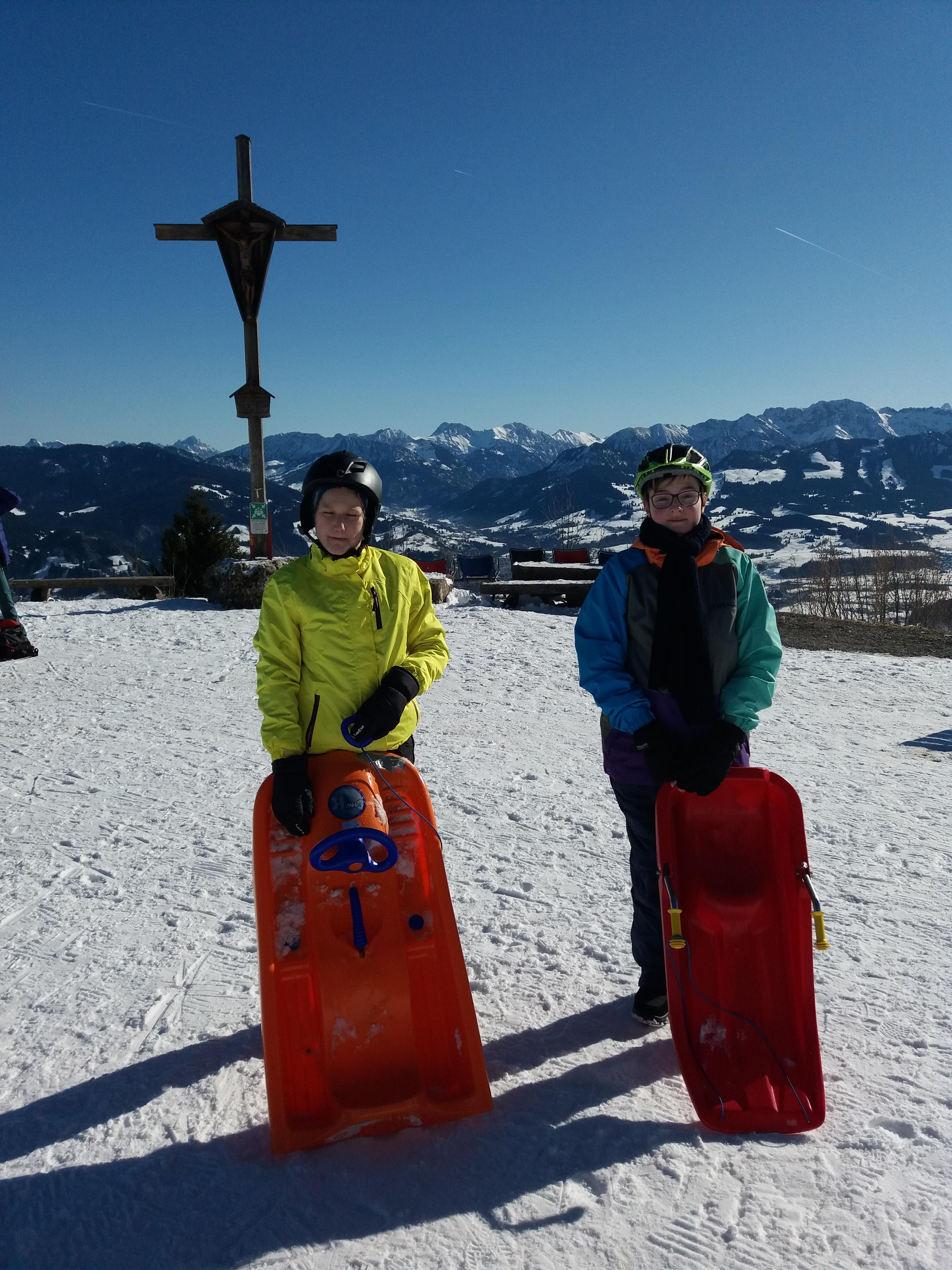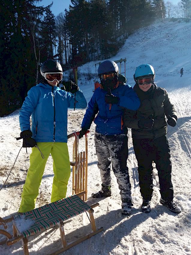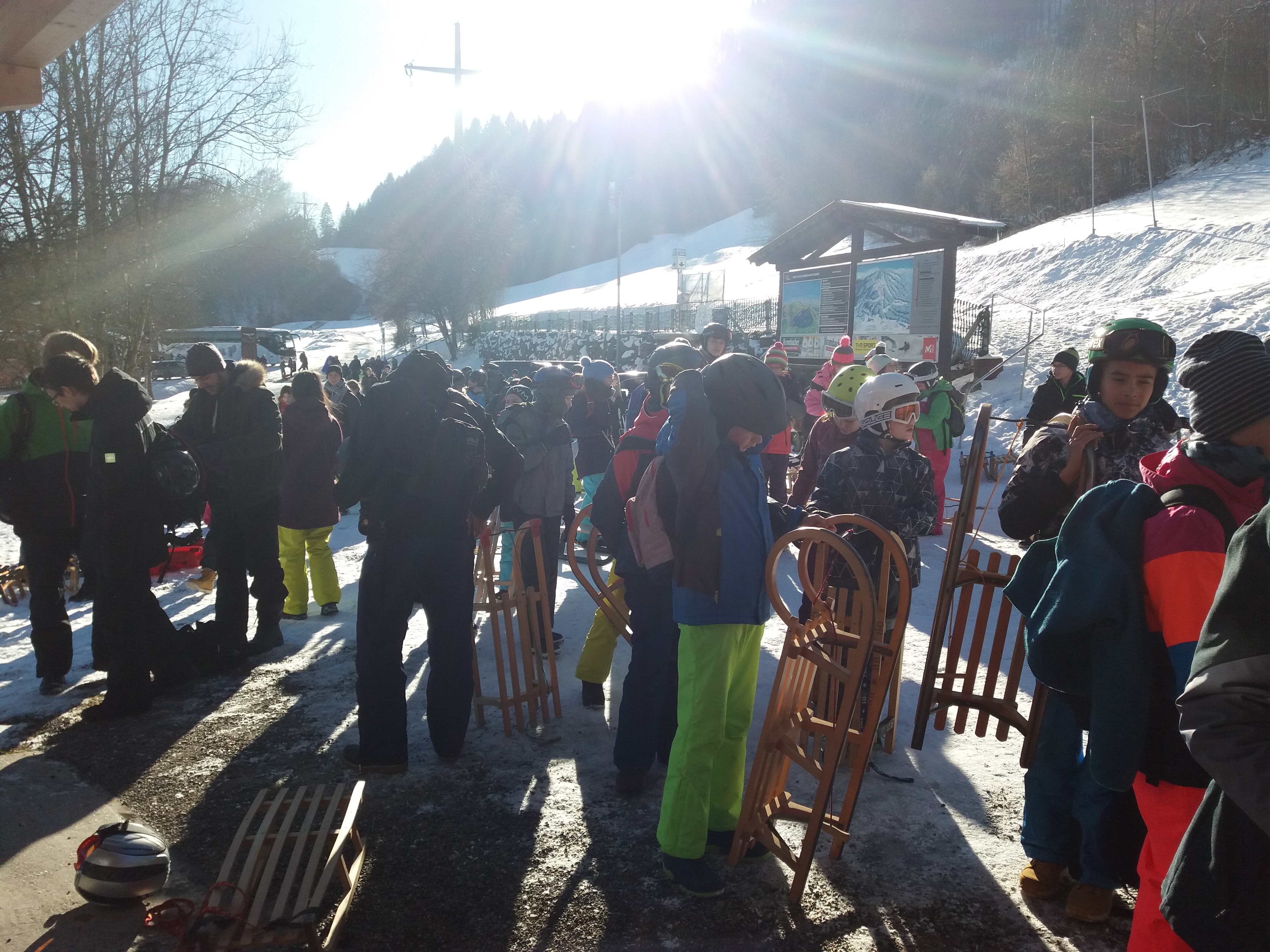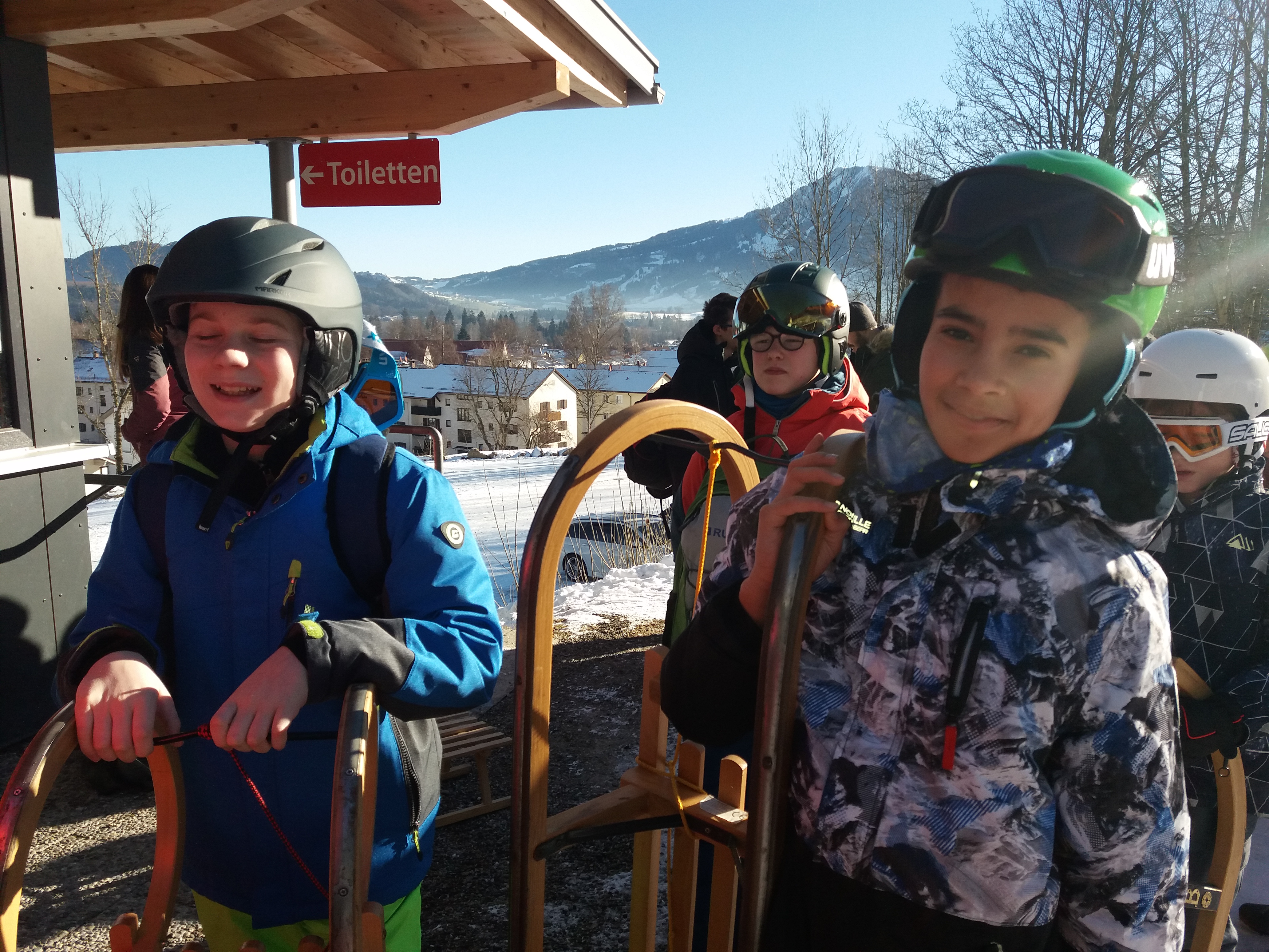 Während die Wetterlage am Fellhorn für die Skifahrer sehr stabil war und die Eislaufhalle in Sonthofen wetterunabhängig ist, musste man für die Ausfahrt nach Immenstadt bereits nach Alternativen Ausschau halten. Glücklicherweise war dann die Rodelpiste am Mittag - dem Hausberg der Immenstädter - geöffnet und am Ende durften die Schülerinnen und Schüler sogar die oftmals gesperrte Talabfahrt mit ihren Bobs und Schlitten zur allgemeinen Freude ausprobieren.