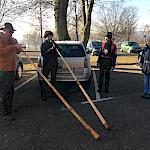Zur Begrüßung auf dem Parkplatz des Waldfriedhofs gab es eine Kostprobe auf dem „Albhorn“ der Albschäfer, dem „Handy“, das die Schafhirten schon im 15. Jahrhundert benutzten, wobei unsere Musikpädagogin Frau Weber ihn kräftig unterstützen durfte.