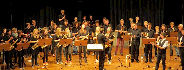 Am Sonntag, 6. Mai 2018, lädt die „WeG-Jazzband“ um 19.00 Uhr zu ihrem Konzert „Bigband-Sounds am Werkgymnasium“ ein. Zusammen mit dem etablierten Jazzmusiker und ehemaligen Werkgymnasiasten Andi Schmid am Bass und der Band „Brassons“, ebenfalls vorwiegend Musiker des Werkgymnasiums, wird die „WeG-Jazzband“ unter Leitung von Joachim Kocsis ein überaus abwechslungsreiches Programm darbieten. In den vorausgegangenen Probentagen in Aalen haben die Schülerinnen und Schülern Standards der verschiedensten Jazzepochen erarbeitet. Andreas Schmid, der bei den Probentagen ebenfalls mitgewirkt hat, wird dabei als Moderator und Bassist mit dabei sein. Ein buntes Jazzkonzert am Werkgymnasium, auf das man sich heute schon freuen darf. Der Eintritt beträgt 8.- € für Erwachsene und 4.- € für Schüler.