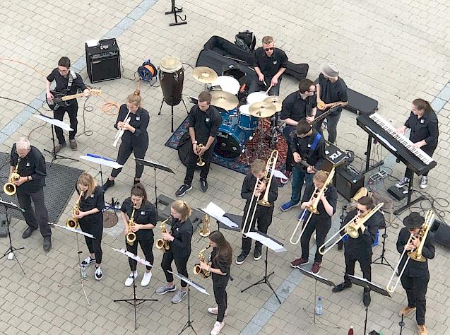 Immer wieder neue Wege geht die "WeG-Jazzband": Im Mai 2022 führt das Ensemble die Probentage im JUFA Sporthotel Wangen im Allgäu durch und bereitet sich dort auf eine Platzkonzert Tournee vor. So werden die Schülerinnen und Schüler mit ihrem Leiter Joachim Kocsis am Freitag, 13. Mai 2022, um 10.00 Uhr auf dem Postplatz in Wangen i. A. vor dem historischen Rathaus und um 16.00 Uhr auf der Seepromenade am Seehafen Lindau vor idyllischem Bodenseepanorama auftreten. Nach dem Transfer und einer Übernachtung in der Graf-Zeppelin Jugendherberge Friedrichshafen ist das Schüerensemble am Samstag eingeladen, um 11.00 Uhr auf dem dortigen Schlemmermarkt aufzutreten. Der Auftritt am Sonntag, 15. Mai 2022, um 14.30 Uhr auf dem Eugen-Jaekle-Platz vor dem Modehaus Steingass bildet quasi als Heimspiel den Abschluss der Tournee. Als Sängerin wirkt in bewährter Manier Ricarda Rickert mit, die das abwechslungsreiche Programm der Jazzband ergänzt. So darf man auch dieses Mal wieder gespannt darauf sein, was die Band musikalisch zu bieten hat.