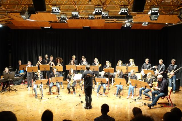 Zwei Schulen – Zwei Jazz-Ensembles unter einem Motto: „Come Together“ hieß es am 10.04. 2016 beim zweiten Begegnungskonzert in der Kulturmulde des Werkgymnasiums. Nachdem die HG-BigBänd und die WeG-Jazzband bereits einen gemeinsamen Jazz-Workshop absolviert haben, luden die beiden Bandleiter Joachim Kocsis und Ralf Müller nun zu einem Abend voller musikalischer Höhepunkte ein. Die hervorragende Stimmung in der gut gefüllten Kulturmulde entsprang zum einen der guten Musik und der guten Laune aller Beteiligten, zum anderen aber auch der beinahe euphorisch wirkenden Auftritte beider Köpfe der Bands. Jazz, Swing oder Blues: für jedes Ohr war etwas dabei. Sowohl Klassiker wie „Can’t buy me love“ von den Beatles als auch modernere Stücke wie Kelly Clarkson’s „Because of you“, das sogar gesanglich unterstützt wurde, wurden von den beiden großartigen Ensembles interpretiert. Einzig und allein die Verabschiedung des jahrelangen Jazzband Mitglieds Peter Bareis sorgte für einen „tränenreichen“ Augenblick, im sonst so fröhlichen Abend. Ganz nach dem Motto „Come Together“ rundete das gleichnamige Stück den erfolgreich gestalteten Abend ab. Die nun stattfindende gemeinsame Berlinreise vom 9.-13. Mai stellt einen weiteren Höhepunkt für die jungen Musizierenden dar. Dies alles lässt auf ein weiteres, drittes Konzert im kommenden Jahr hoffen.