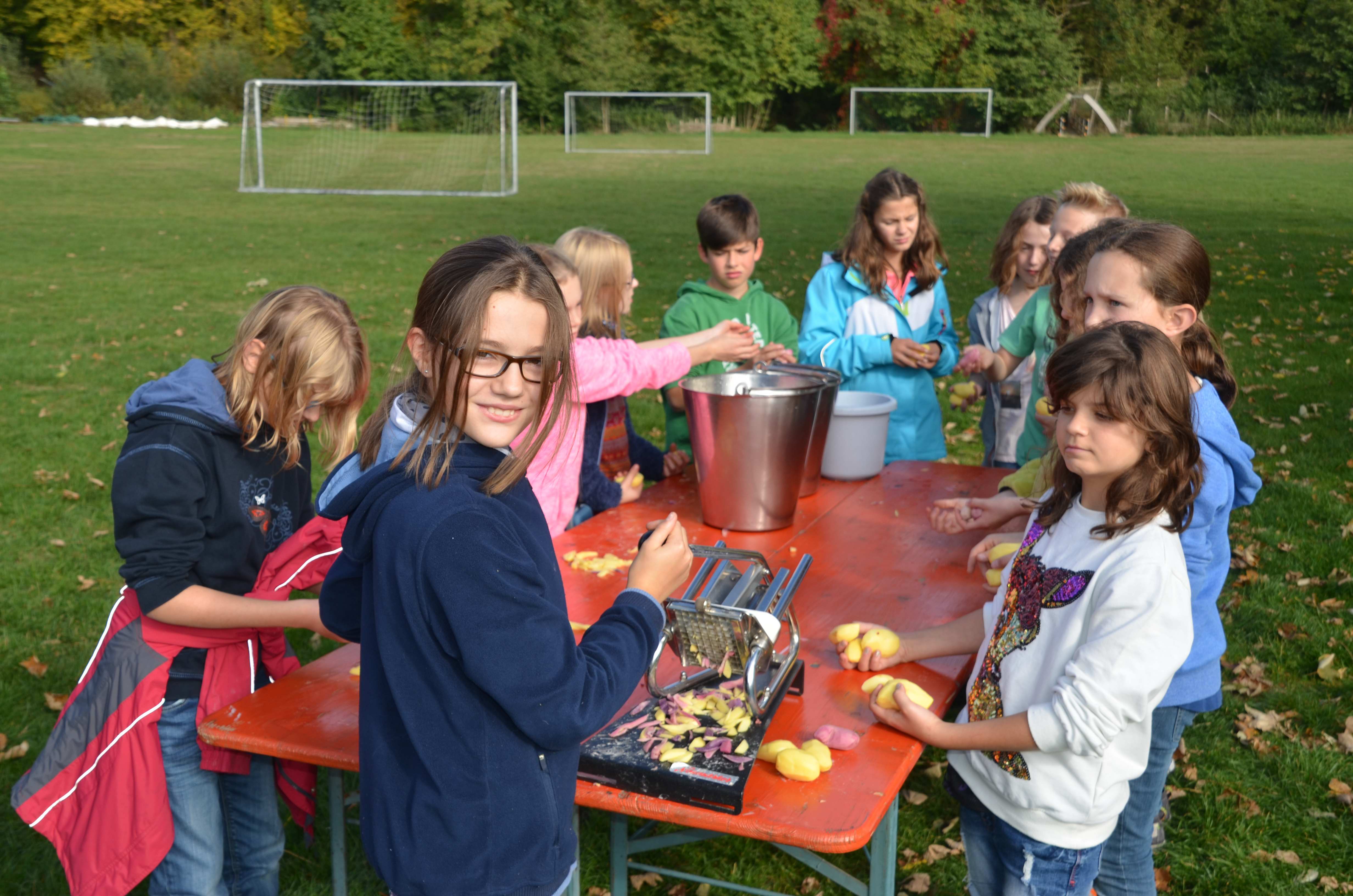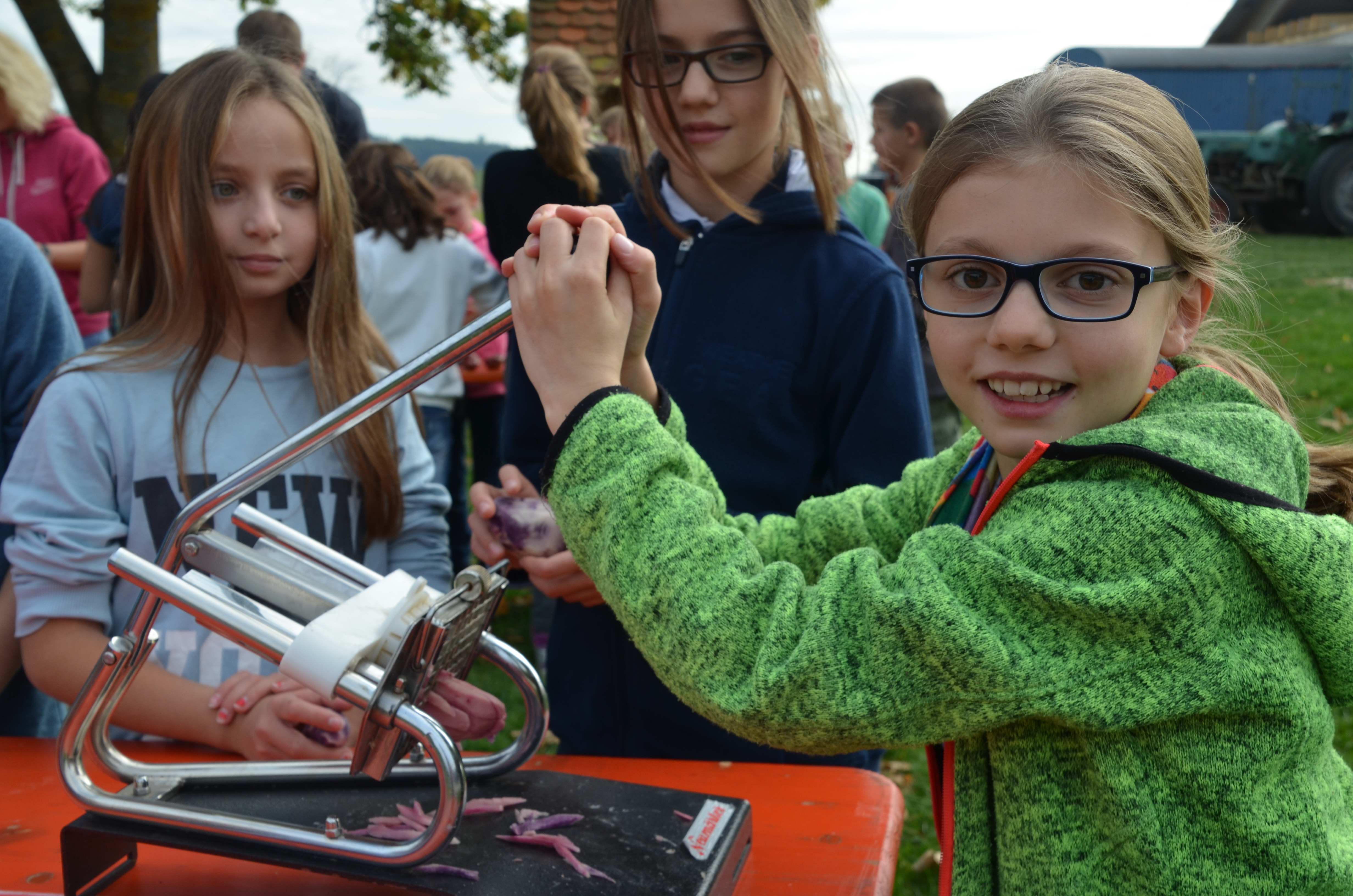 Am ersten Tag erhielten die Schülerinnen und Schüler eine Hofführung, wo sie allerlei Wissenswertes über die Tiere und die landwirtschaftliche Arbeit, die damit verbunden ist, erfuhren. Danach widmeten sie sich dem Kartoffelprojekt, bei dem die meisten zum ersten Mal Pommes schnitzten, die es dann zum Abendessen gab. Ein Lagerfeuer mit einer anschließenden – für manche durchaus gruseligen – Nachtwanderung rundeten den ersten Tag ab.