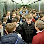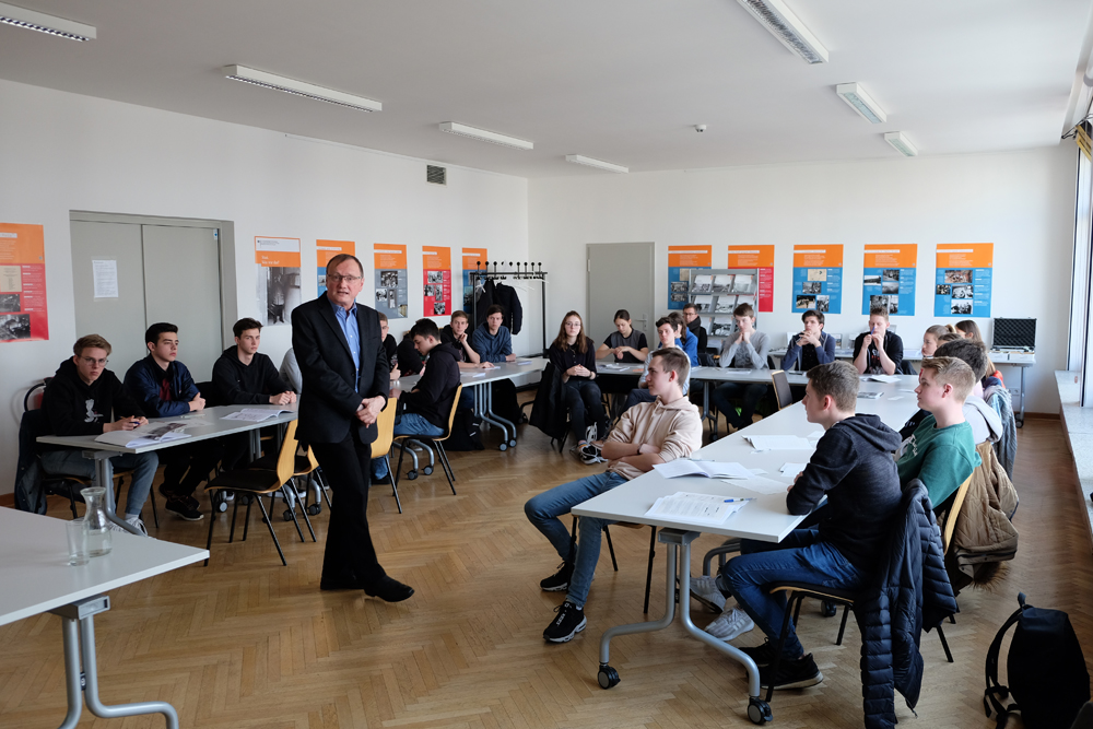Am Donnerstag fuhren wir zur ehemaligen Zentrale des Ministeriums für Staatssicherheit. Dort wurden wir von Herrn Dr. Löhn in Empfang genommen. Nachdem dieser uns allgemeine Infos zur Stasi und der Geschichte der DDR gegeben hatte, durften wir selber mit echten Stasiakten arbeiten. Hierfür wurden wir in Dreiergruppen eingeteilt, welche sich jeweils mit einer Akte und einer dazugehörigen Aufgabenstellung beschäftigt haben. Anschließend wurden die Ergebnisse für alle vorgestellt. Dabei wurden Fragen, wie zum Beispiel, ob es gerechtfertigt sei, als Grenzsoldat auf Jugendliche zu schießen, beantwortet. Danach wurden wir von Dr. Löhn durch das Museum im selben Gebäude geführt. Dabei zeigte er uns unter anderem Verstecke für Abhörgeräte. Im Museum gab es einen Paternosteraufzug in dem wir fahren durften. Zum Schluss führte uns Herr Dr. Löhn durch das Archiv, in dem die Stasiakten gelagert werden. Nach diesem Programmpunkt hatten wir bis zum Abend Freizeit, die wir alle sehr unterschiedlich nutzten. Den Tag ließen wir mit einem gemeinsamen Kinobesuch ausklingen