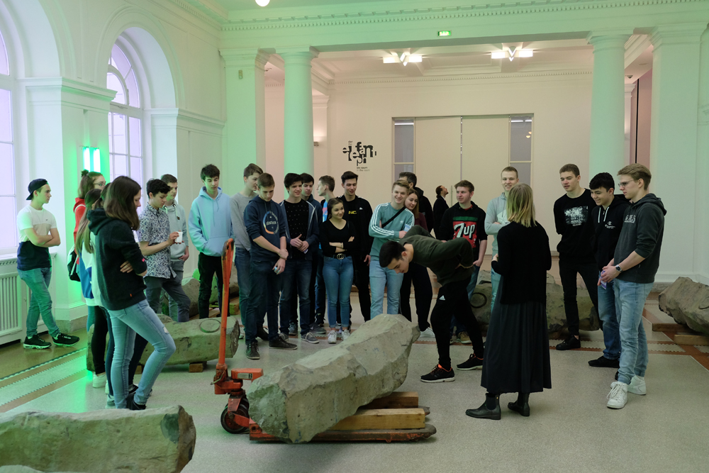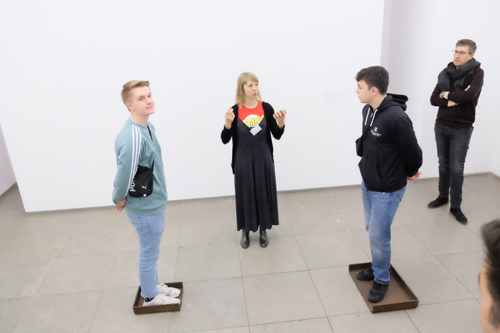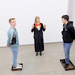 Wir sind nun aber nicht einfach durchgelaufen und haben uns erzählen lassen, warum dies oder das ein Kunstwerk ist. Nein, wir haben eine Art Spiel gespielt: „Ist das Kunst, oder kann das weg?“. Eine sehr interessante Art und Weise, sich auch kritischer mit zunächst skurrilen Dingen auseinanderzusetzen. Zum Beispiel standen in einem Raum 20 Steine mit jeweils einem Kreis oder, das witzigste, ein unbenutzter Staubsauger auf einem leuchtenden Podest.