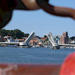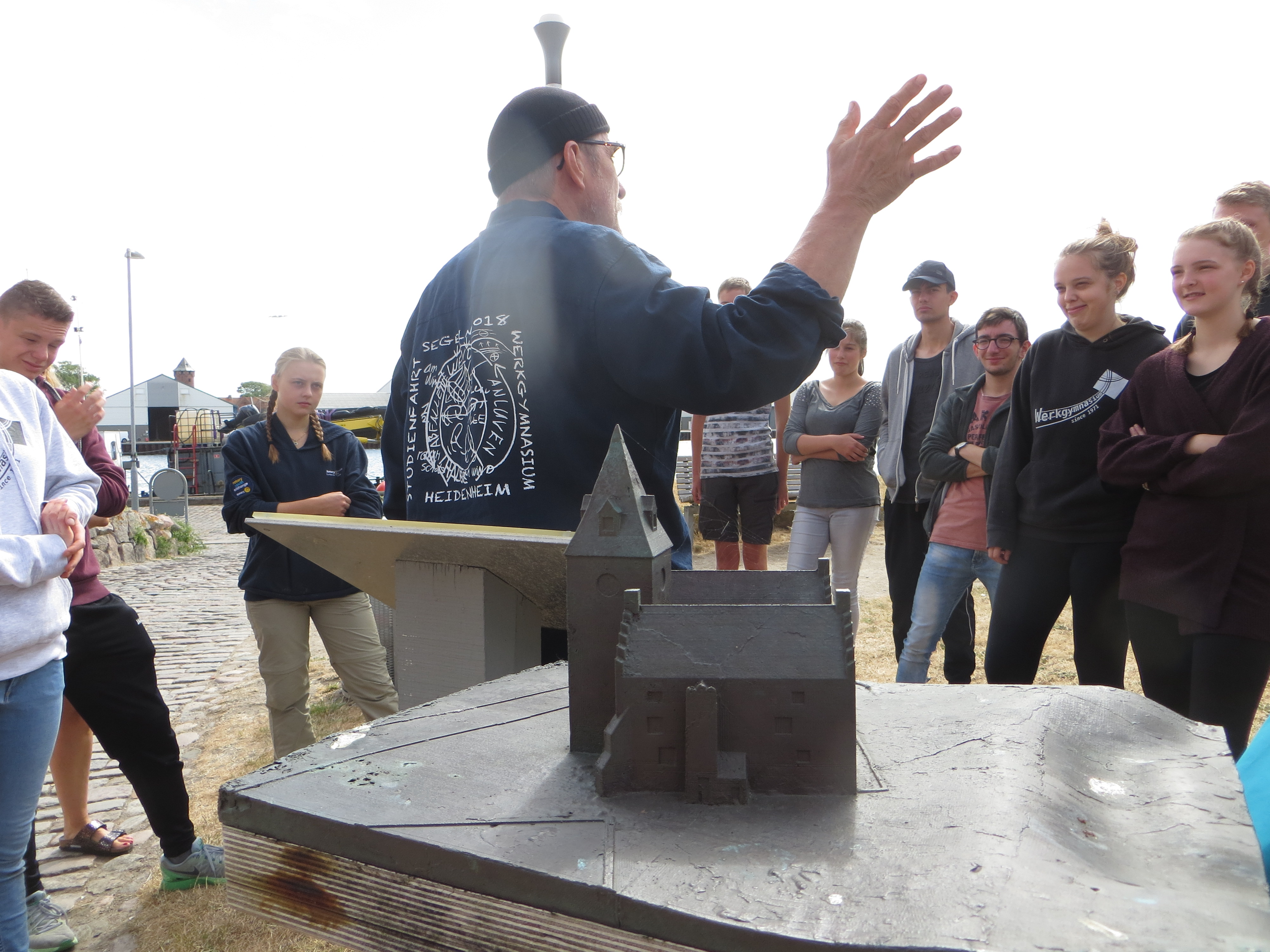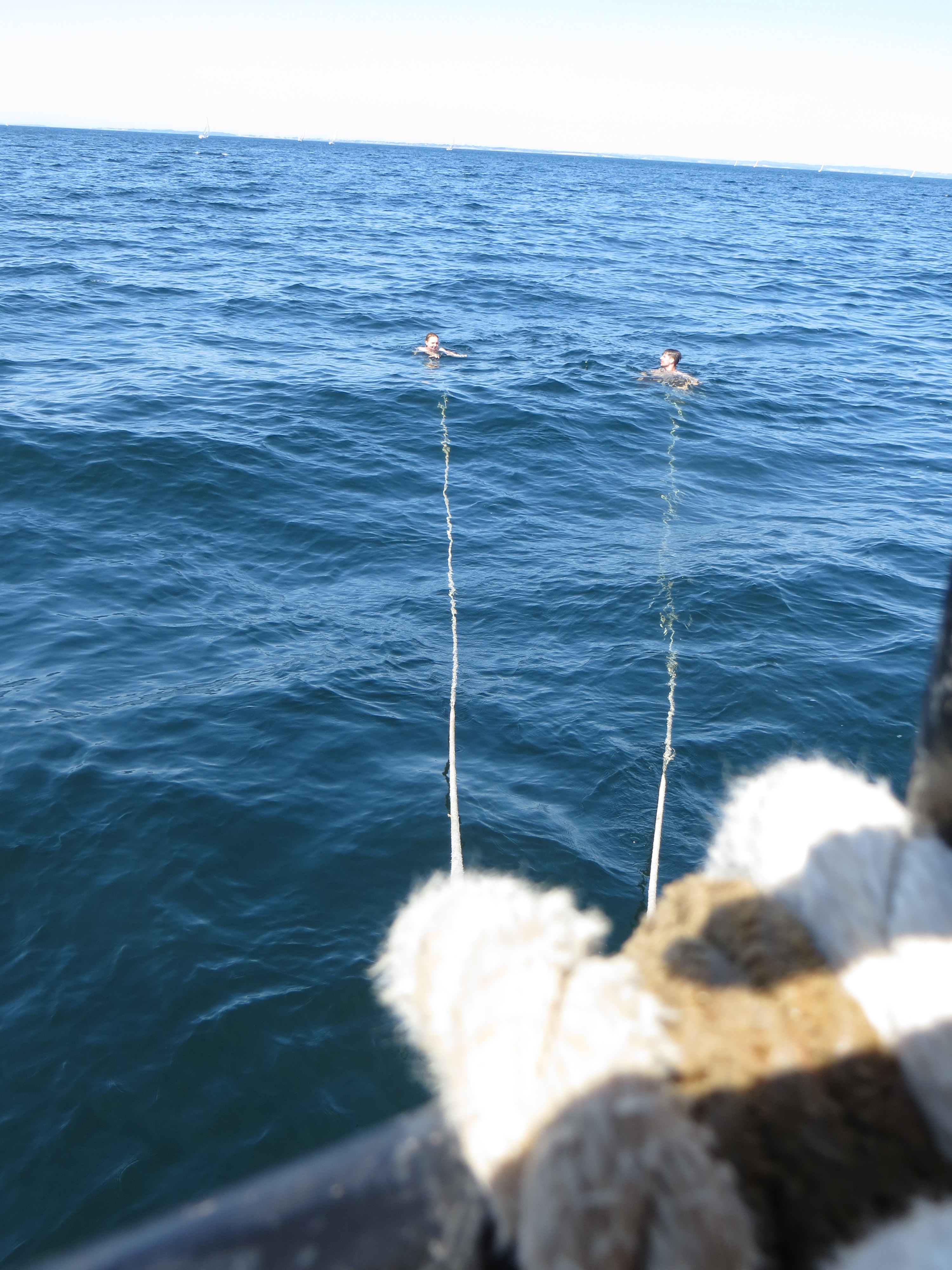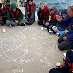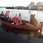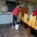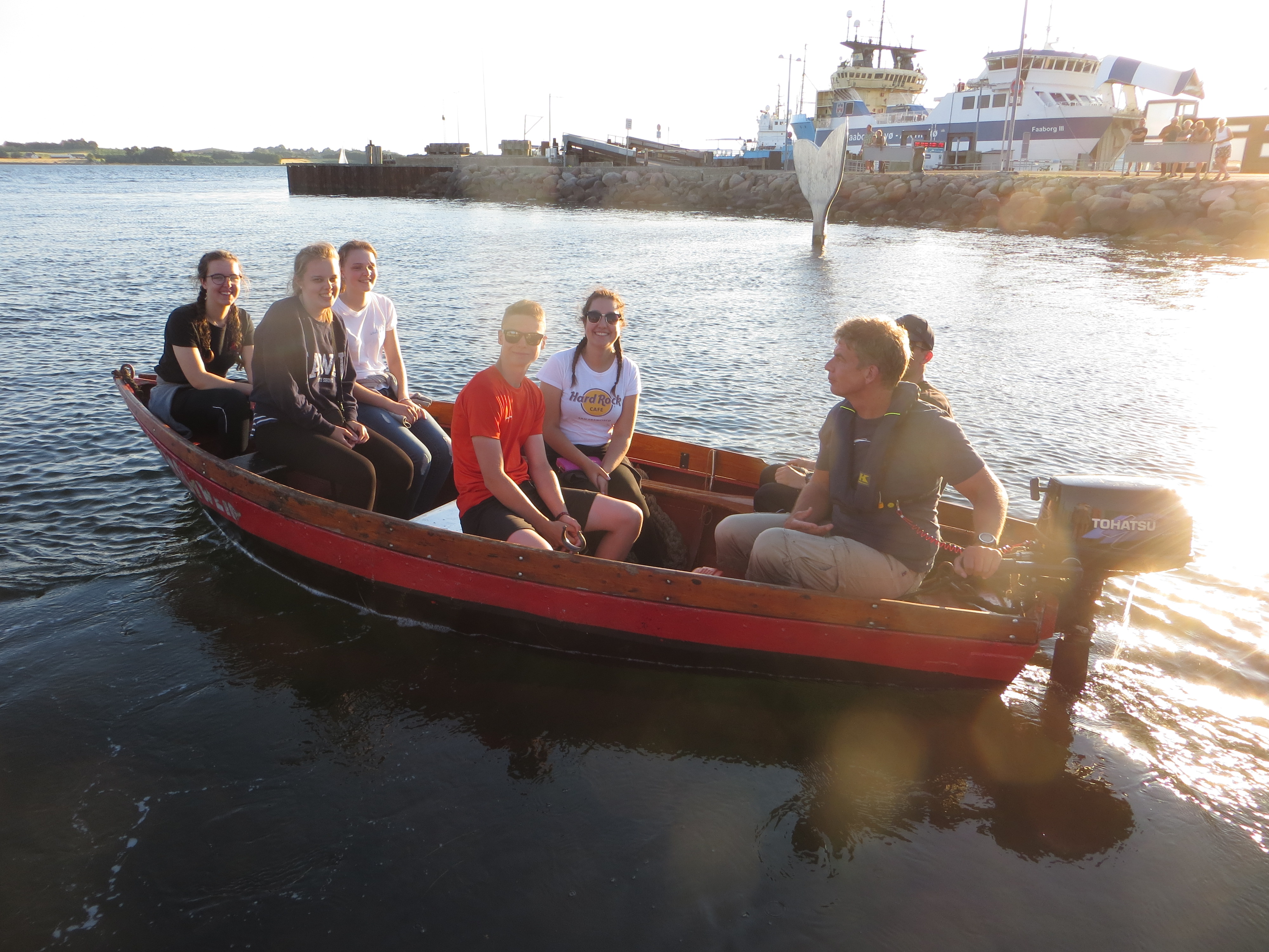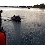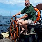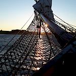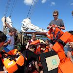 Kurz darauf: Leinen los, und drei Gruppen werden in ihre Segel eingewiesen. Das Schiff verlässt den Fluss. Wir setzen unter genauen Anweisungen der Stammcrew zum ersten Mal die Segel. Am Anfang der Reise war für uns nicht absehbar, dass die Befolgung des Kommandos "Innen und Außenklüver setzen" innerhalb kürzester Zeit so routiniert ablaufen würde, dass die Stammcrew dies nicht mehr beaufsichtigen musste.