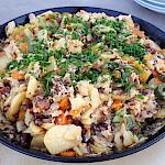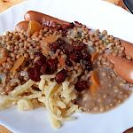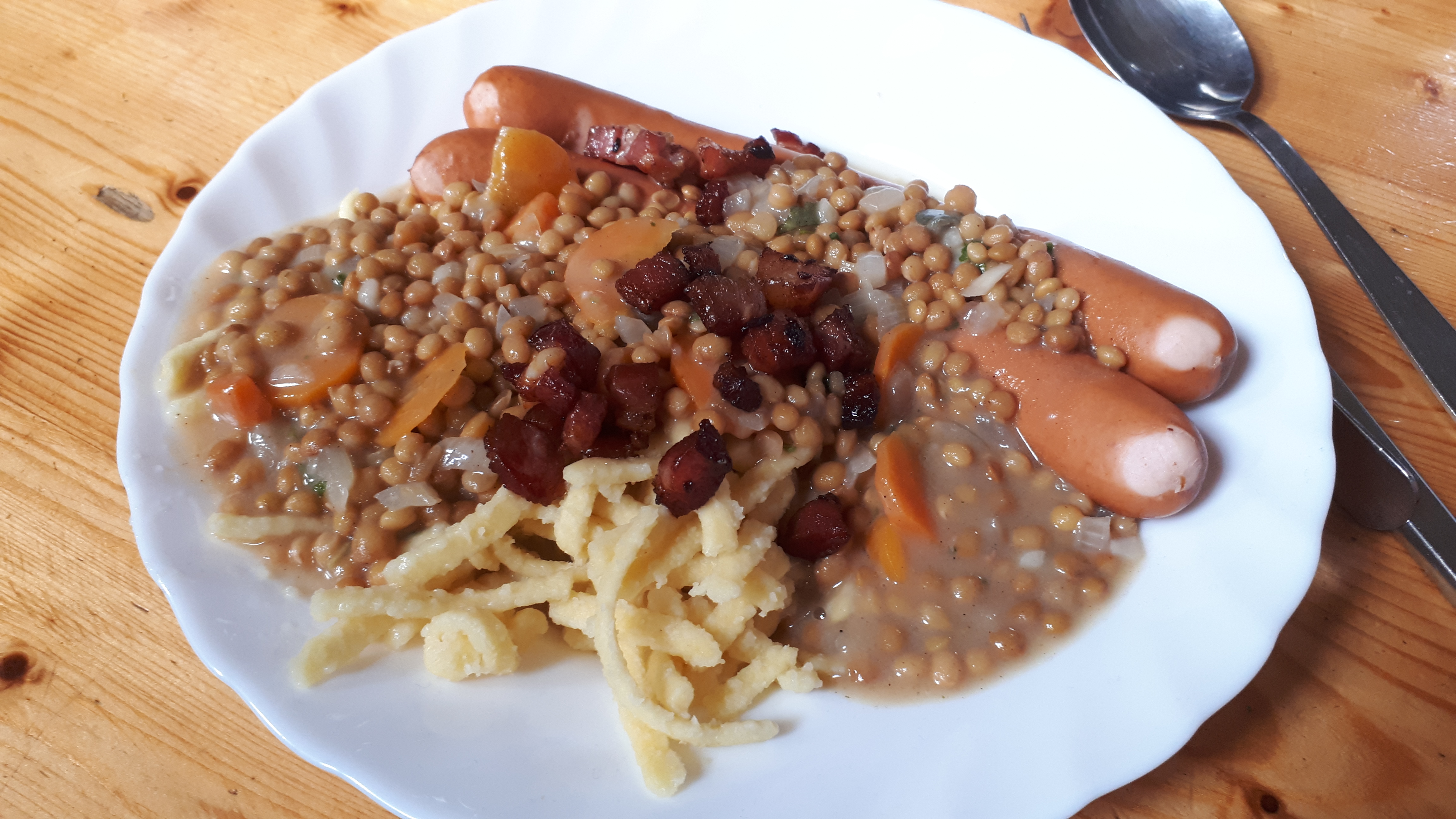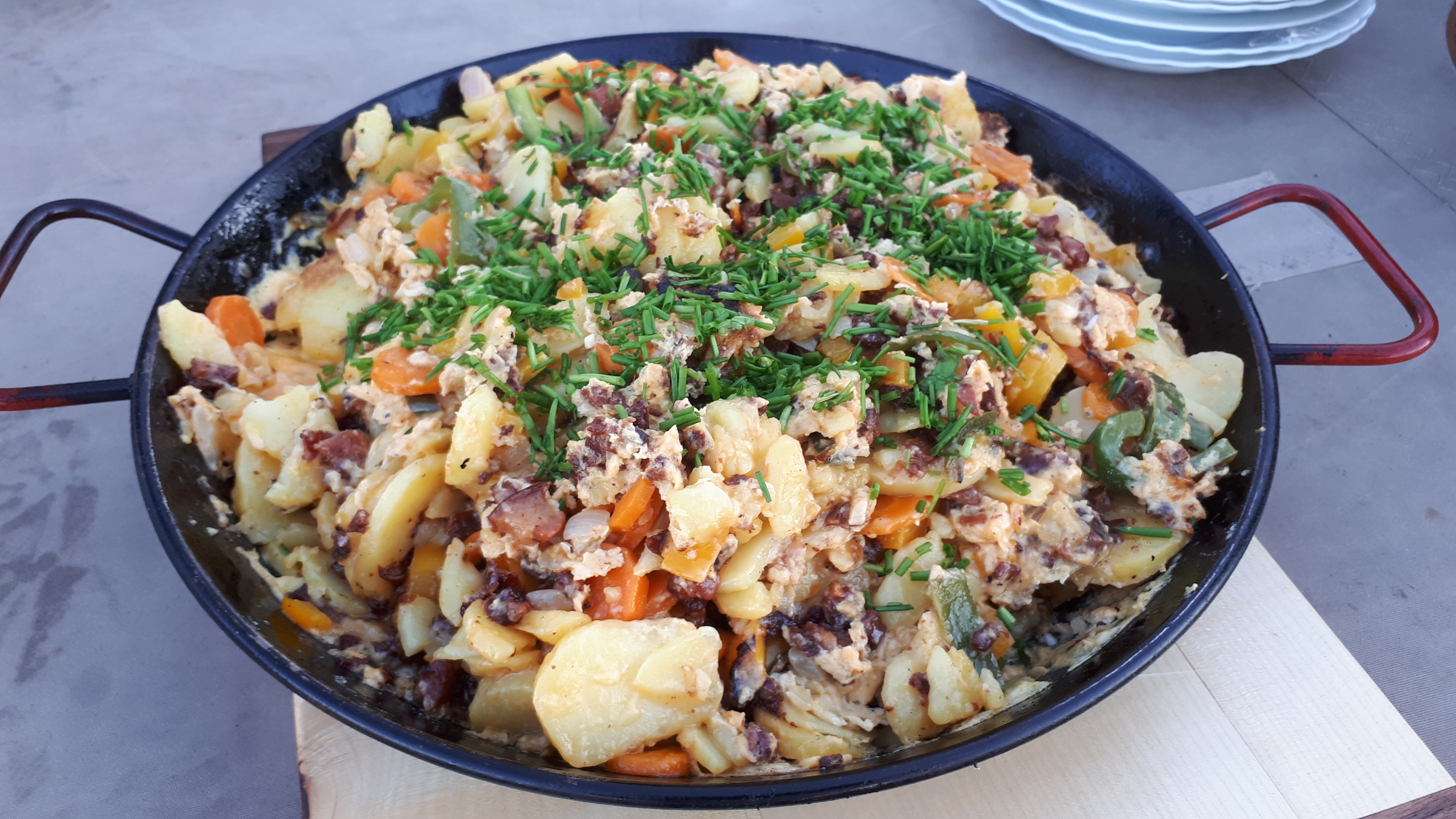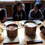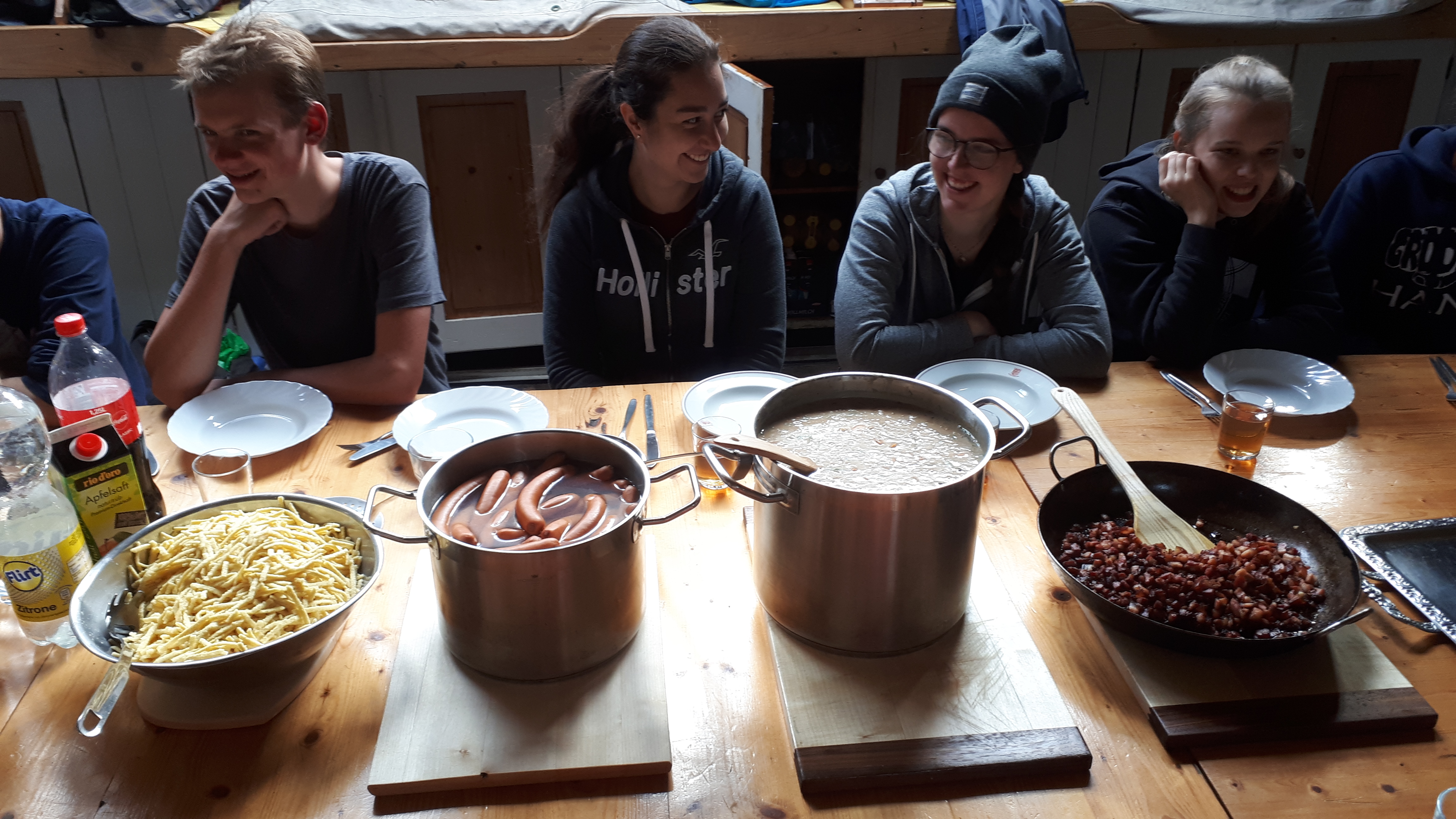 Die vorhin angesprochenen 50 Liter Milch haben wir nicht ganz aufgebraucht. Aber wir waren verdammt nah dran. Jeden Abend wurde in großen Töpfen gekocht, mal waren es sechs Packungen Spaghetti, mal waren es 40 Eier. Es war immer sehr simpel und meistens vegetarisch, aber immer lecker. Abends wurde Mehl gemahlen, um am nächsten Tag Brot zu backen.