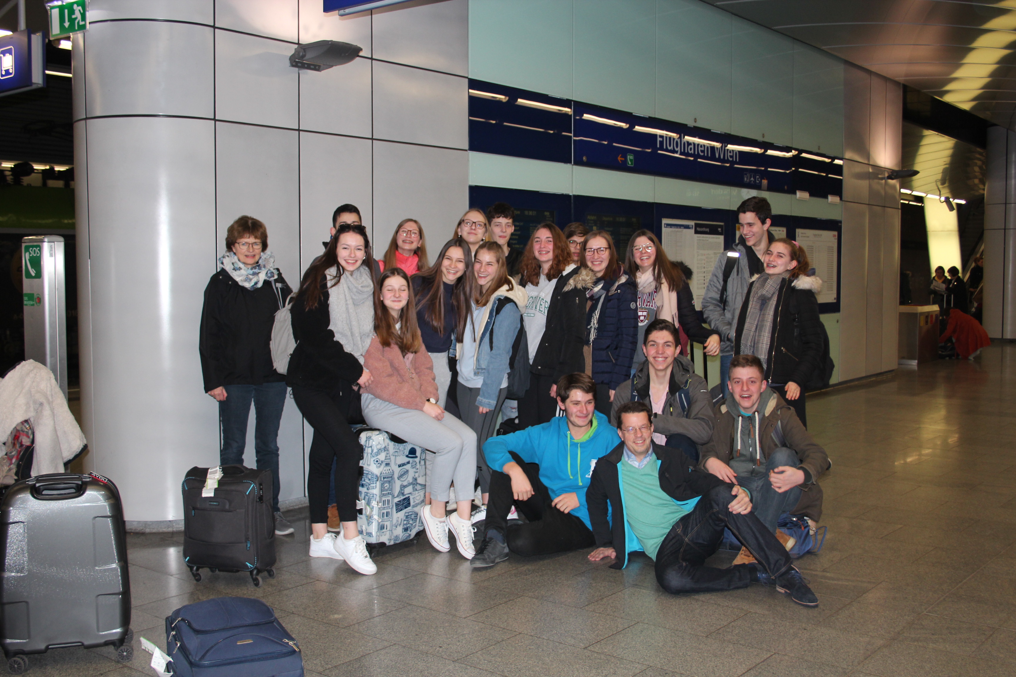 Unsere Studienfahrt nach Wien startete, indem wir uns um 8:45 Uhr am Bahnhof Heidenheim gemeinsam mit Herrn Kocsis und Frau Weber trafen. Um ca. 9 Uhr fuhren wir mit dem Zug nach Stuttgart. Nach etwa 90 Minuten mit der an diesem Tag überraschend pünktlichen Deutschen Bahn stiegen wir in Bad Canstatt in die S-Bahn Richtung Flughafen um.