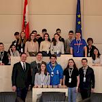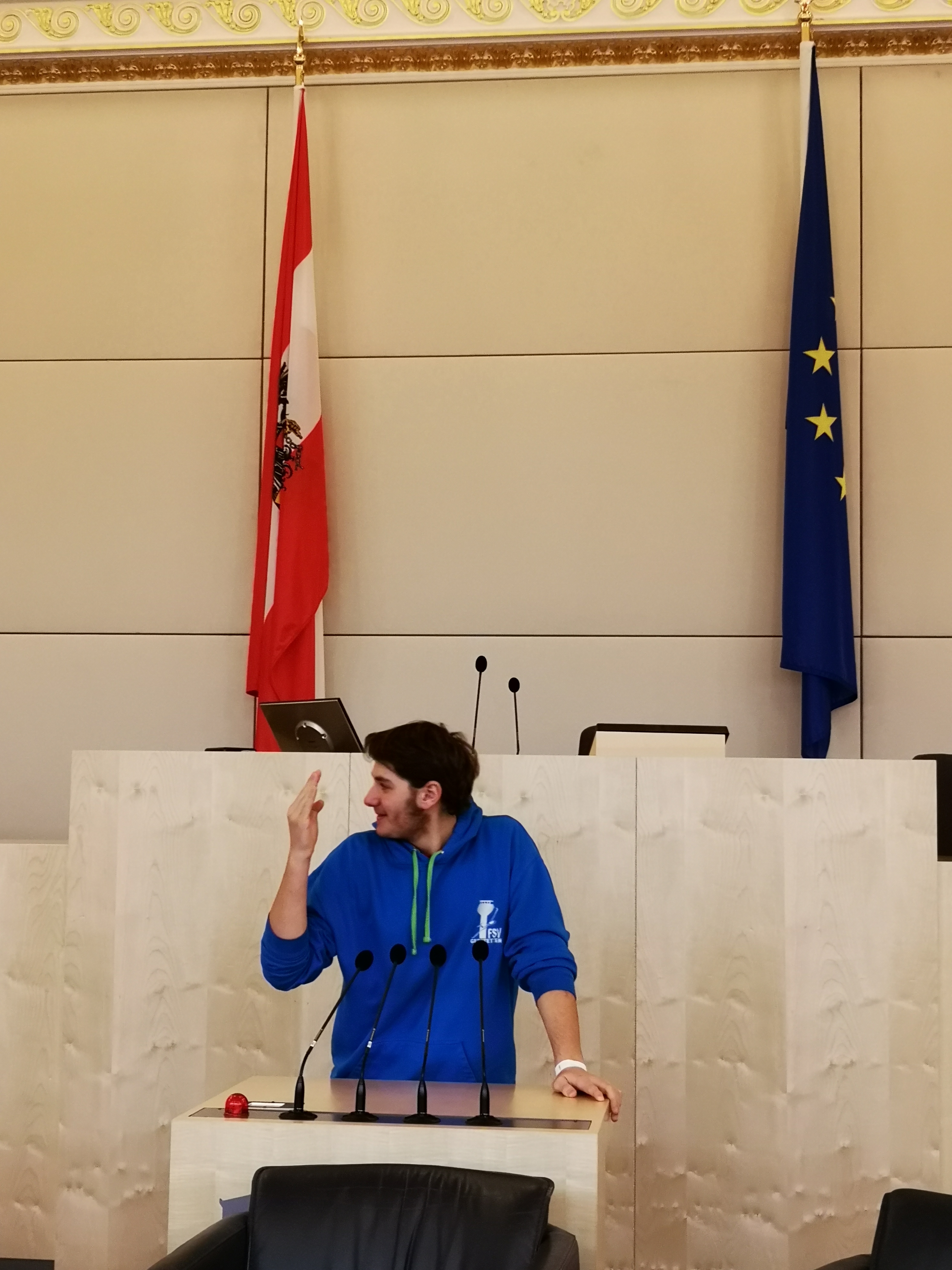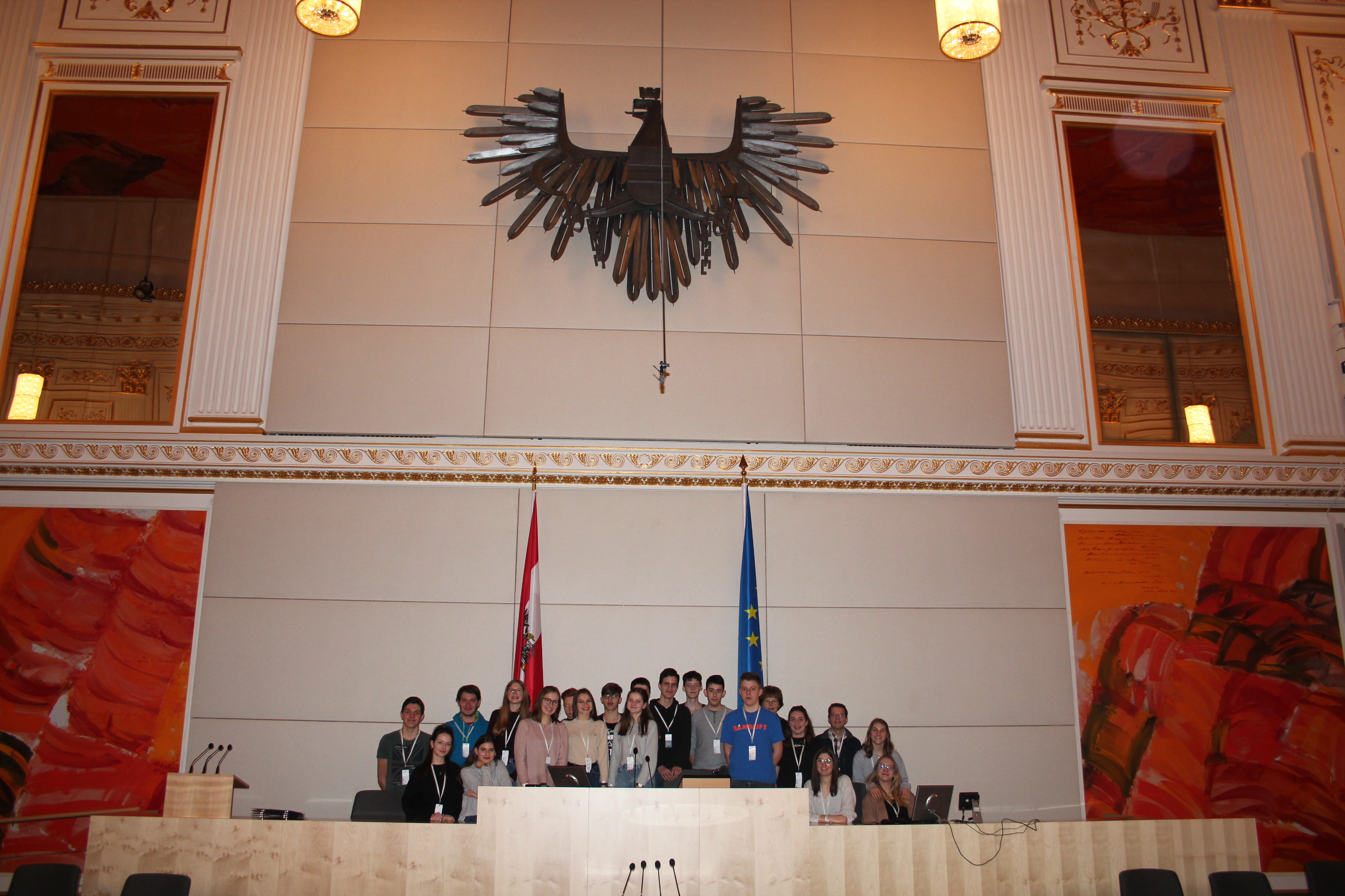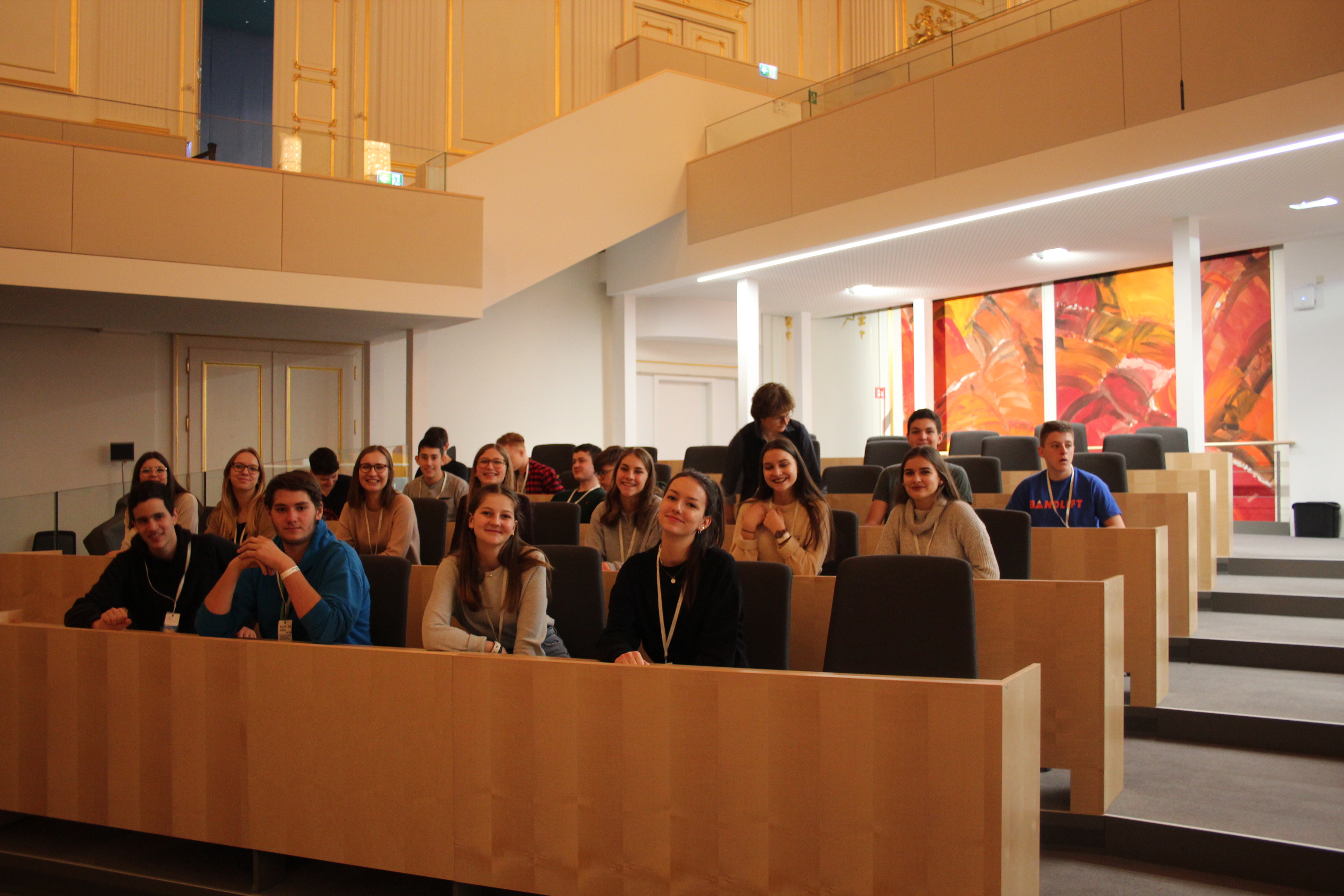 Am Dienstagmorgen wurden wir zuerst von unseren Weckern ungemein früh aus dem Schlaf gerissen. Nach einer Stärkung am Frühstücksbuffet begaben wir uns auf den Weg in den österreichischen Bundesrat, wo uns nach 320 Drogen- und Sprengstofftests und 500 unfreundlichen Gesichtern, die sehr viel Wert auf Sicherheit und korrekte Ausdruksweise legten, schließlich der Eintritt gewährt wurde. Aussagen wie "Was?" wurden korrigiert und wir lernten im Ausland sogar noch etwas über die deutsche Grammatik. Natürlich machten wir auch wahrlich positive Erfahrungen im Parlament: So wissen wir nun, welche Stühle man am besten verwenden sollte, um für optimale Gemütlichkeit zu sorgen.