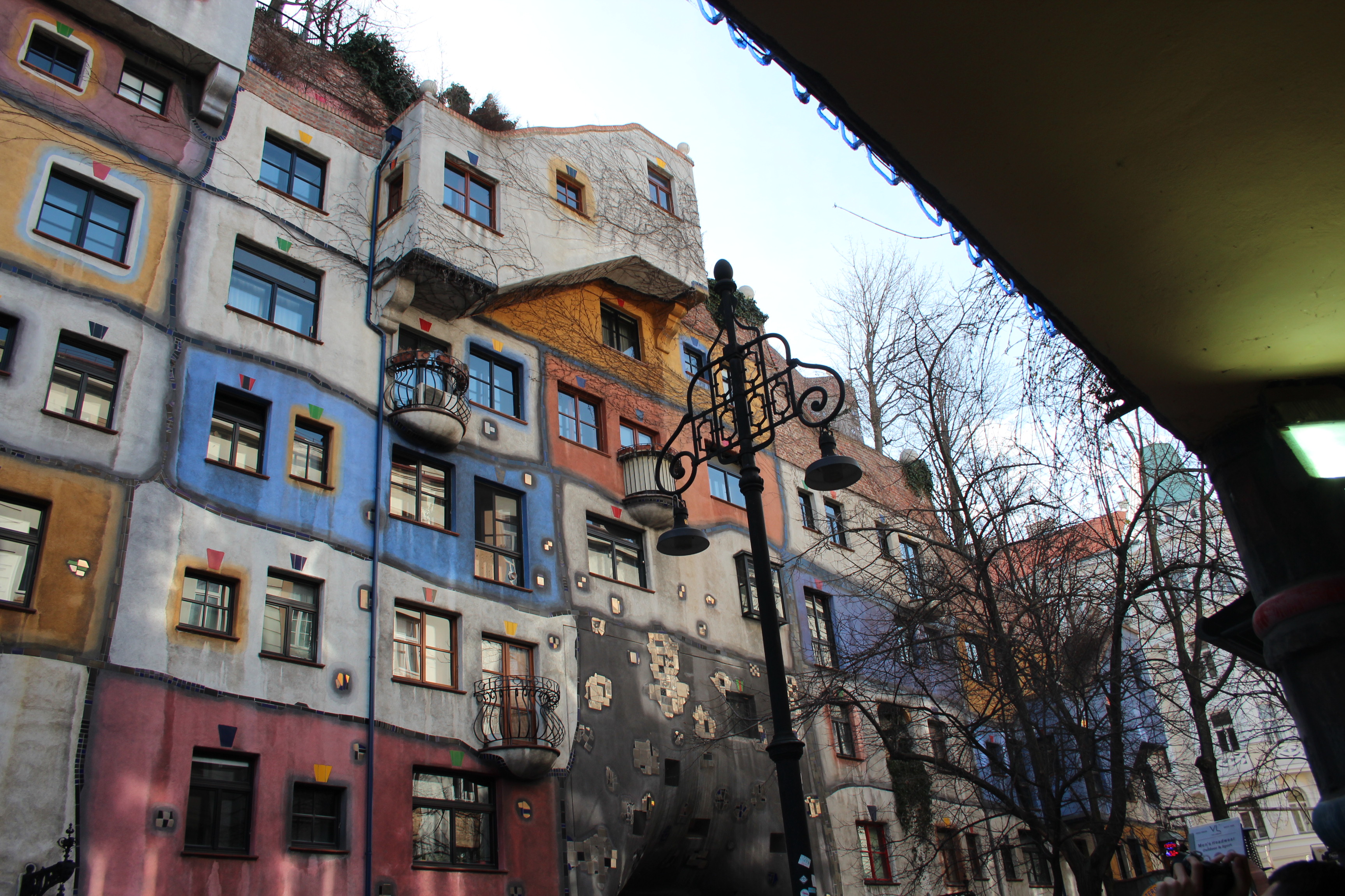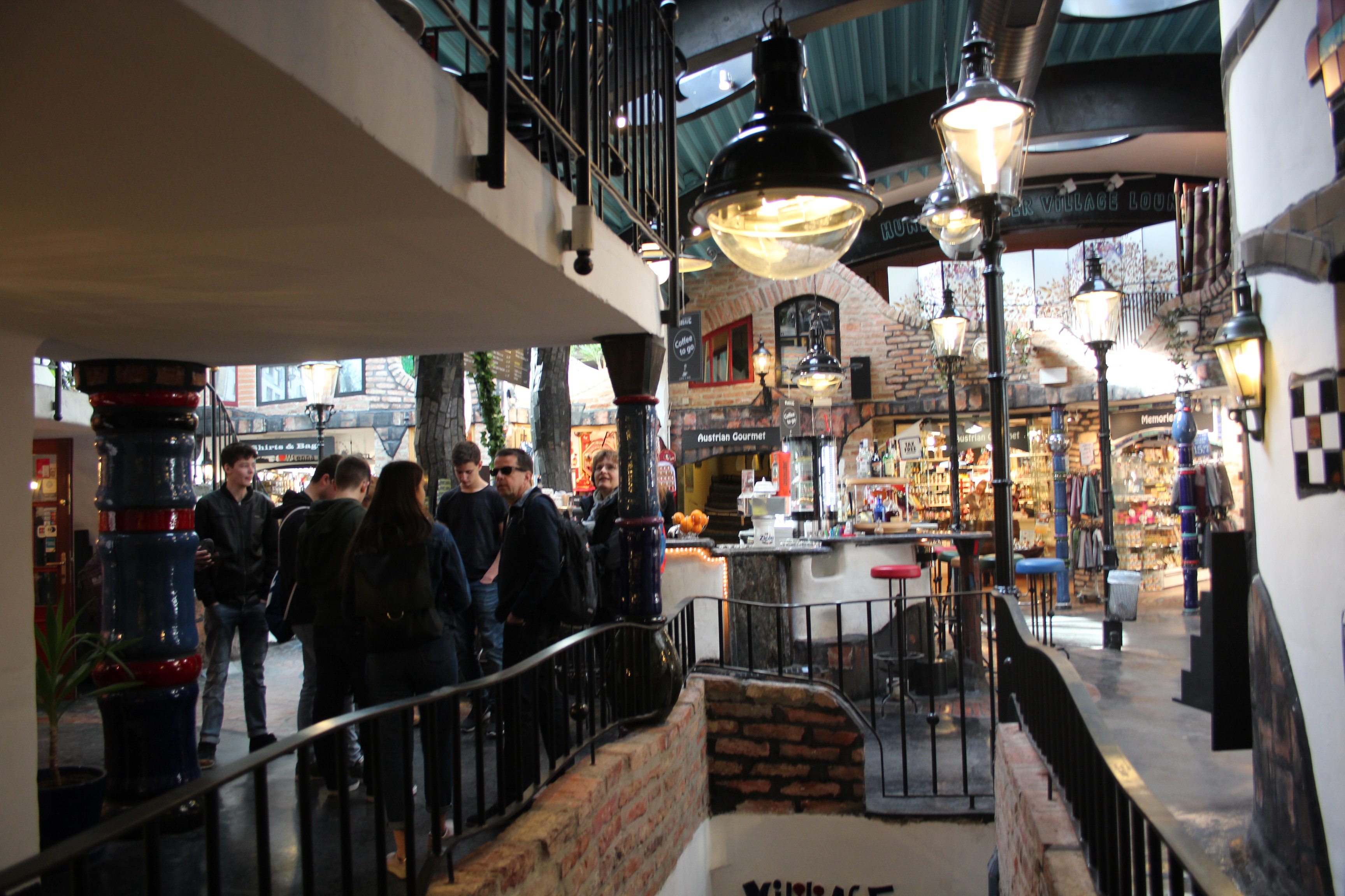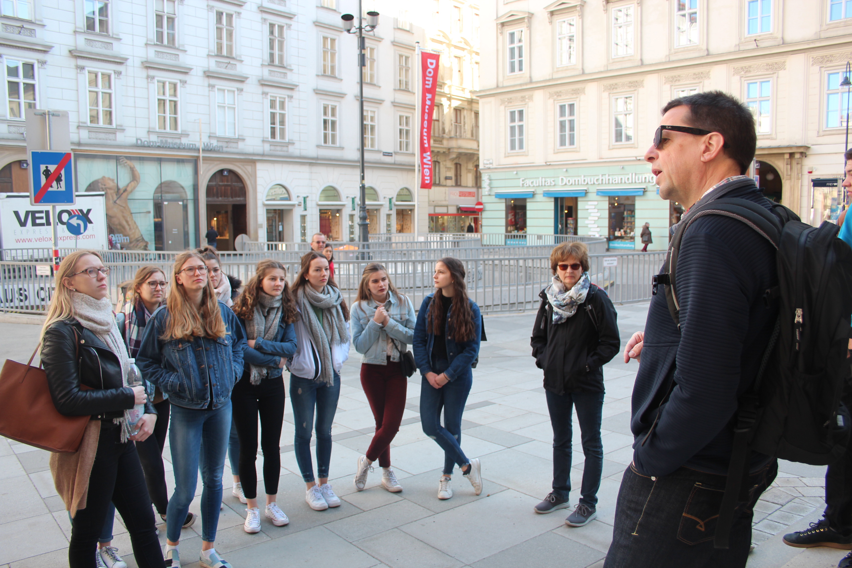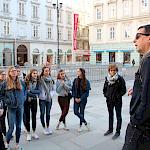 Abschließend endete die Führung mit einem Dialog zwischen dem Bundesratsabgeordneten Georg Sauster und einem seine politische Kompetenz beweisenden Schüler unserer Gruppe. Anschließend marschierten wir noch ins Hundertwasserhaus, wo die farbenfrohen Bilder von unseren Audioguides verständlich analysiert wurden.