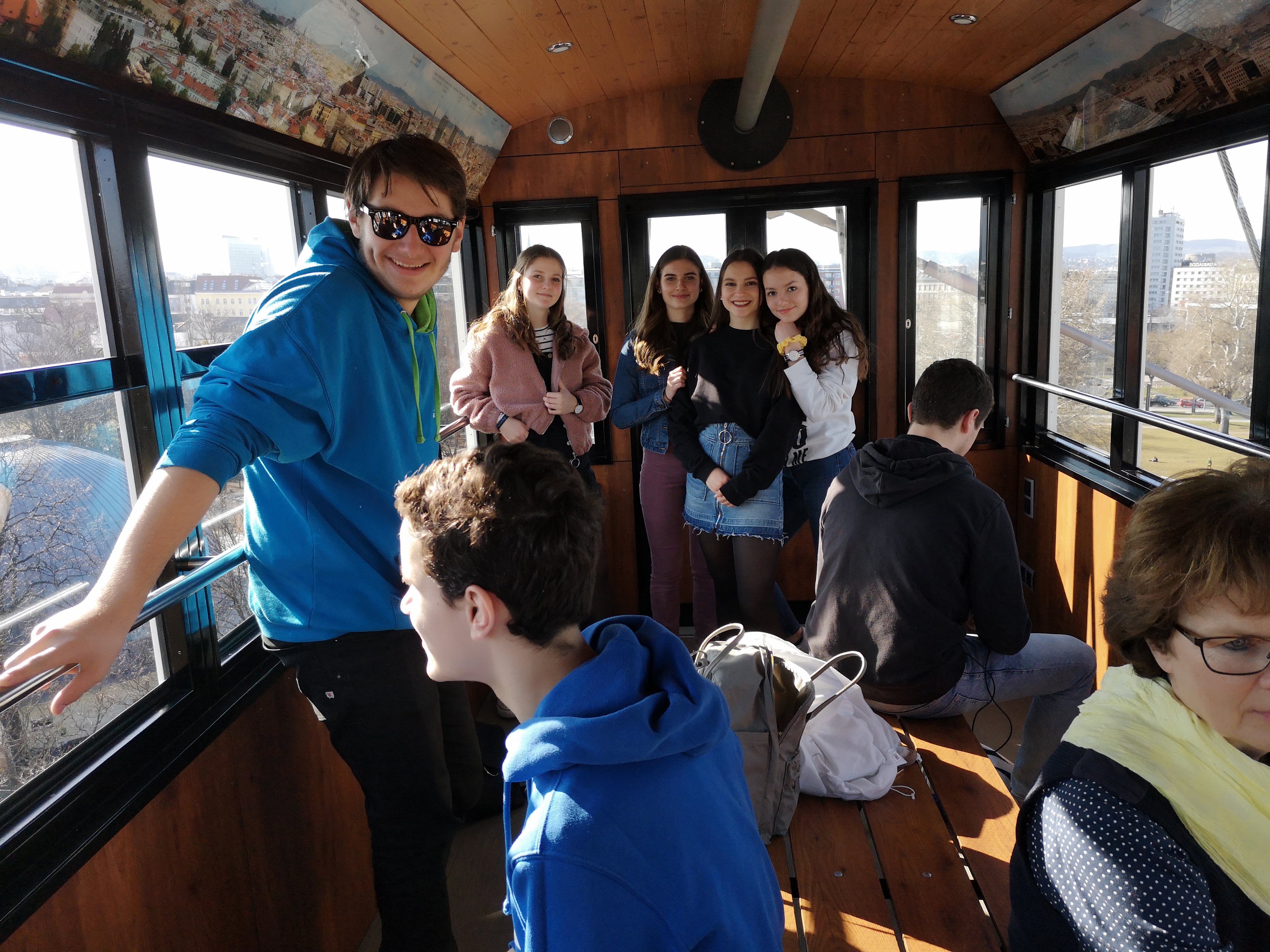 Am darauffolgenden Morgen besichtigten wir nach dem Frühstück das Schloss Schönbrunn. Dort bekamen wir sehr informative Audioguides, welche uns durch das Schloss führten und uns zu allen Räumen und Möbeln berichteten, wozu sie früher verwendet wurden. Als wir das Schloss verließen, bekamen wir noch etwas Zeit, um das umliegende Gelände zu erkunden. Nachdem wir alles gesehen hatten, machten wir uns auf dem Weg zum nächsten Programmpunkt, dem Wiener Riesenrad im Prater. Wir konnten eine schöne Aussicht über Wien und den umliegenden Vergnügungspark genießen. Manche nutzten anschließend auch noch eine der weiteren Attraktionen. Den restlichen Tag hatten wir dann wieder zur freien Verfügung. Abends konnten wir dann noch an Herrn Kocsis Laptop unsere Sitzplätze für den Rückflug wählen und unsere Tickets ausdrucken.