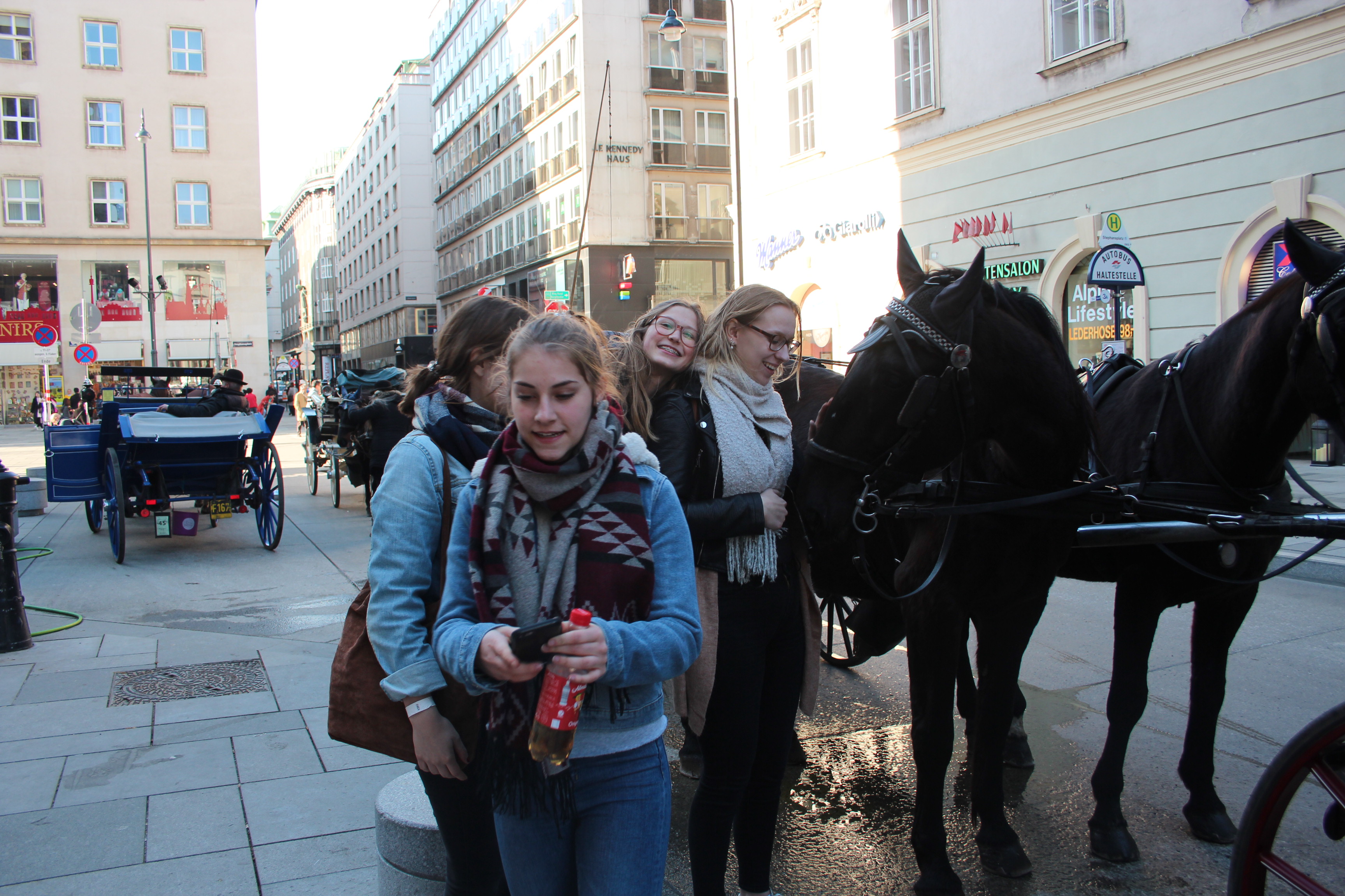 Am letzten Tag konnten wir zum ersten Mal etwas länger schlafen, was uns allen sehr gut tat und was wir auch dringend nötig hatten. Nachdem wir gefrühstückt und unsere Koffer gepackt hatten, teilte sich unsere Gruppe auf. Der eine Teil besuchte die Spanische Hofreitschule, die anderen hingegen ging auf den Naschmarkt.