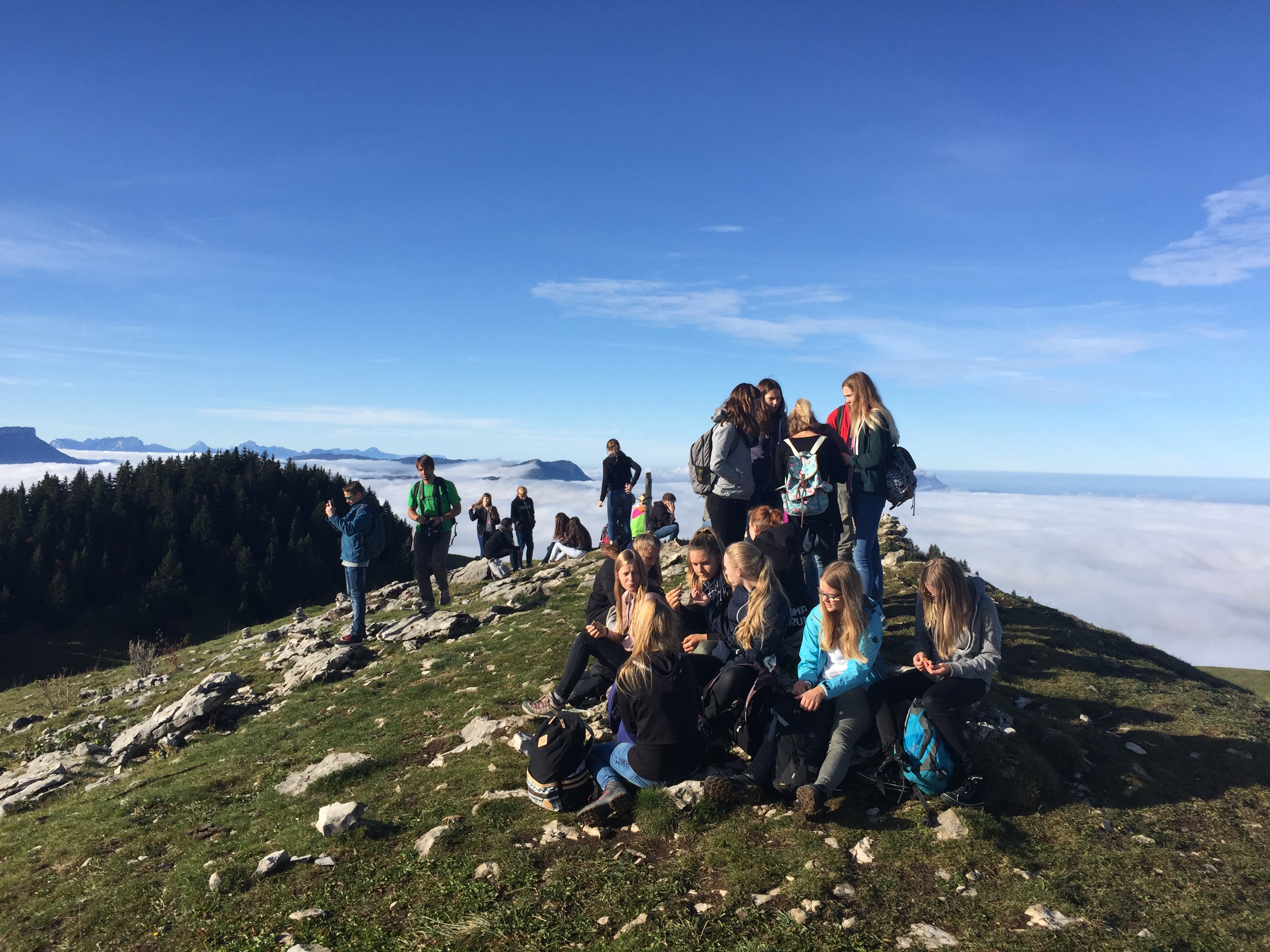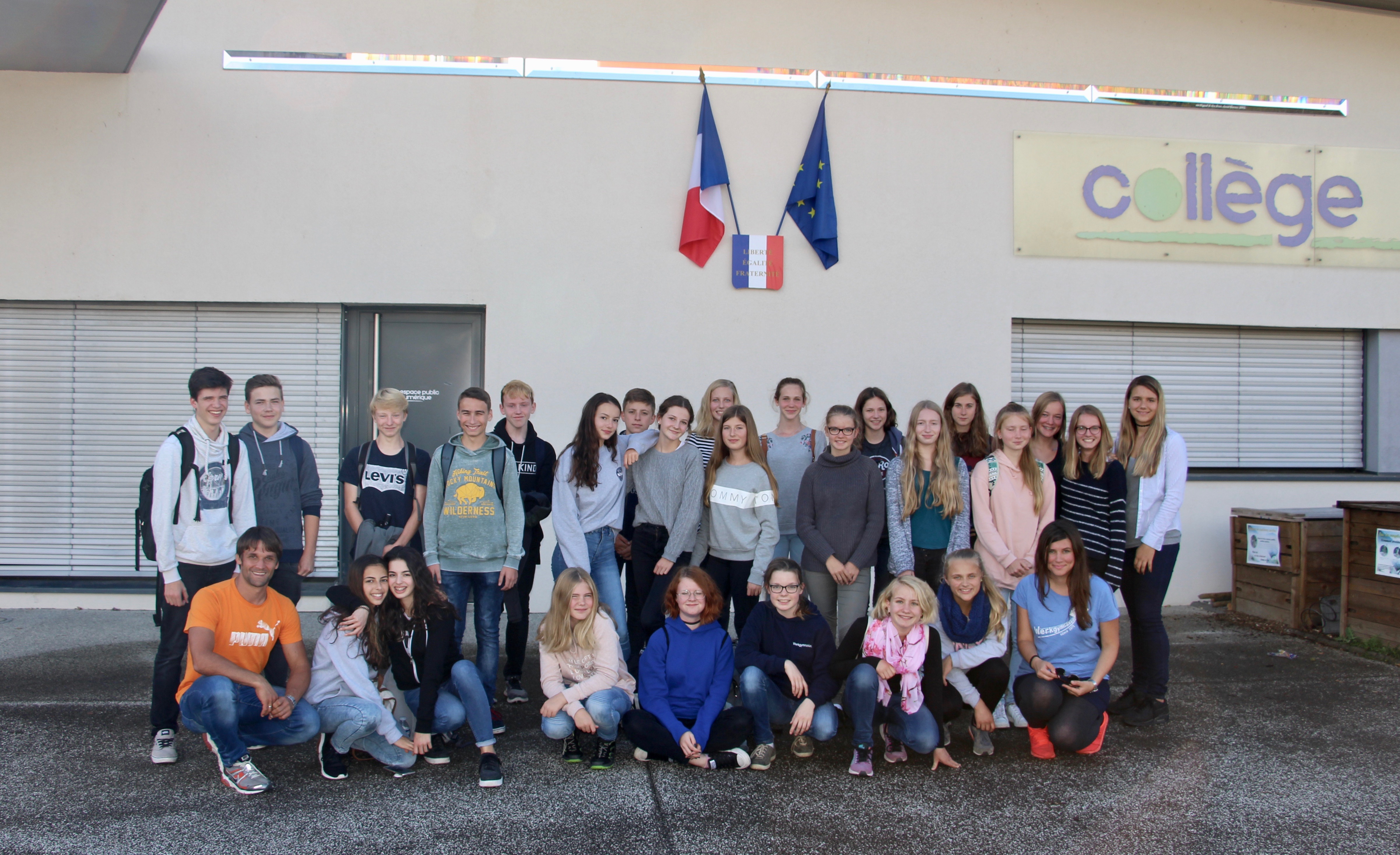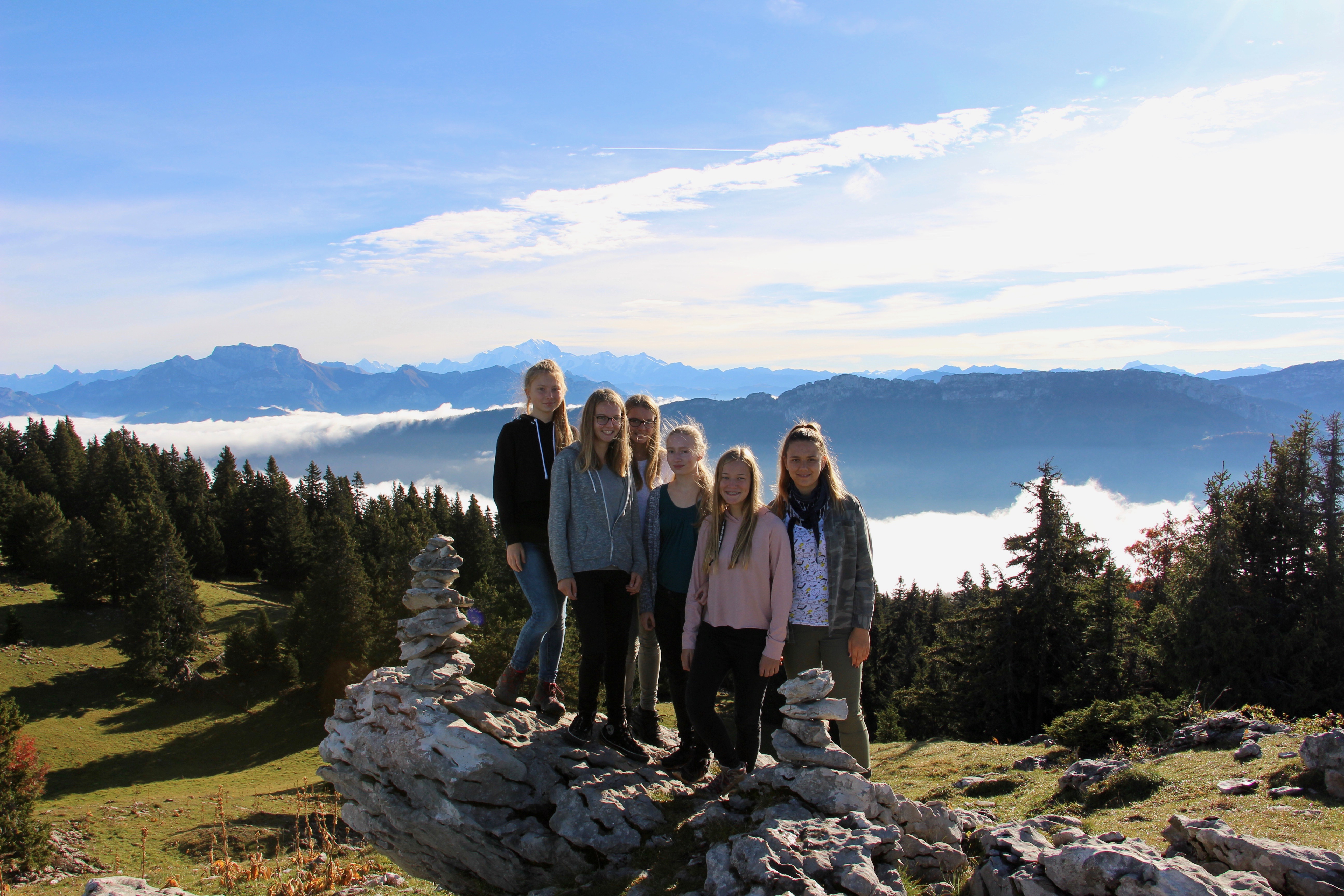 Im Rahmen des Frankreichaustausches verbrachten Schülerinnen und Schüler der Klassenstufe 9 und 10 des Werkgymnasiums die Zeit vom 27.09. bis zum 05.10. in Poisy, einem Vorort von Annecy, welches im Département Haute-Savoie mitten in den französischen Alpen liegt. Über eine Woche wohnten die Teilnehmer in ihren Gastfamilien und hatten damit die Chance die französische Kultur hautnah zu erleben. Dabei stellten sie sich der Herausforderung, ihre Französischkenntnisse in Alltagssituationen anzuwenden und zu erweitern. Darüber hinaus verbrachten die Schülerinnen und Schüler auch Zeit am Collège de Poisy und konnten den französischen Unterricht mitbesuchen. Manch einer staunte nicht schlecht über die Besonderheiten des französischen Schullebens. So sammeln sich beispielsweise die einzelnen Klassen in den Pausen auf dem Schulhof, bevor sie von den jeweiligen Lehrerinnen und Lehrern in die Klassenräume geführt werden.