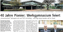 In einem ganzseitigen Artikel würdigt die Lokalpresse die Pionierleistungen des Werkgymnasiums in den vergangenen 40 Jahren. Der ausführliche Bericht ist hier zu lesen.