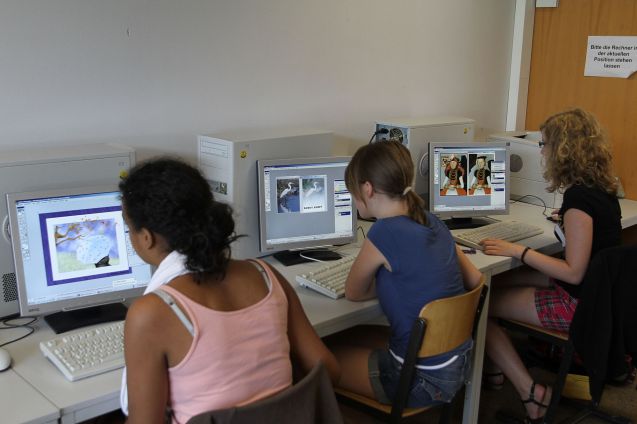 Der Kurs D (Digitale Medientechnik und Mediendesign) ist eingebettet in das Profil Bildende Kunst an unserer Schule. Die Schülerinnen und Schüler erlernen die Techniken der Digitalen Bildbearbeitung und Fotografie, Audio- und Videobearbeitung, Desktop Publishing, den Umgang mit Autorensystemen sowie Webdesign einschließlich serverbasierter Anwendungen (php, Content Management). Die Techniken werden in mehreren Stufen im Sinne eines Spiralcurriculums vermittelt und orientieren sich - soweit möglich - projekthaft an künstlerischen Inhalten. Den Abschluss bildet eine selbst erstellte Multimedia-CD, die alle Inhalte zusammenfasst.
