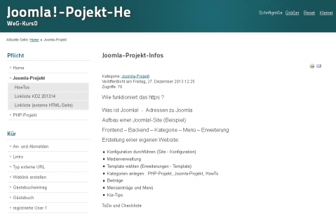 Im zweiten Trimester wird ein Content-Management-System vorgestellt (CMS). Damit kann man Inhalte (Bilder, Texte, Anwendungen, usw.) komfortabel verwalten und dem Anwender über eine Benutzeroberfläche zugänglich machen. Jeder Schüler (jede Schülerin) erstellt mit dem CMS eine Website.
