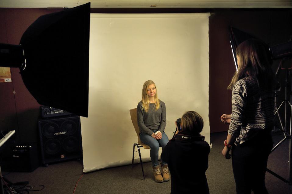 Aufbauend auf den in Klassenstufe 8 erlernten Grundtechniken werden zunächst die im "klassischen" Kunstunterricht bereits teilweise thematisierten Inhalte der Architektur- und Perspektivkorrektur auf die Arbeit mit Photoshop übertragen. Die Korrektur stürzender Linien, Fluchtpunkte, Horizontlinien bzw. die Zentralperspektive werden mit den Möglichkeiten des Bildbearbeitungsprogramms ebenso umgesetzt wie Schatten-konstruktionen in Abhängigkeit vom Lichteinfall. Im Mittelpunkt dieses Trimesters steht jedoch die digitale Fotografie mit anschließender Bearbeitung der Aufnahmen: Die Schülerinnen und Schüler üben den Umgang mit der digitalen Spiegelreflexkamera und erlernen in Theorie und Praxis die technischen und gestalterischen Möglichkeiten durch die adäquaten Einstellungen von Blende, Zeit und Empfindlichkeit (ISO) in Abhängigkeit vom jeweiligen Motiv und der Objektivbrennweite, ebenso wie die nachfolgende Optimierung der Aufnahmen im Raw- Konverter bzw. Photoshop. Den Übungen anhand eigener Objekt- bzw. Freilandaufnahmen folgen Porträtaufnahmen im schuleigenen Fotostudio unter Berücksichtigung geeigneter Lichtführung sowie komplexere Bearbeitungsmethoden wie die Freistellung von Haaren, Retuschearbeiten und das Auswechseln des Bildhintergrundes. In der Abschlussarbeit müssen die Schülerinnen und Schüler die erlernten Techniken gestalterisch an vorgegebenen Bildelementen durchführen.